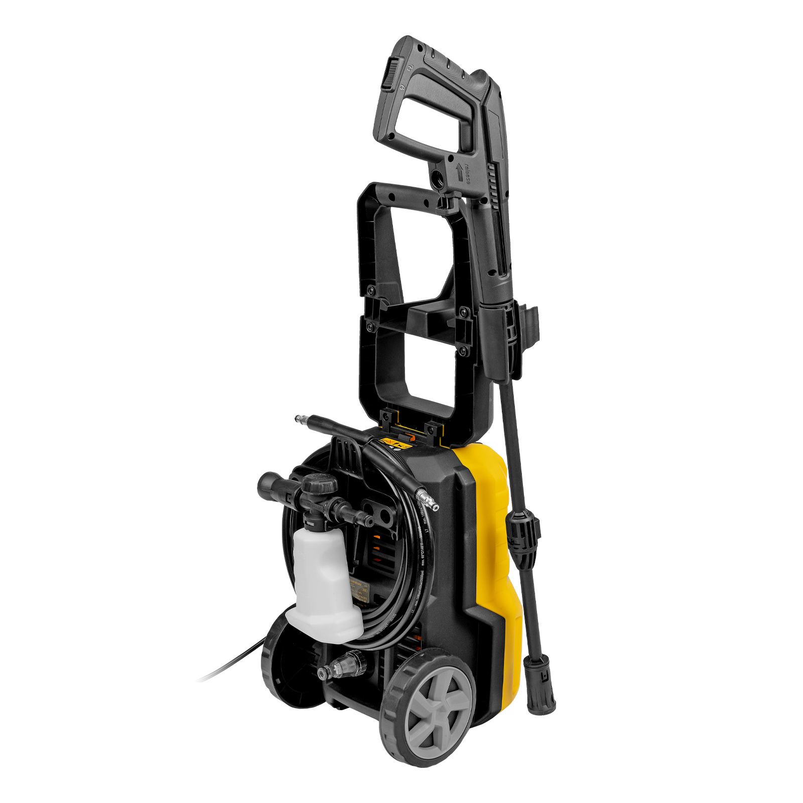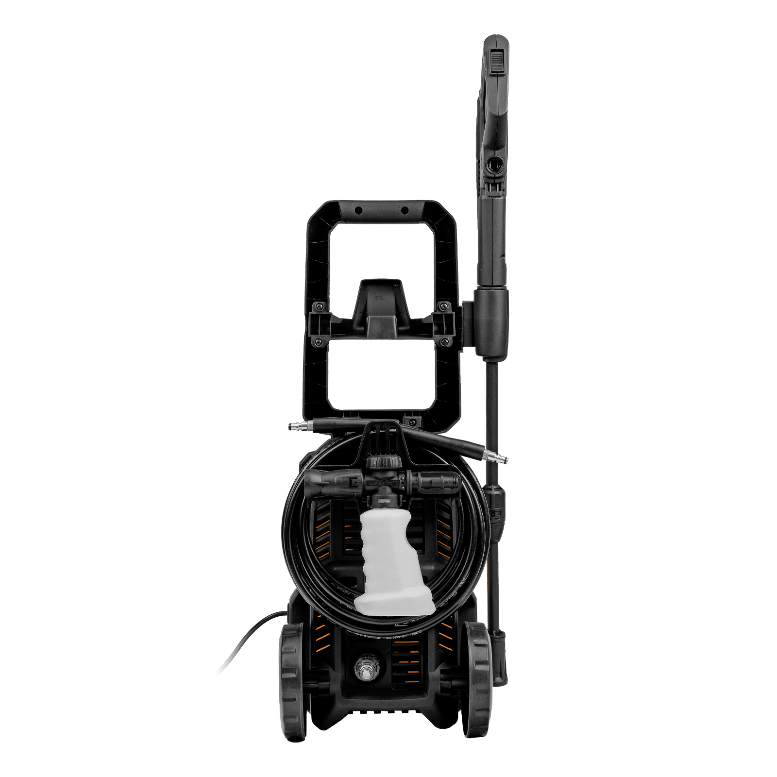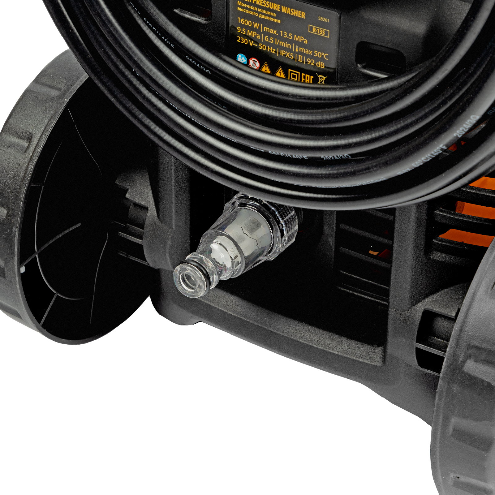 длина кабеля и шланга высокого давления составляет 5 м, что позволяет свободно передвигаться по участку.