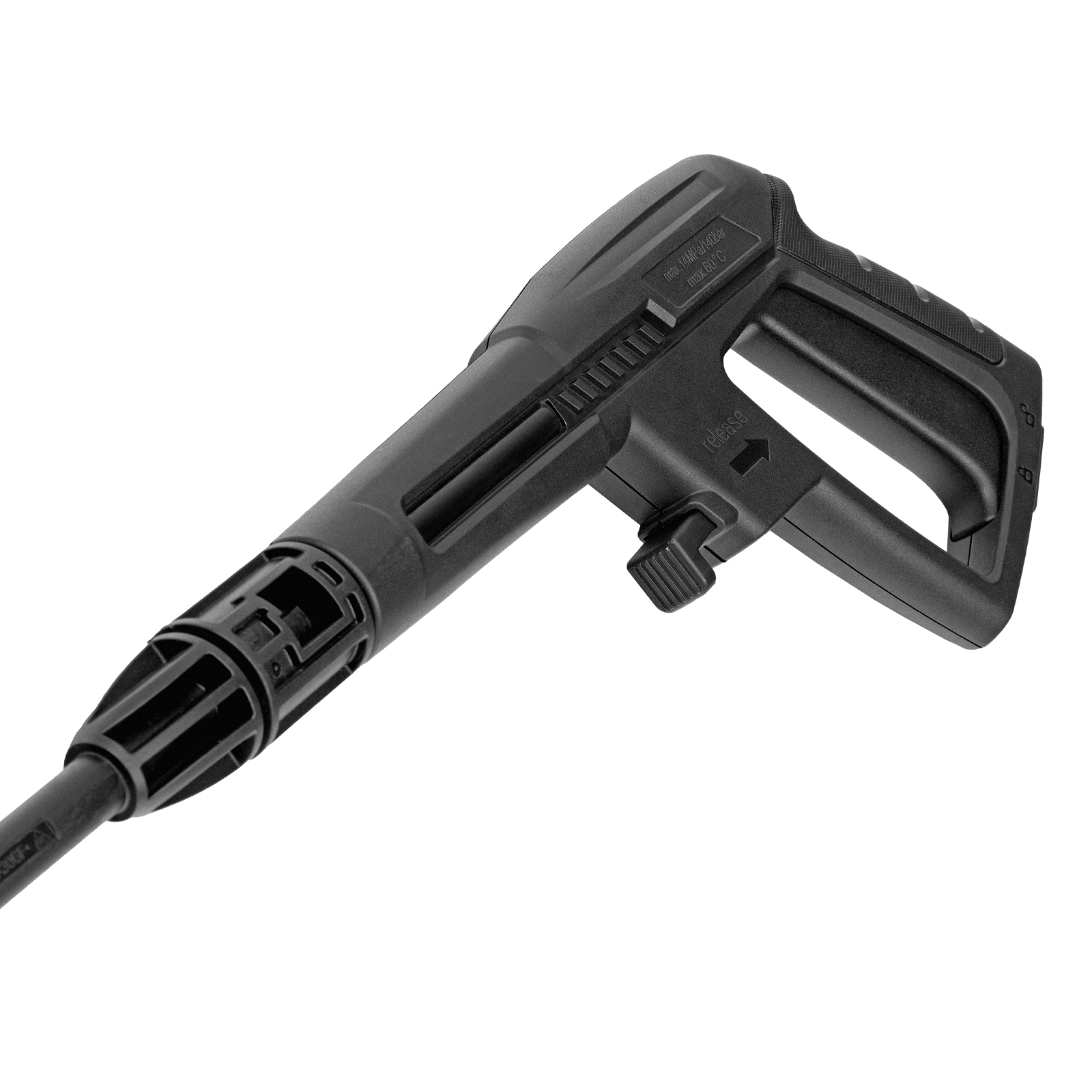 Безопасность — перед началом работы необходимо разблокировать рычаг моечного пистолета для предотвращения случайного запуска.