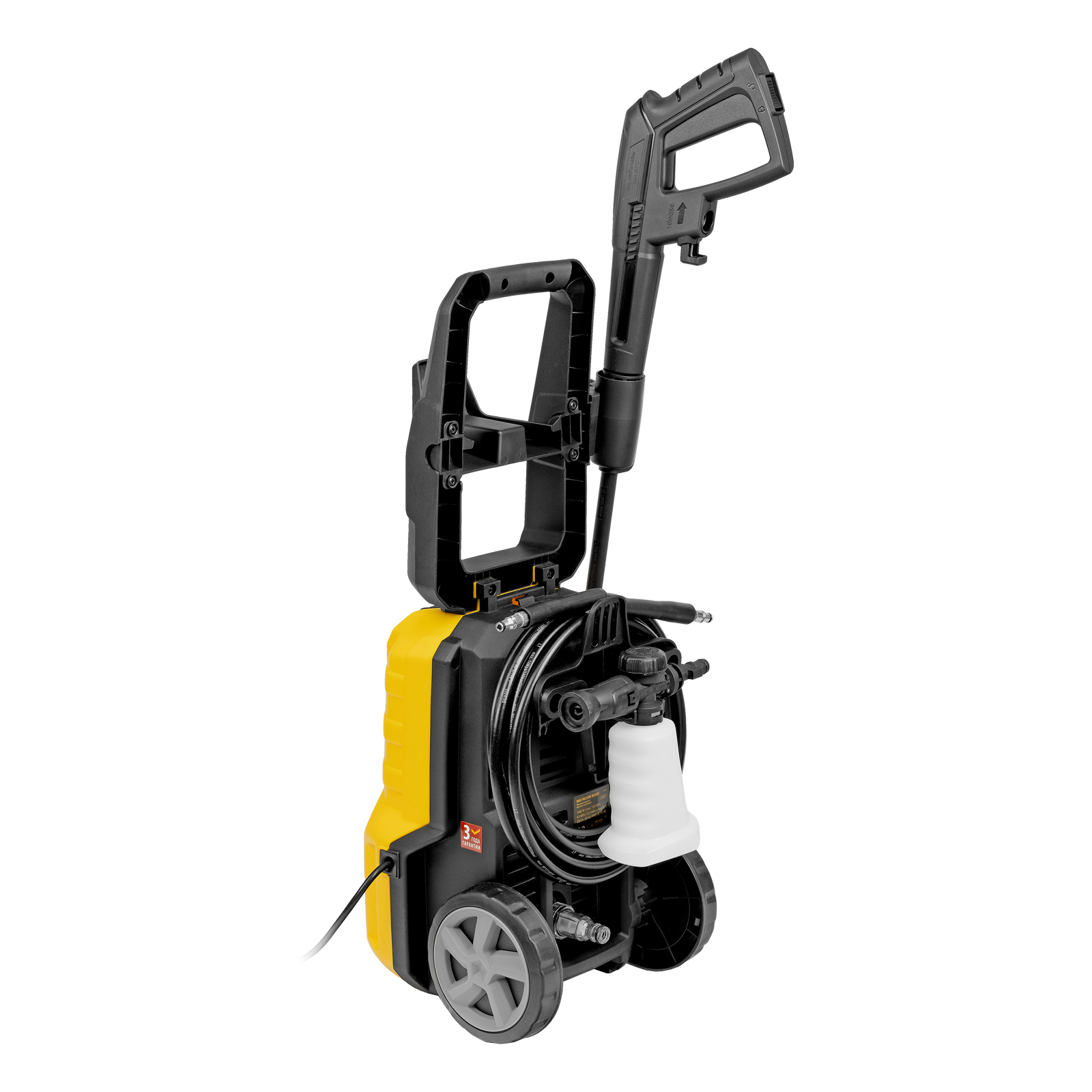Мобильность — благодаря транспортировочной рукоятке и колесам моечную машину удобно перемещать.|Гарантия 3 года — высокое качество техники подтверждено производителем.