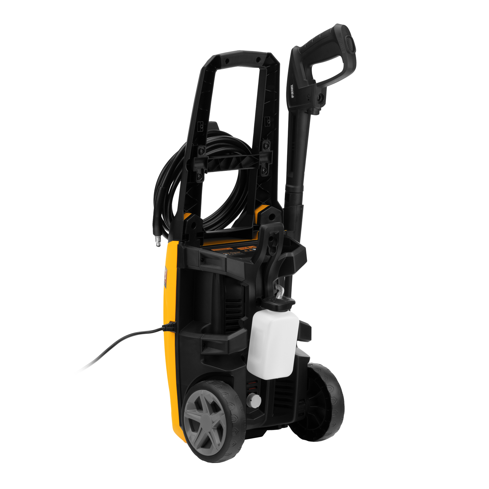 - Длина шланга и кабеля 5 м — не нужно часто перемещать машину, можно работать на удалении от розетки.
