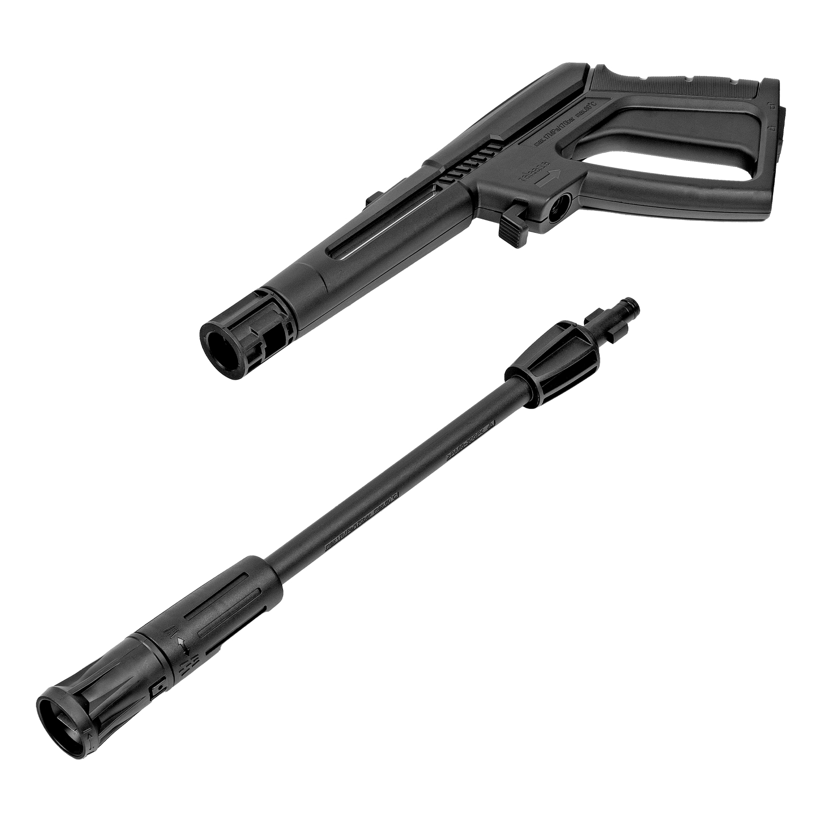 - Безопасность — перед началом работы необходимо разблокировать рычаг моечного пистолета для предотвращения случайного запуска.