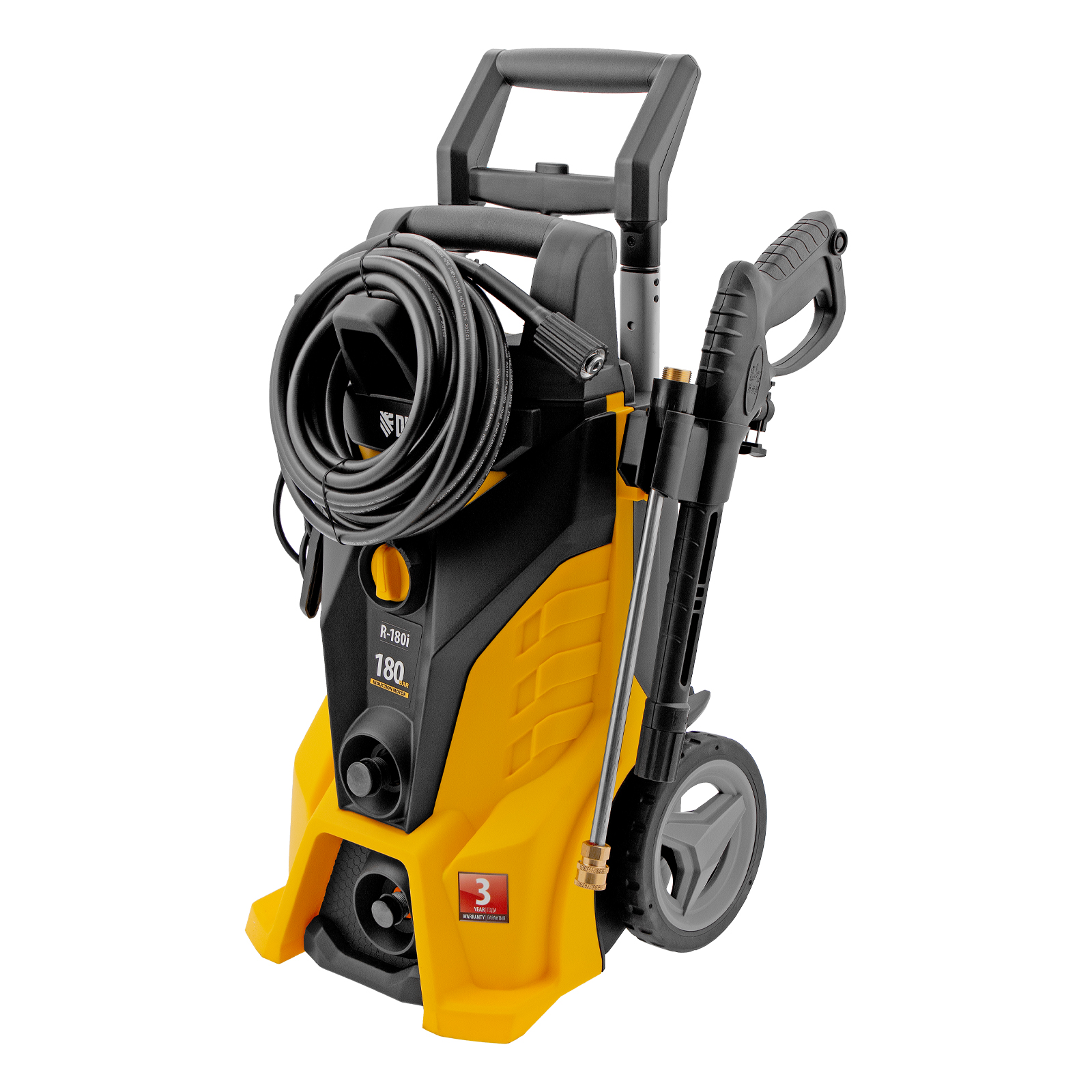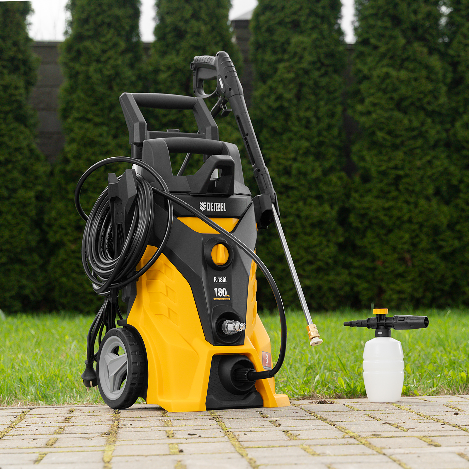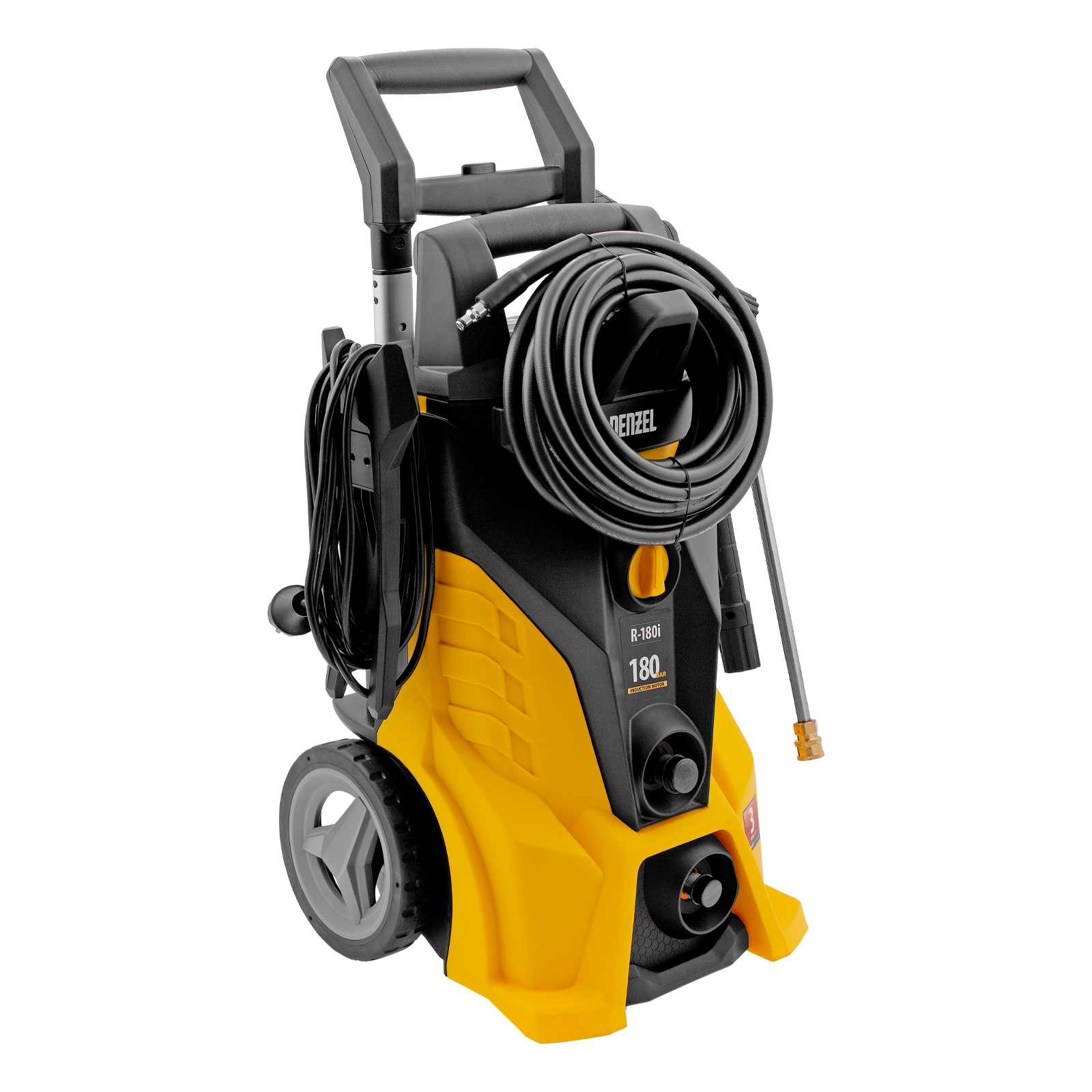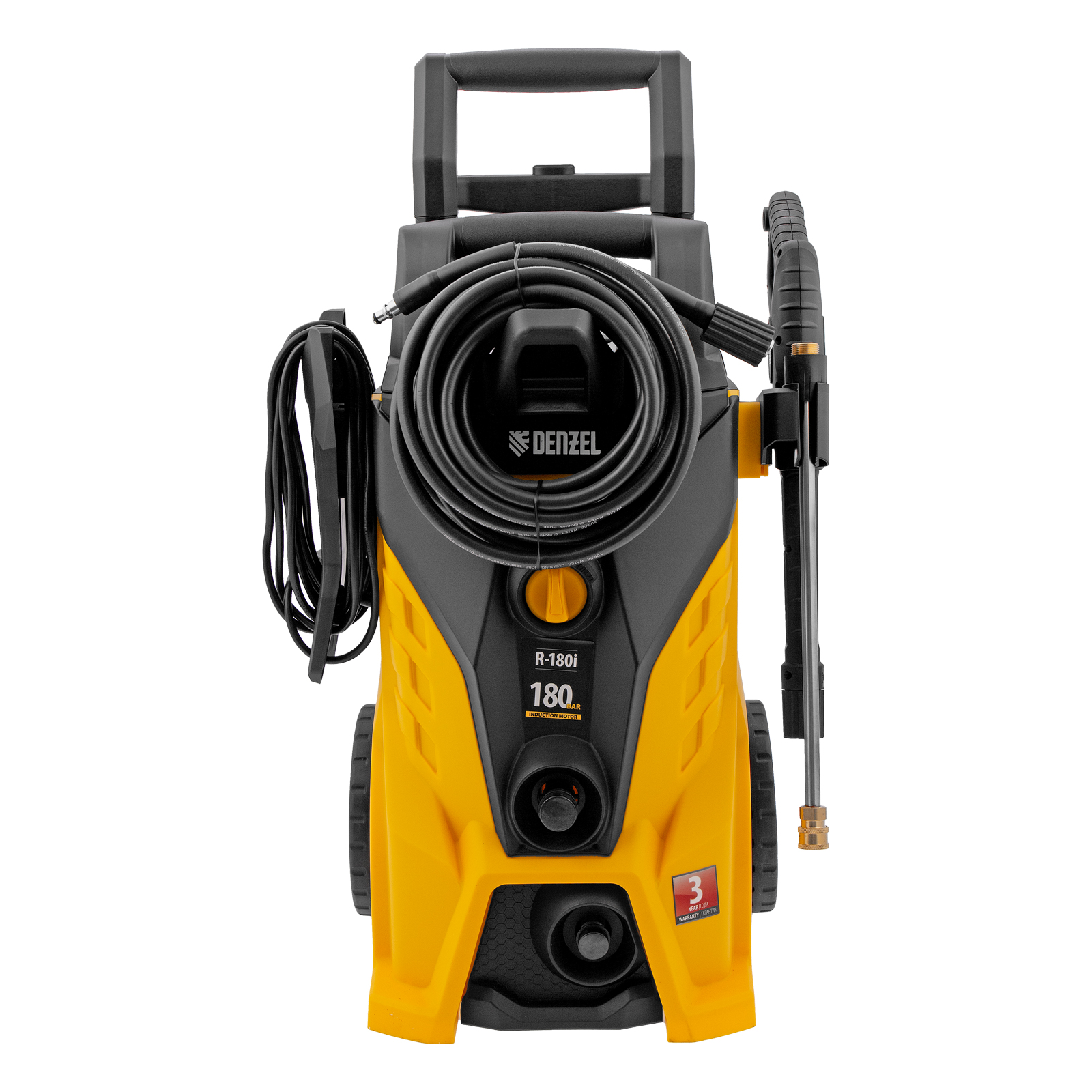 Моечная машина высокого давления Denzel R-180i с асинхронным двигателем оптимально подходит для очищения автомобилей, заборов, дорожек и садового инвентаря. Эффективно справляться с серьезными загрязнениями позволяют мощный мотор 2400 Вт и помпа с производительностью 7,5 л/мин и максимальным давлением 180 бар.,Отсутствие водопровода поблизости не станет проблемой. Мойка с насосом может производить забор воды из любых емкостей благодаря функции самовсасывания, при этом теряя не более 5% давления. Алюминиевая помпа со стальными плунжерами отличается высокой точностью подгонки деталей, что обеспечивает надежность и стабильное давление на выходе.