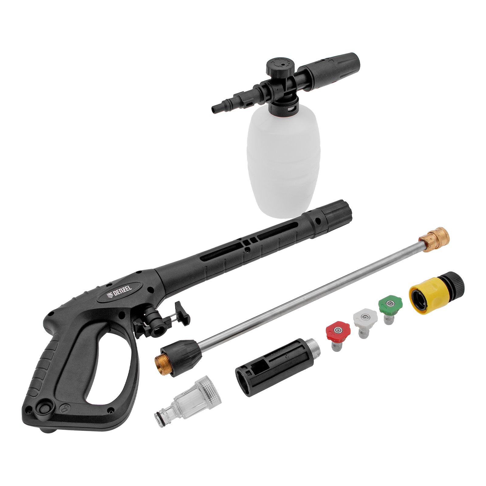 - Подготовка к работе за несколько секунд — быстросъёмный коннектор пистолета позволяет подключить шланг одним движением.