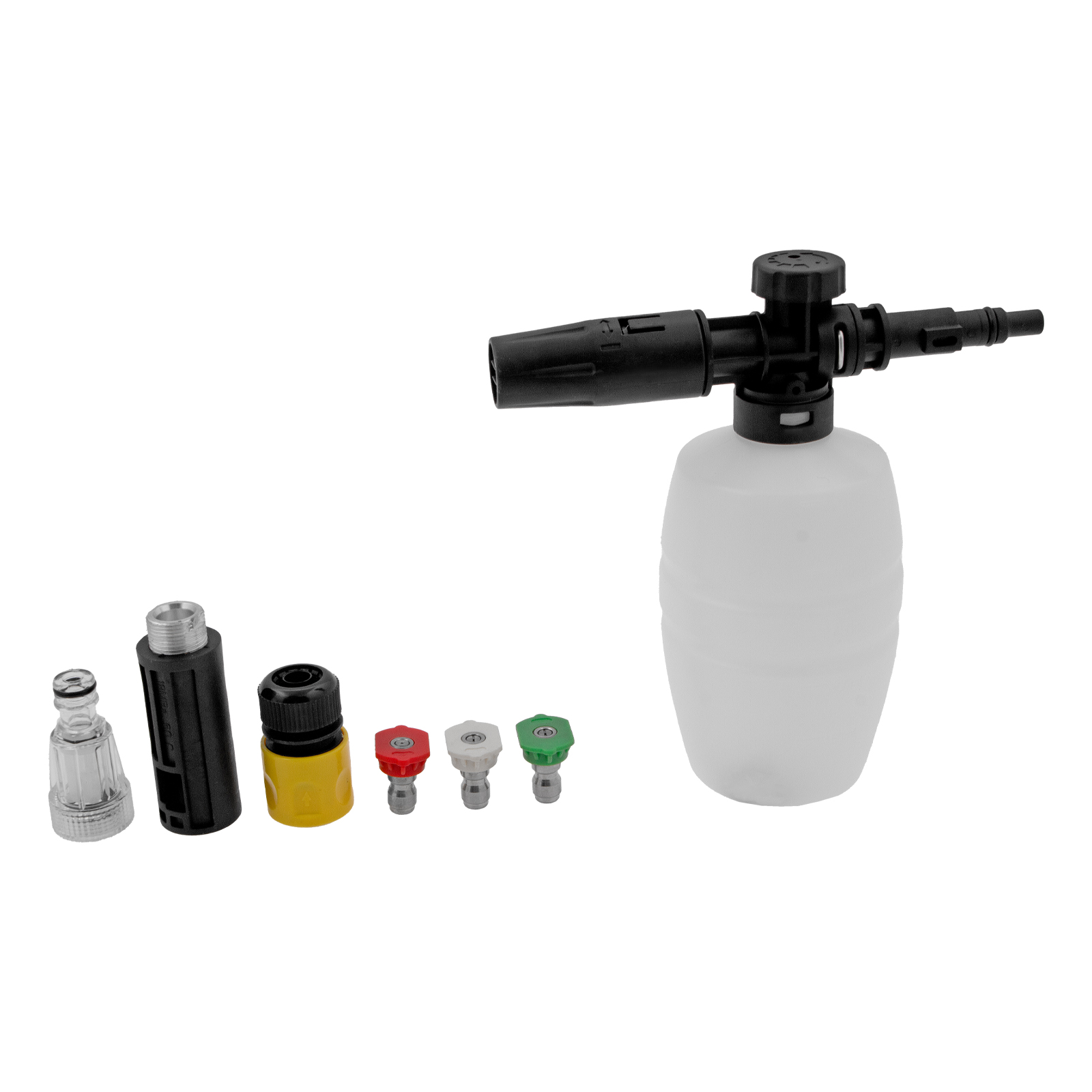 - Внешний пенокомплект — можно нанести на поверхности моющий раствор для лучшей борьбы с загрязнениями.