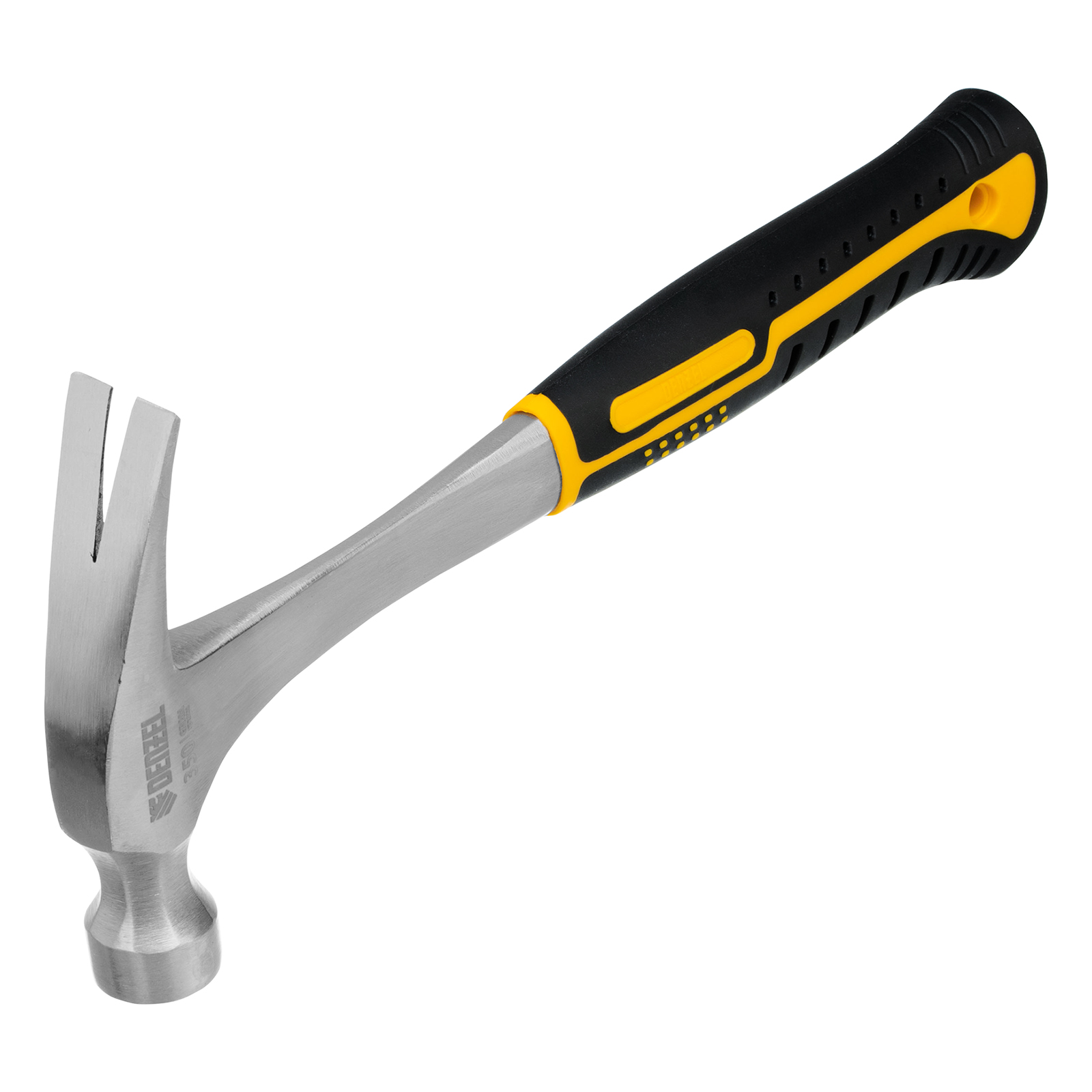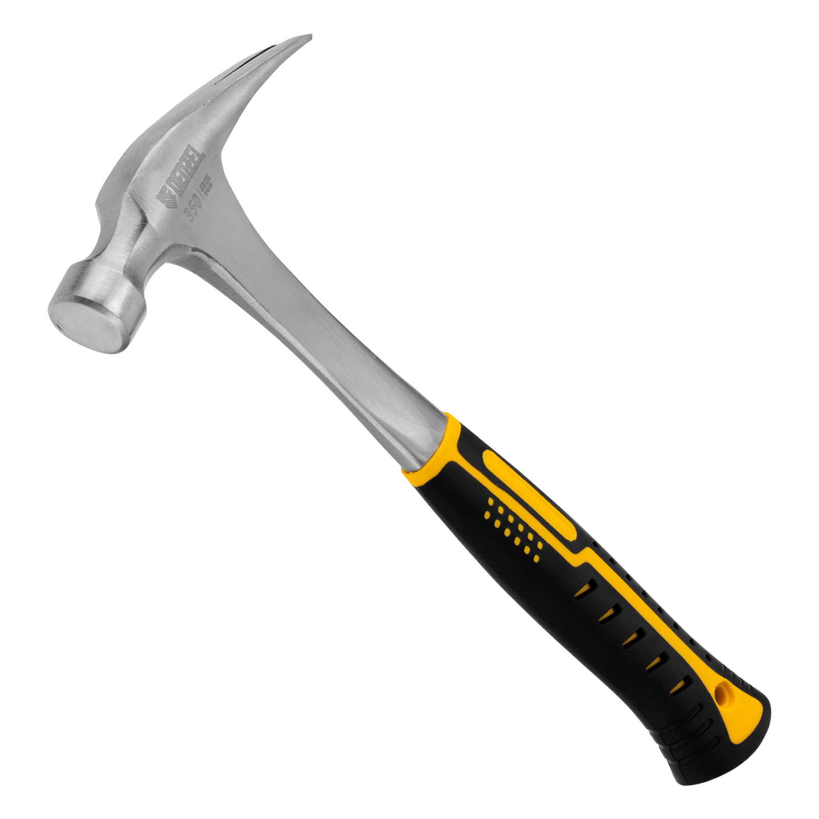 Цельнометаллический молоток-гвоздодер Denzel 10422 с головкой весом 350 г и двухкомпонентной рукояткой предназначен для забивания и извлечения гвоздей. Рекомендован как для домашнего, так и для профессионального применения, пригодится в слесарной мастерской, на даче, в гараже.