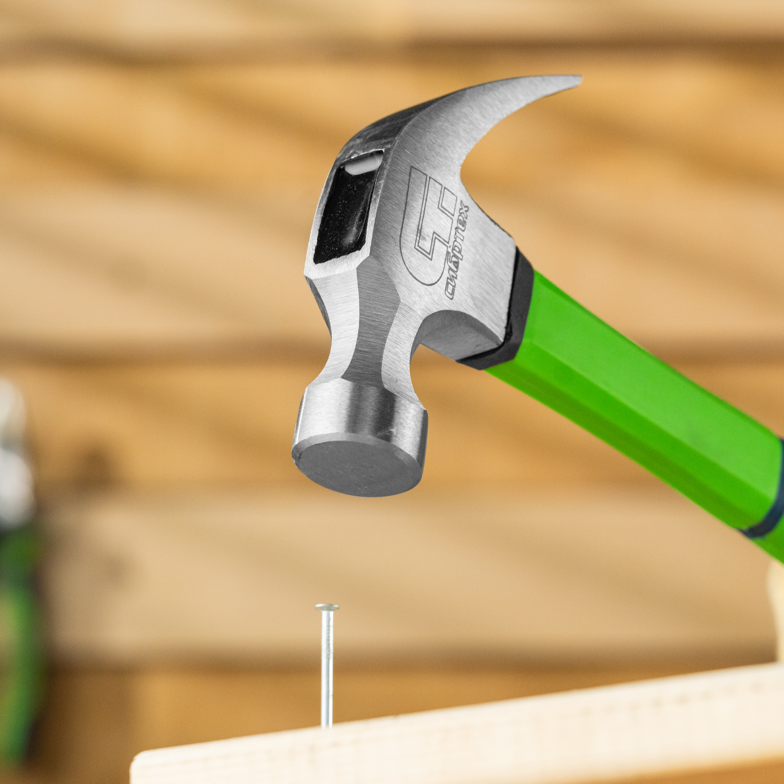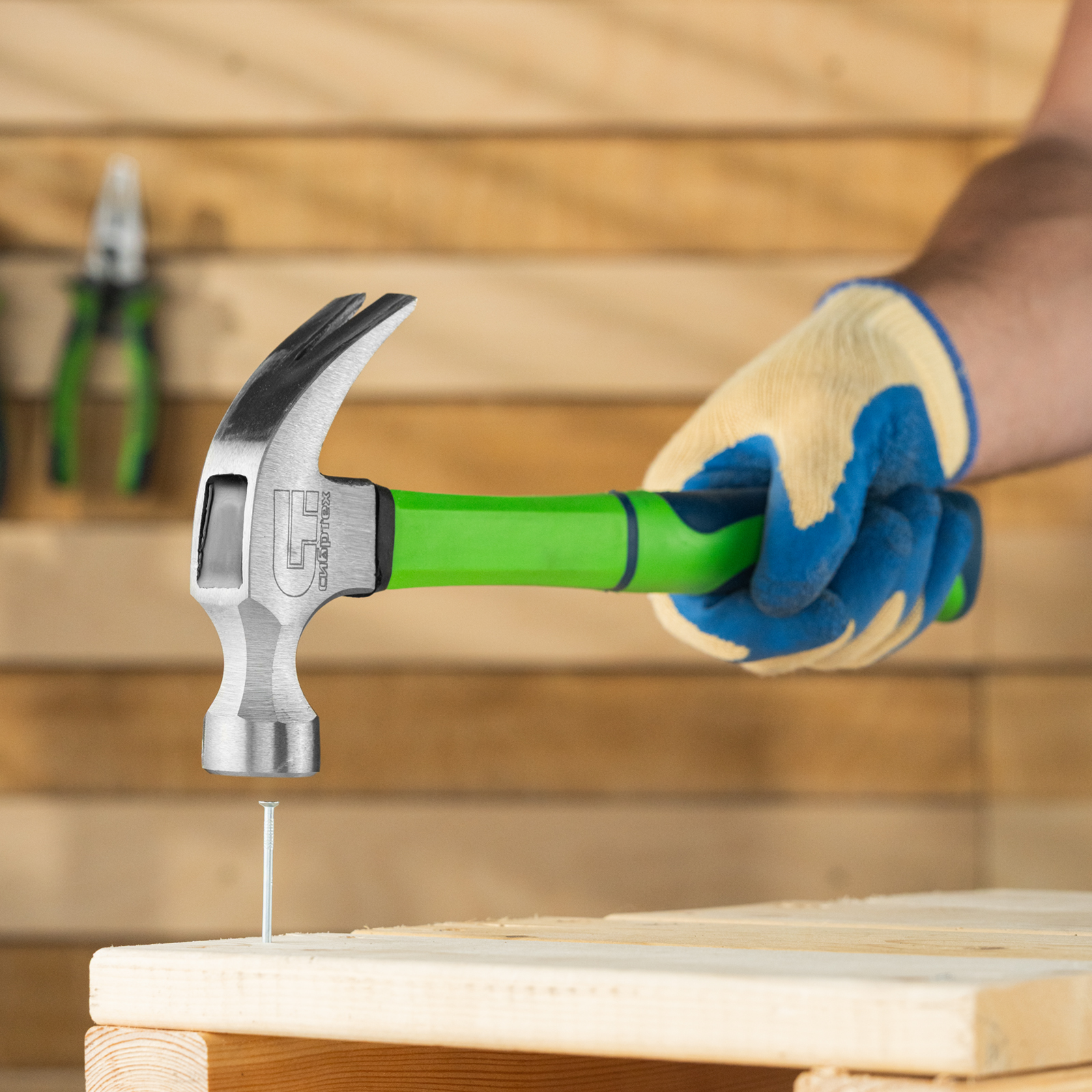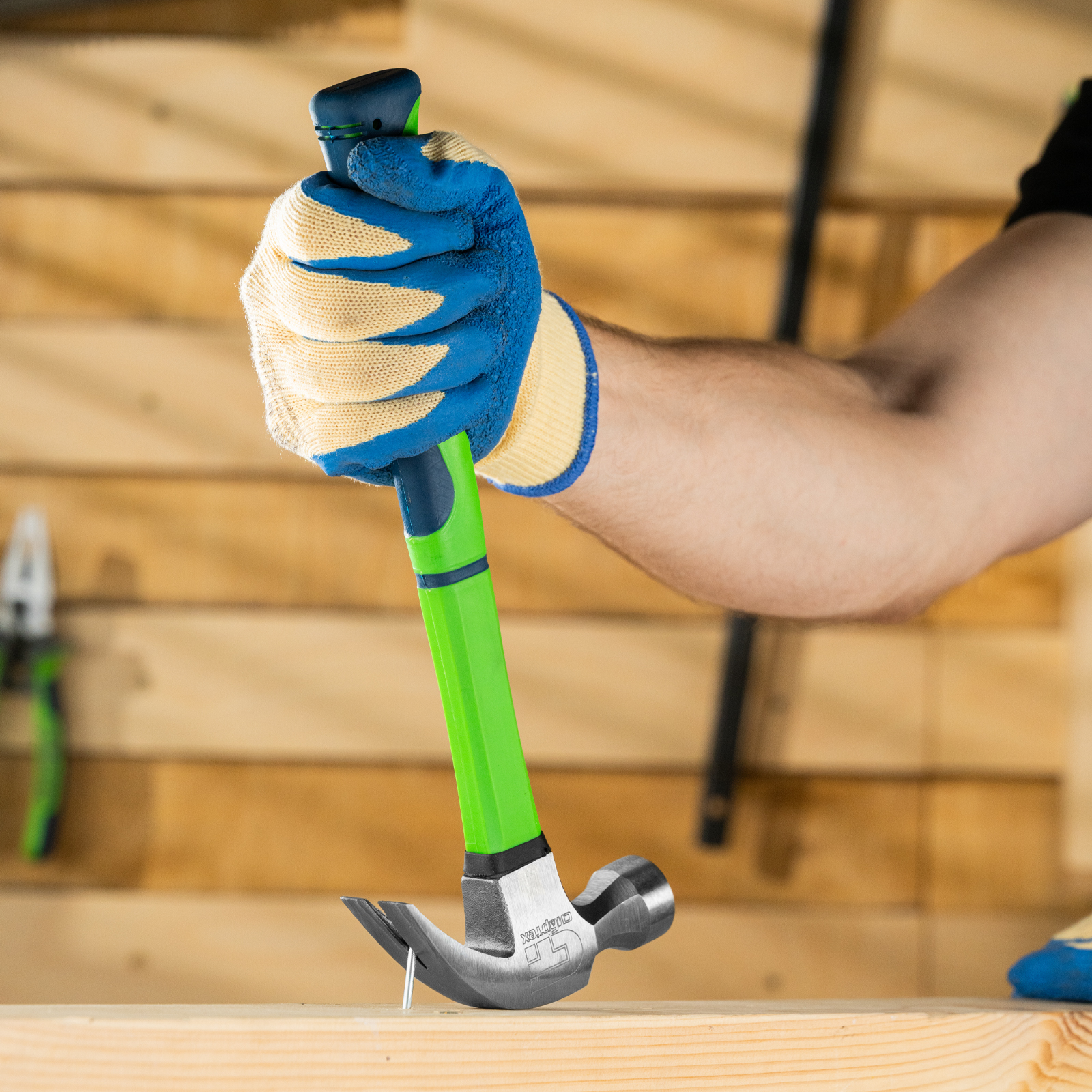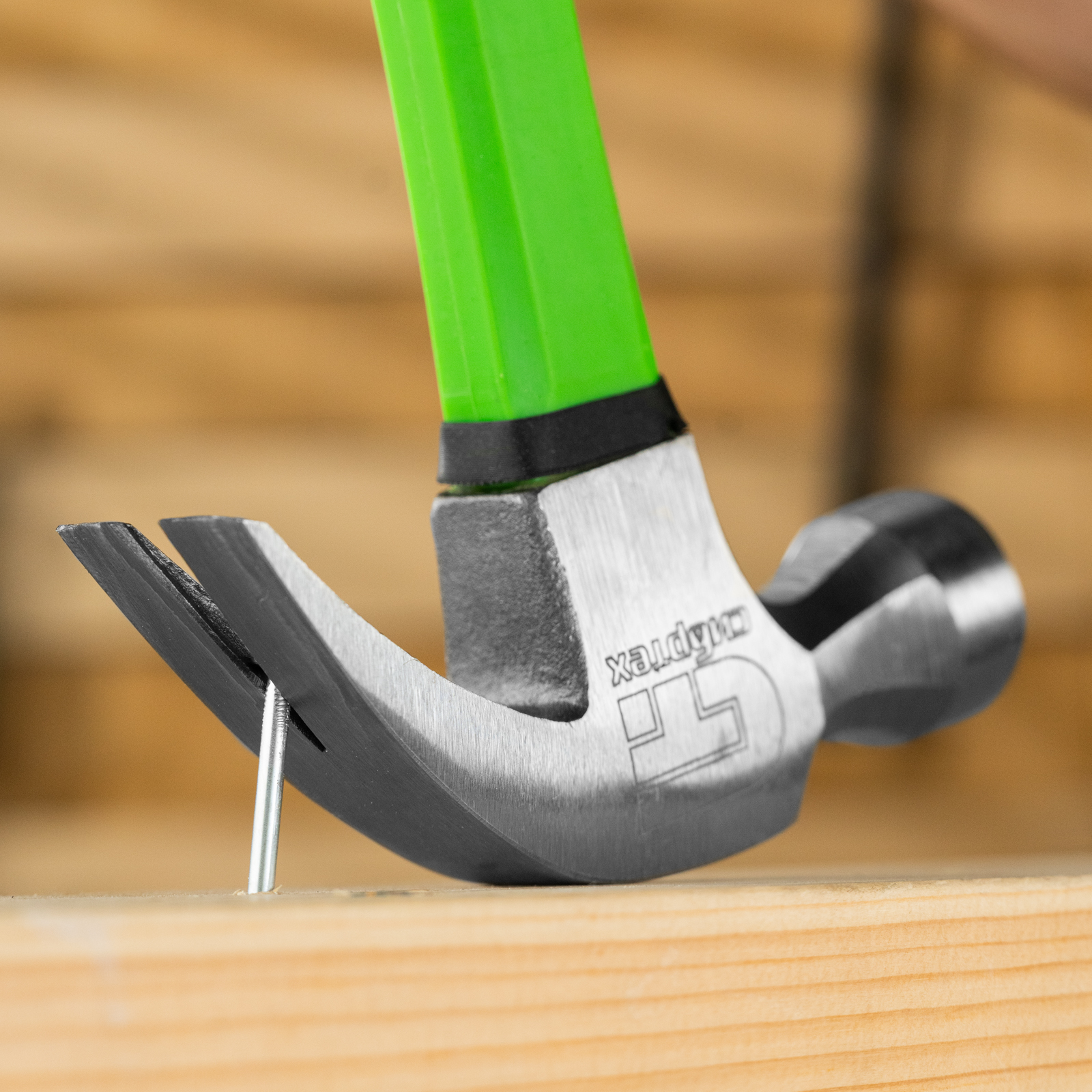 Молоток-гвоздодер Сибртех 10442 с головкой весом 450 г и фибергласовой обрезиненной рукояткой позволяет быстро и без усилий забивать гвозди, а также вытягивать согнувшиеся крепежные элементы при помощи изогнутого носка с прорезью для захвата шляпки. Инструмент пригодится во время строительства, отделочных работ, сборки мебели, а также будет полезен дома, в гараже или на даче.