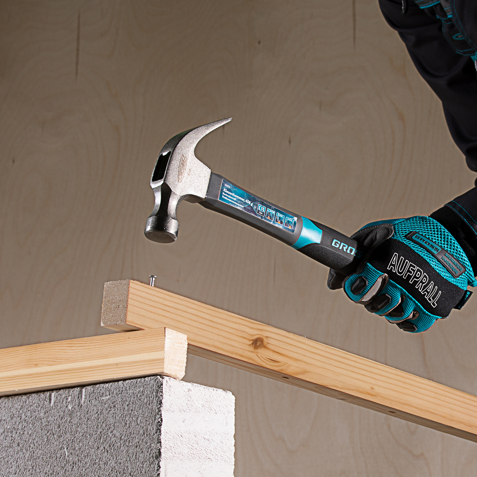 - Комфортное использование — молоток идеально сбалансирован, а материал рукоятки эффективно гасит вибрации при ударе, что снижает усталость во время длительной работы.