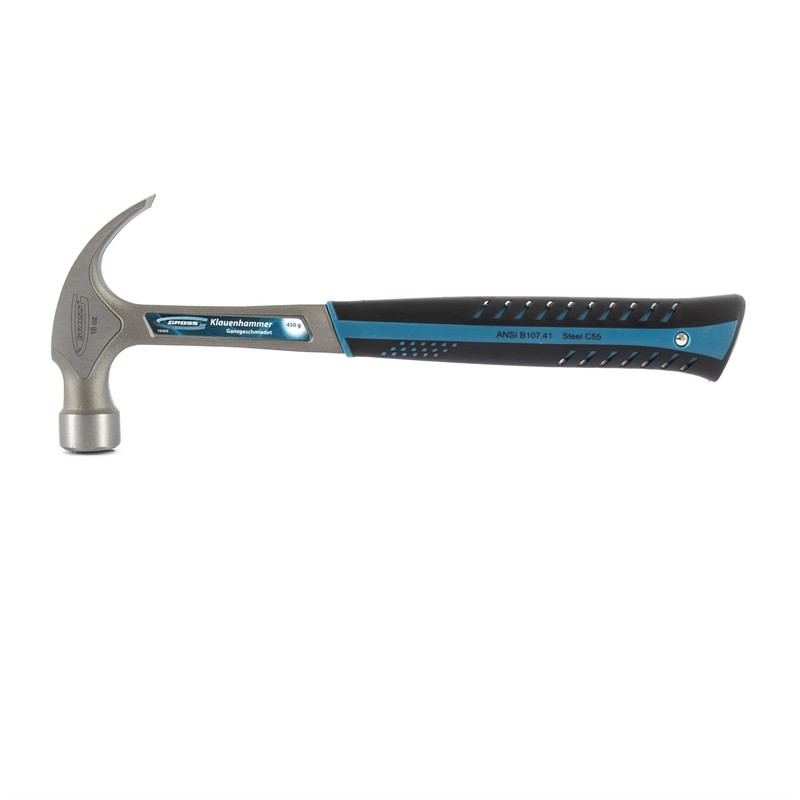 Цельнокованый молоток-гвоздодер Gross 10469 с головкой весом 450 г и трехкомпонентной рукояткой предназначен для забивания гвоздей и извлечения застрявшего крепежа. Гвозди удобно подцеплять и выпрямлять при помощи изогнутого плоского носка с клиновидной прорезью. Молоток рекомендован как для домашнего, так и профессионального применения.