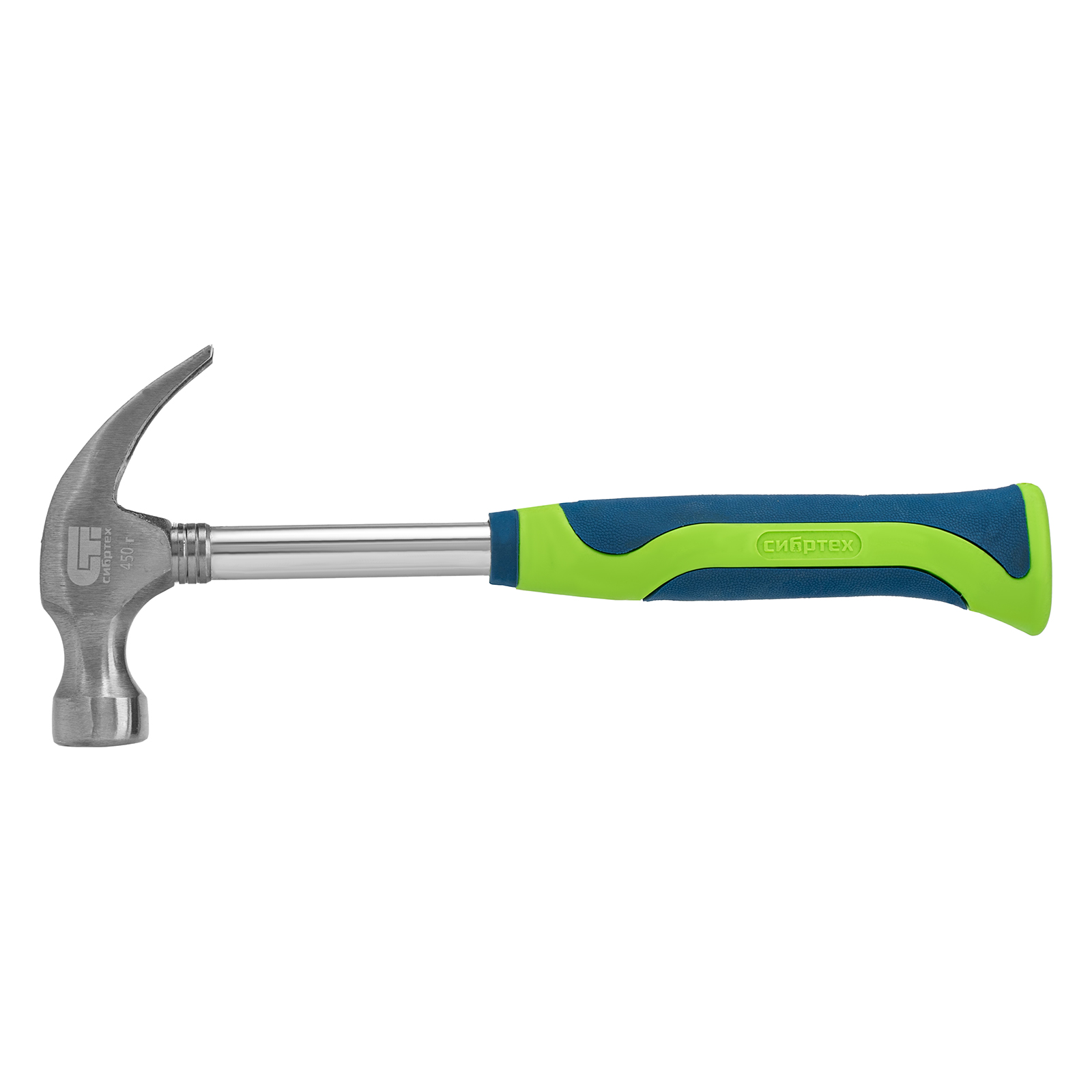 Молоток-гвоздодер Сибртех 10436 длиной 315 мм, с головкой весом 450 г и размером бойка 27 мм, с металлической трубчатой обрезиненной рукояткой, предназначен для проведения монтажных и демонтажных работ. Им удобно забивать крепежные элементы, кроме того, инструмент позволяет выпрямить загнувшийся гвоздь. Молоток будет полезен на стройплощадке, при сборке мебели, во время отделочных работ, пригодится также для использования в домашних условиях.
