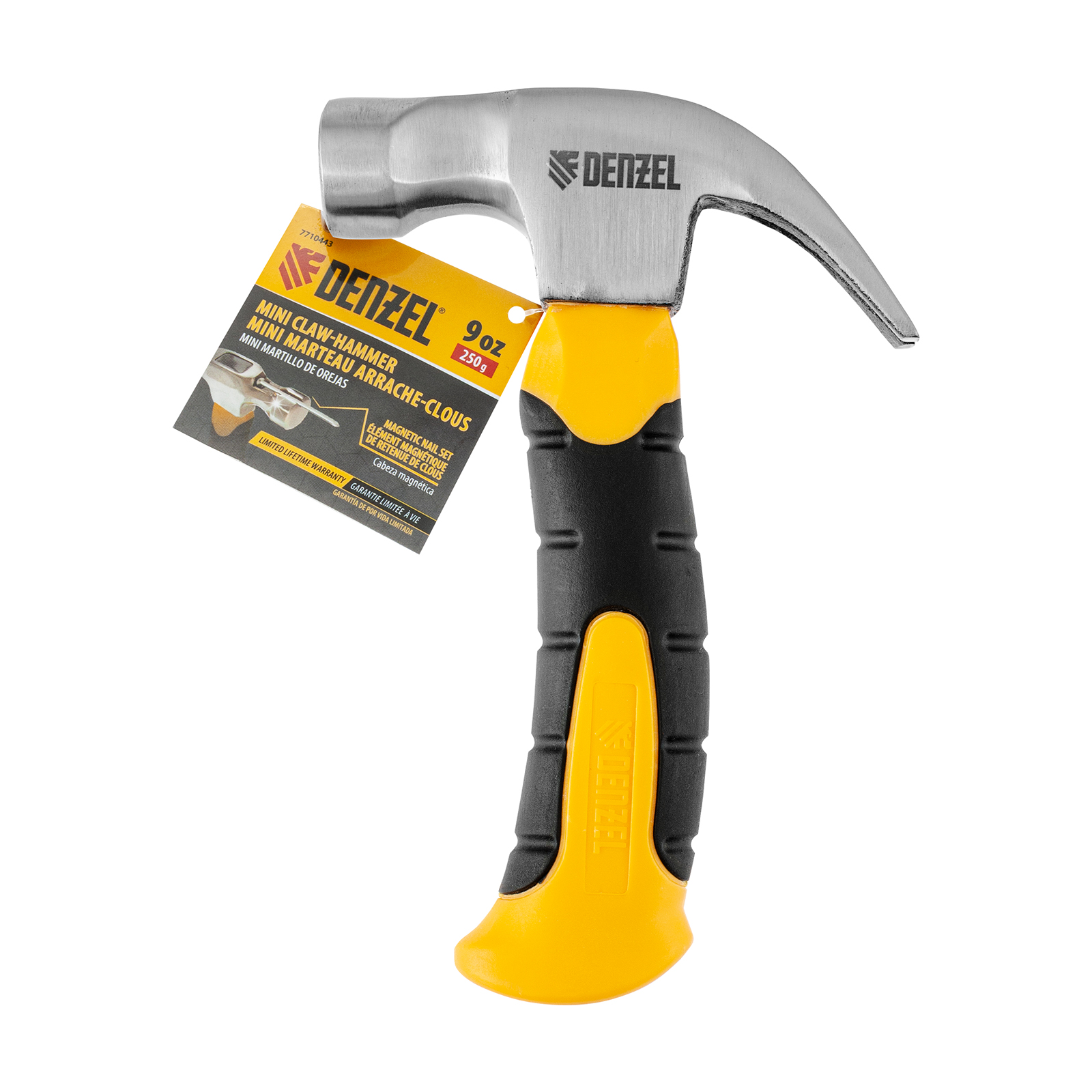 Молоток-гвоздодер «мини» Denzel 7710443 с рабочей частью массой 9 oz (250 г), бойком с магнитом и фибергласовой двухкомпонентной рукояткой, используется для работы с крепежом. Круглый боек предназначен для нанесения ударов, а заточенный и изогнутый под углом 45° гвоздодер позволяет выпрямить неправильно забитый гвоздь. Магнитный держатель значительно упрощает работу. Молоток-гвоздодер пригодится в слесарной и столярной мастерской, будет полезен в быту.