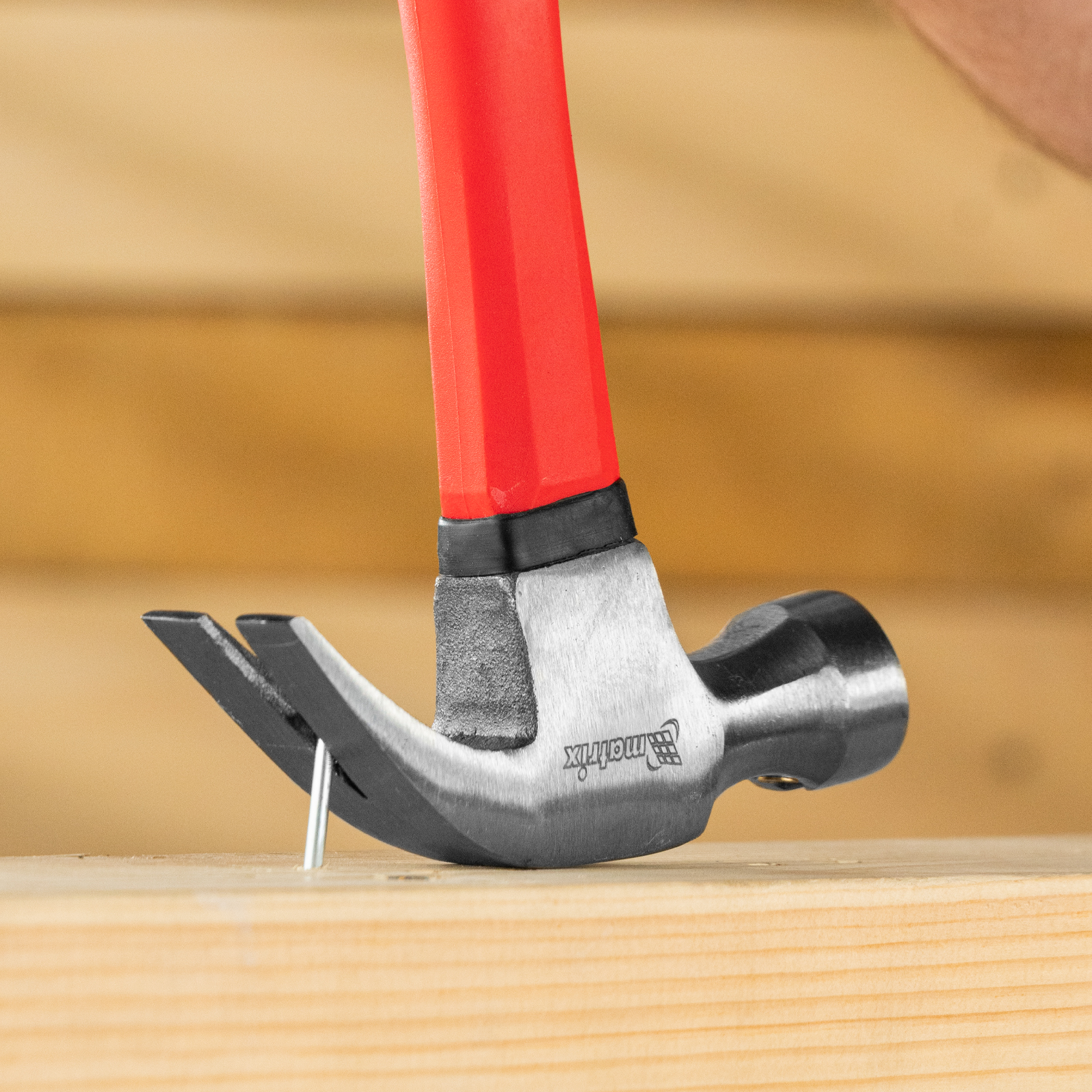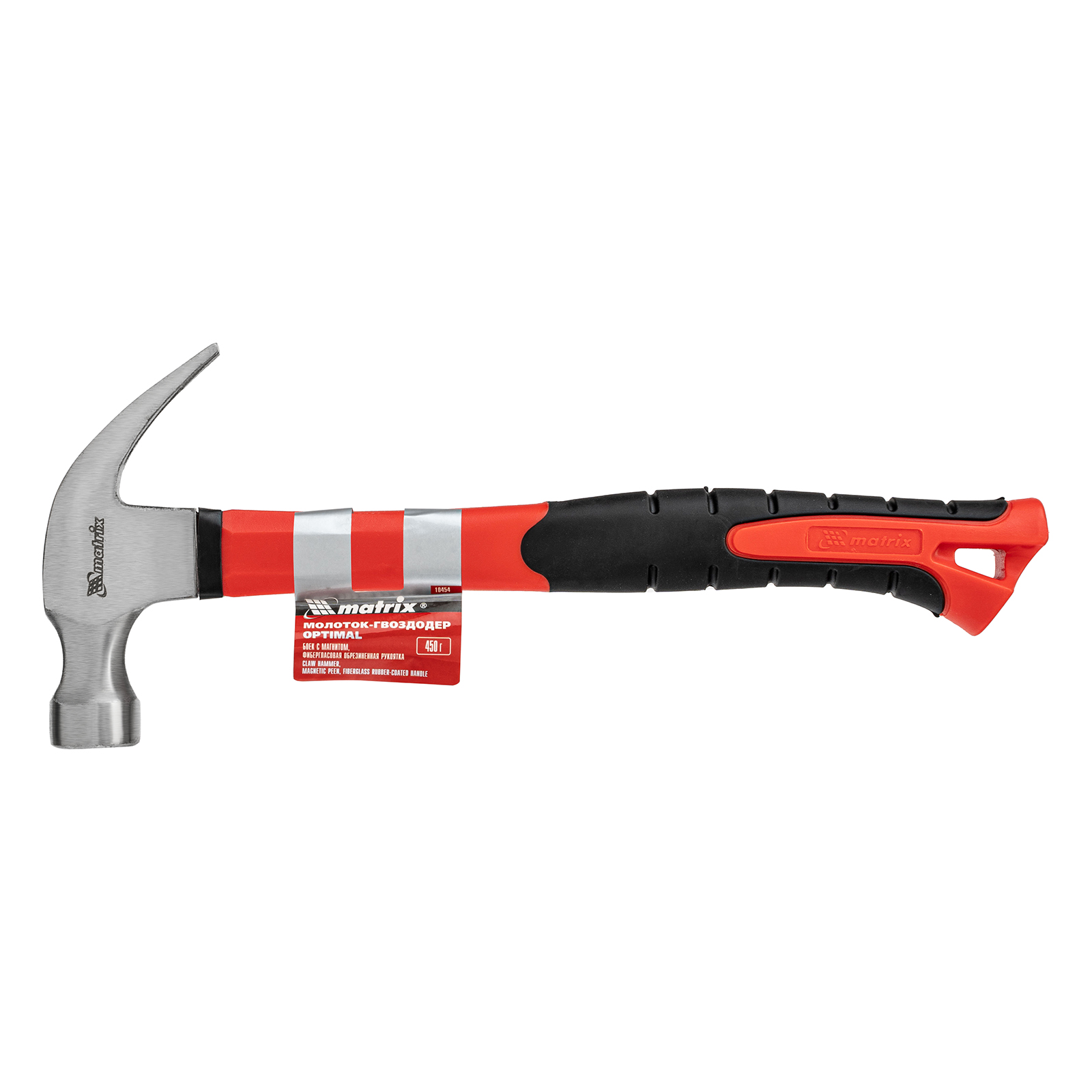Молоток-гвоздодер Matrix «optimal» 10454 длиной 330 мм, с головкой весом 450 г и отшлифованным бойком диаметром 30 мм, с магнитом и фибергласовой обрезиненной рукояткой, позволяет не только забивать гвозди, но и выпрямлять неправильно забитый крепеж. Для захвата шляпки гвоздя предусмотрен изогнутый носок с V-образной прорезью. Круглый боек оснащен магнитным фиксатором, чтобы можно было действовать одной рукой. Молоток-гвоздодер подойдет для профессиональных и столярных и плотницких работ, а также пригодится в быту.