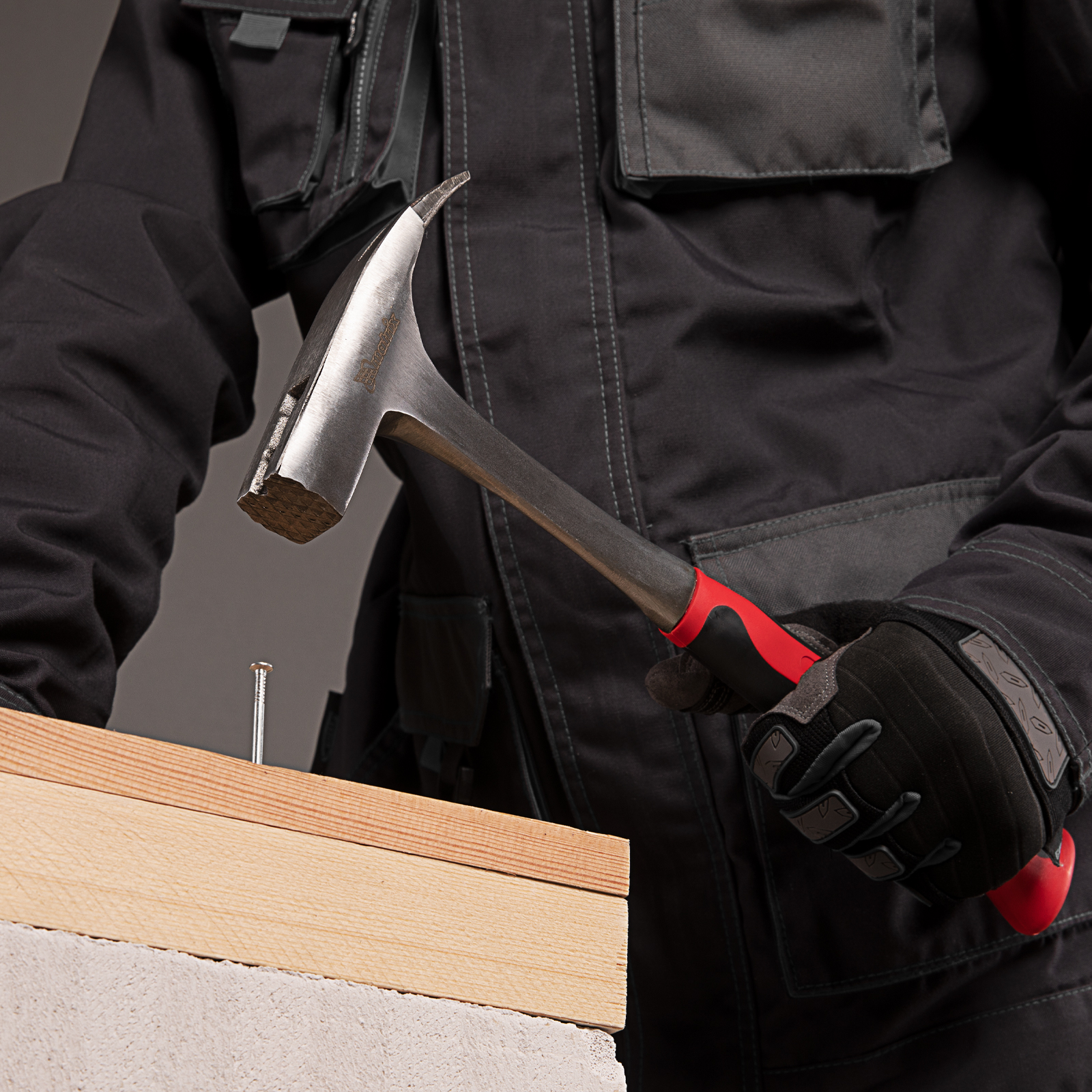 Цельнометаллический молоток кровельщика Matrix 10620 с головкой весом 600 г и двухкомпонентной рукояткой — специализированный инструмент для кровельных работ. Насечки на рабочей поверхности бойка предотвращают соскальзывание, если удар по гвоздю нанесен под углом. Противоположная часть головки представляет собой заостренный клин для пробивания отверстий в листовом металле и отгибания кромок. Гвоздодер позволяет вытягивать неправильно забитые гвозди для их выпрямления.