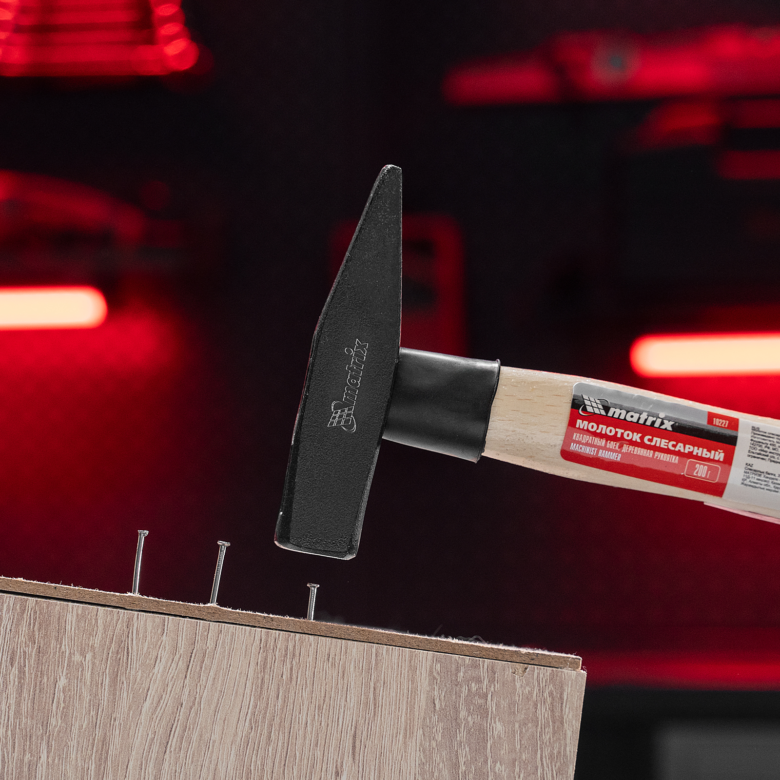 Слесарный молоток Matrix 10227 с квадратным бойком весом 200 г и с деревянной рукояткой служит для нанесения ударов. Используется для работы с металлическими заготовками, забивания гвоздей или дюбелей. Боек с заостренной частью позволяет работать в малодоступных местах. Молоток рекомендован для профессионального использования, также будет полезен дома, на даче и в гараже.
