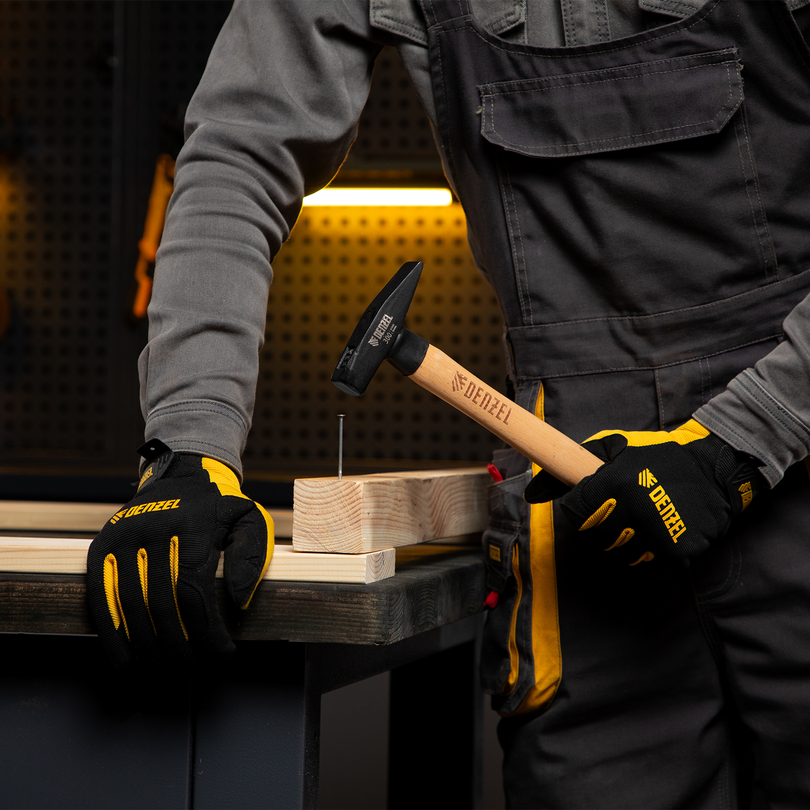 Слесарный молоток Denzel 10427 с квадратным кованым бойком весом 300 г предназначен для забивания гвоздей и другого крепежа и для работы с металлическими заготовками. Инструмент применяется во время слесарных или столярных работ в быту, также будет полезен профессионалам.
