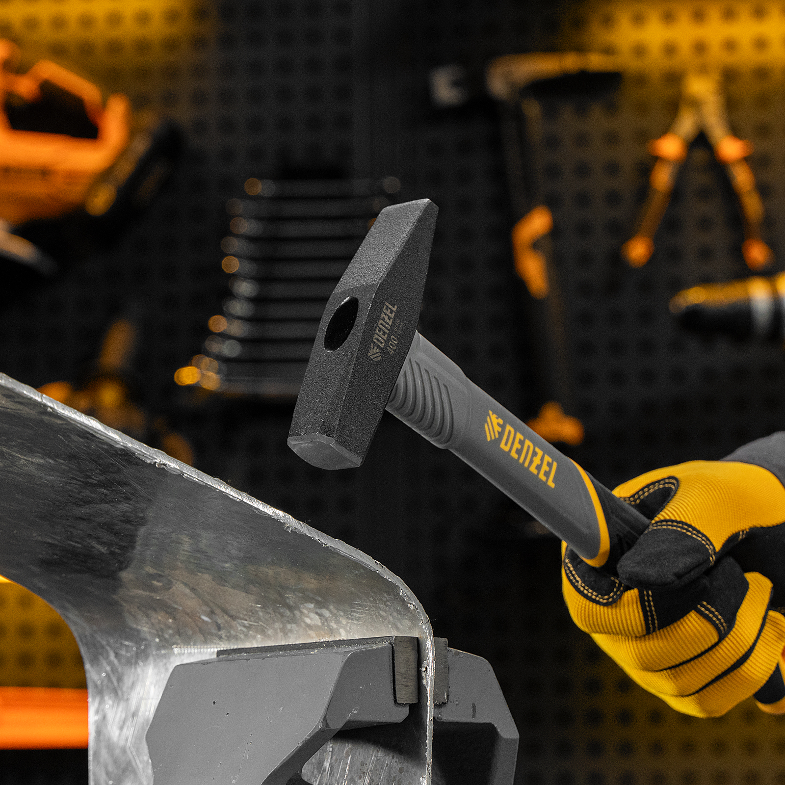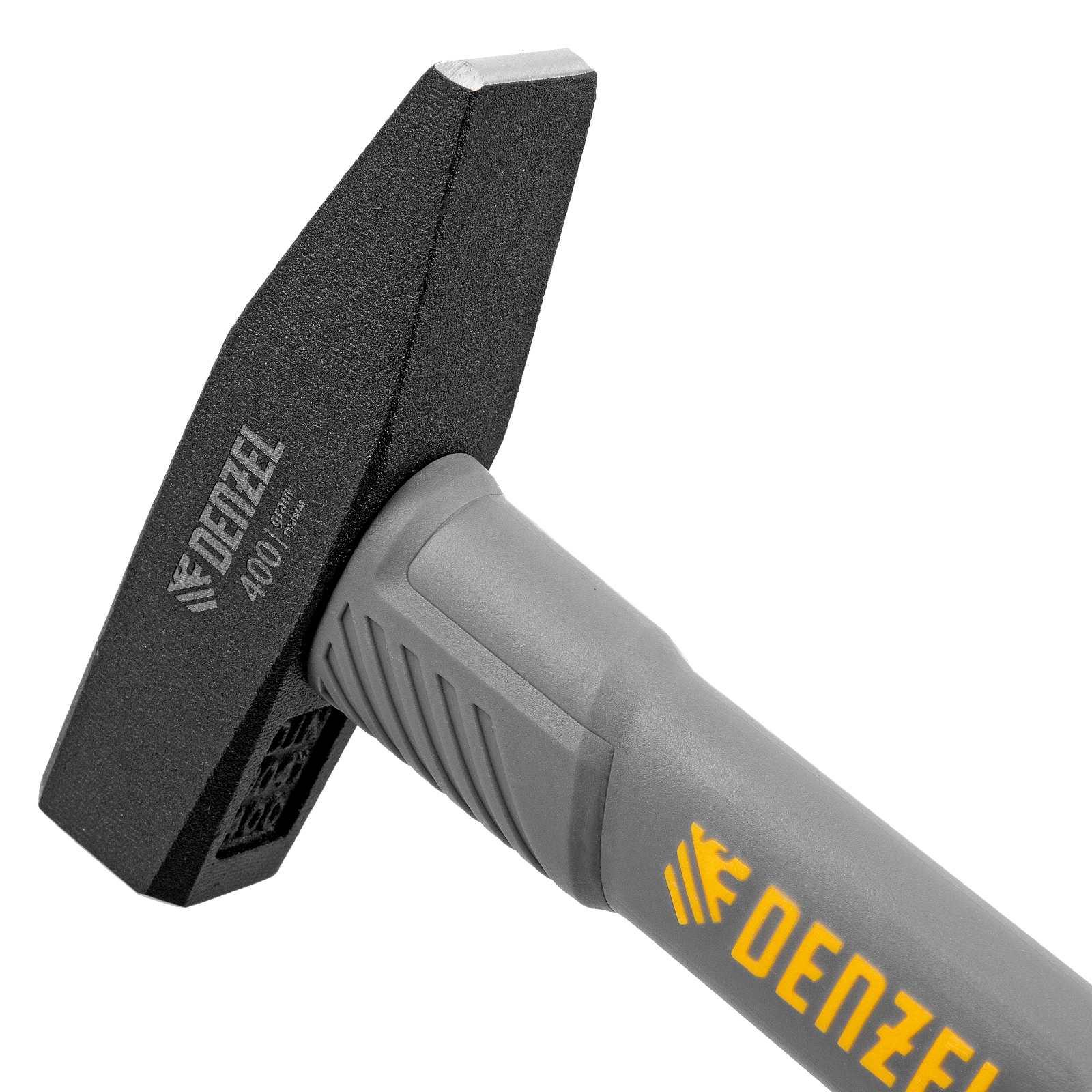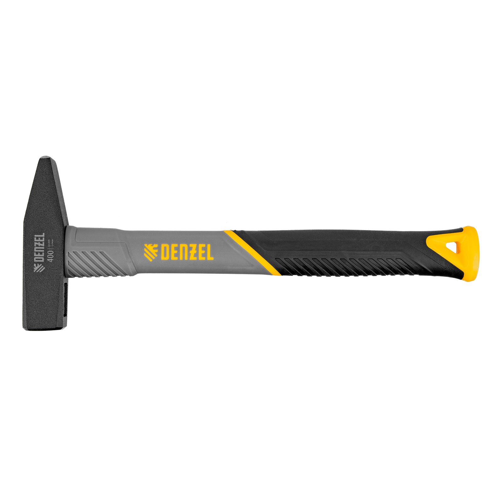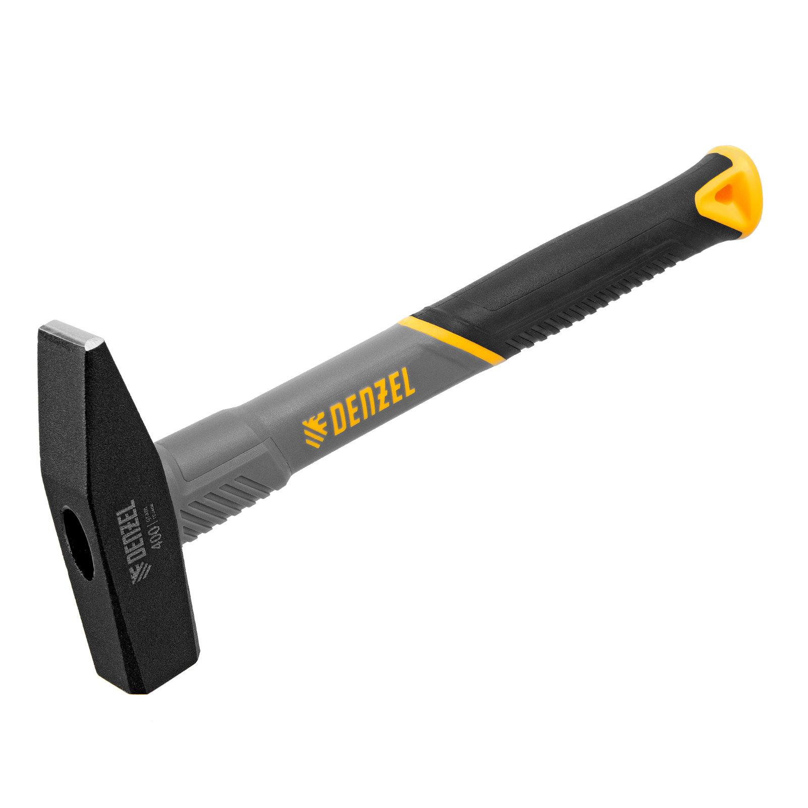 Молоток слесарный кованый Denzel 10484 с квадратным бойком весом 400 г и трехкомпонентной фибергласовой рукояткой с TPR-покрытием предназначен для работы с металлическими заготовками, забивания гвоздей, штырей, дюбелей и другого крепежа. Рукоятка выполнена в эксклюзивном дизайне. Молоток рекомендован для профессионального и домашнего применения.