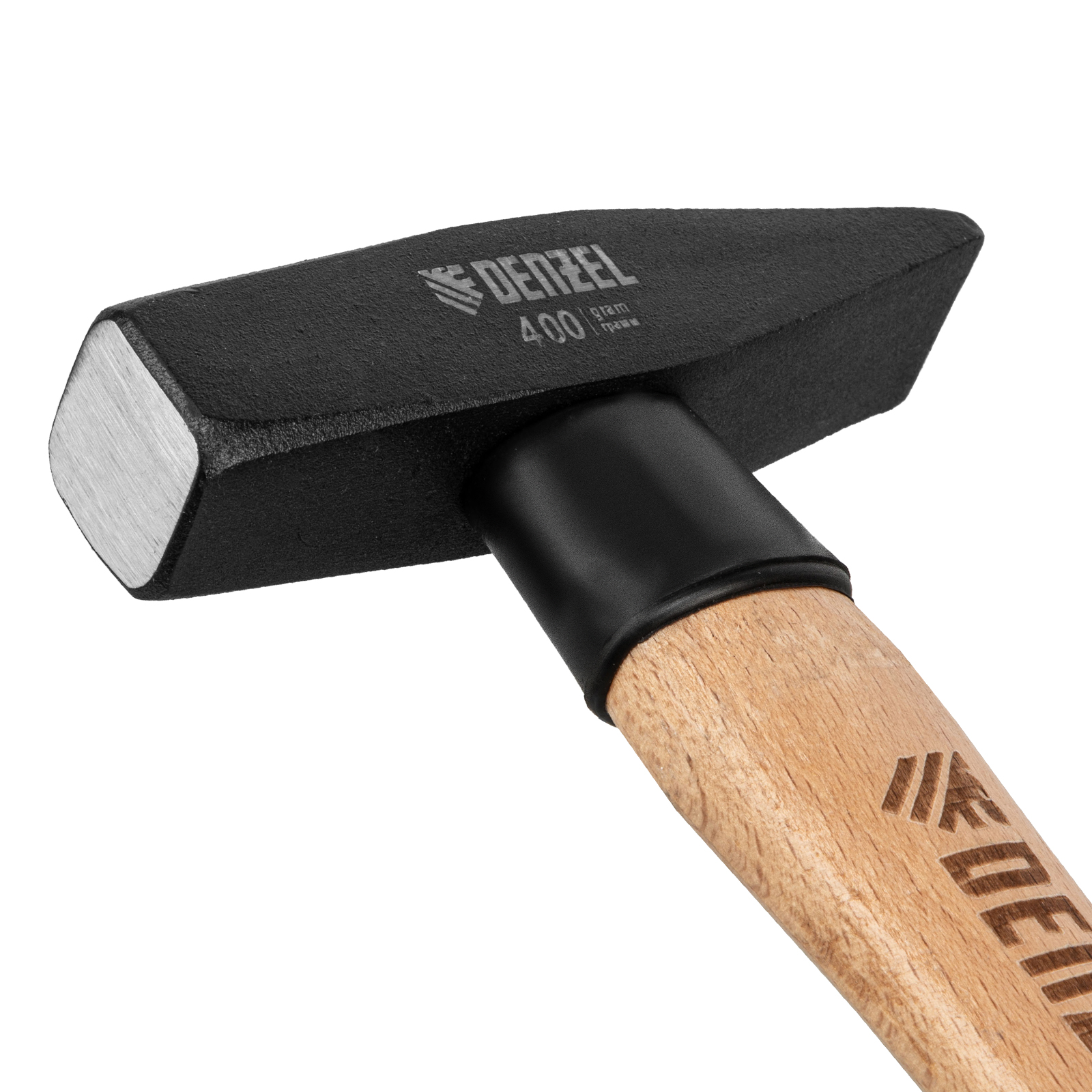 Слесарный молоток Denzel 10428 с квадратным кованым бойком весом 400 г предназначен для забивания гвоздей и другого крепежа и для работы с металлическими заготовками. Инструмент применяется во время слесарных или столярных работ в быту, также будет полезен профессионалам.