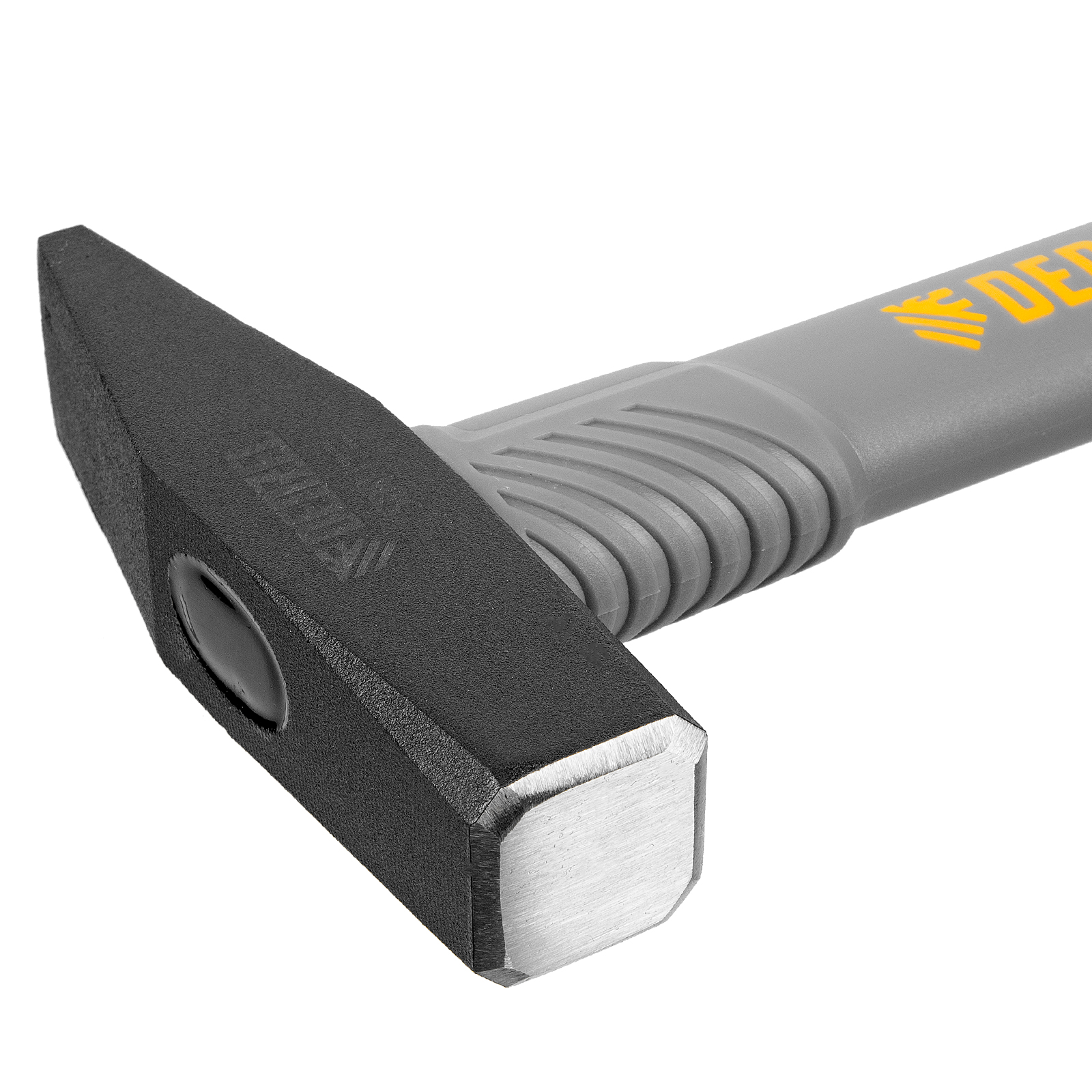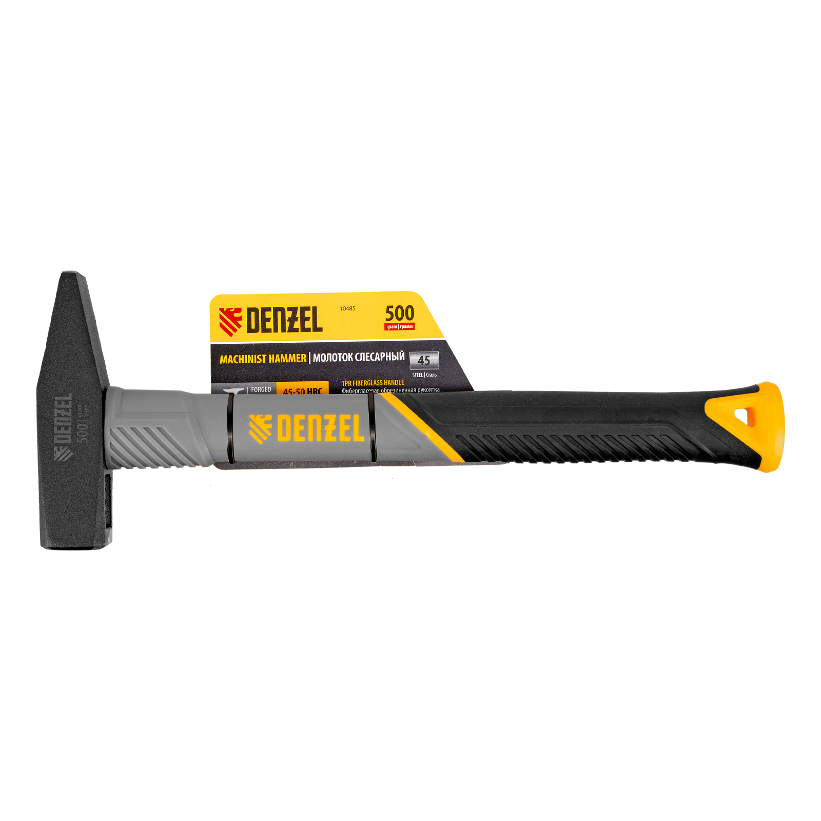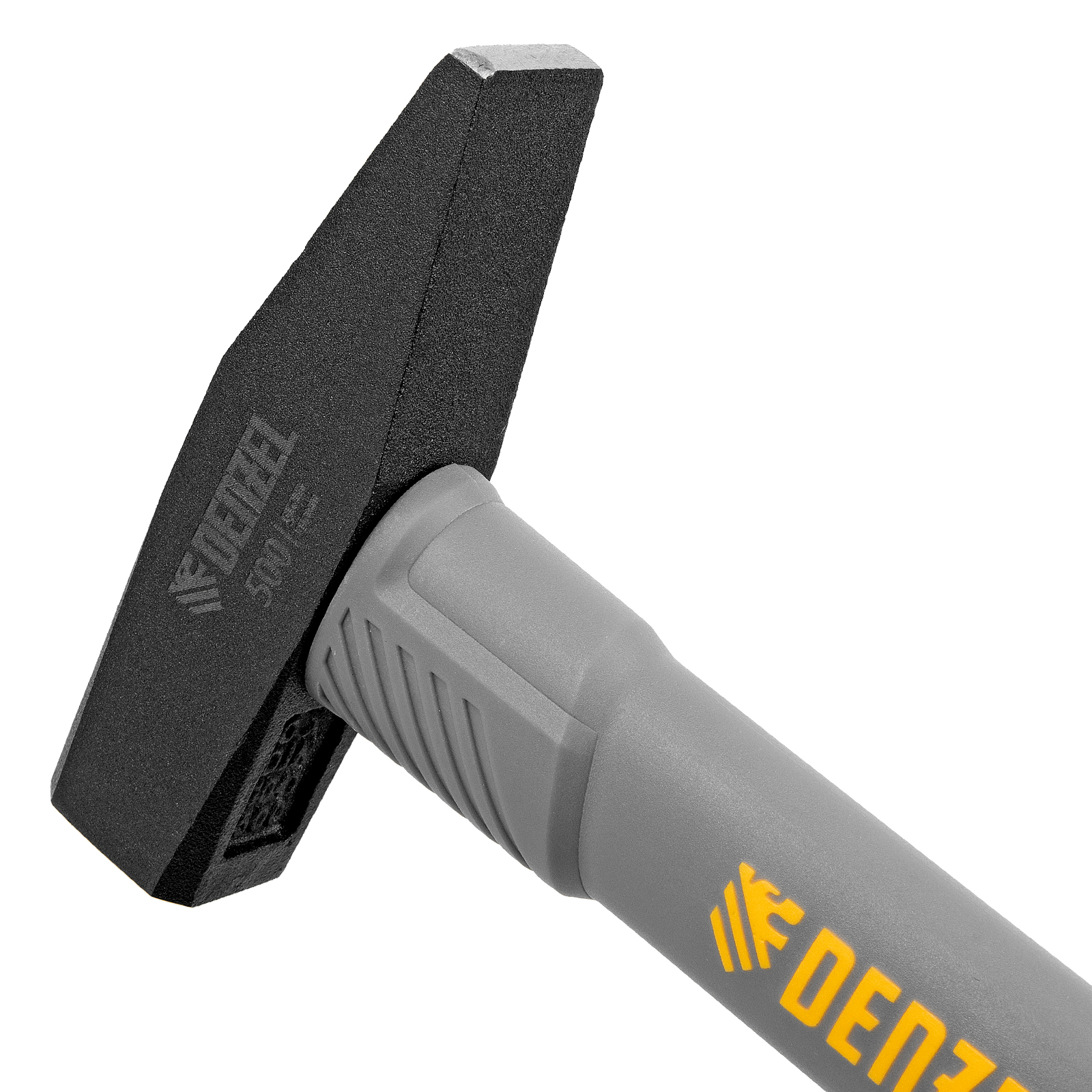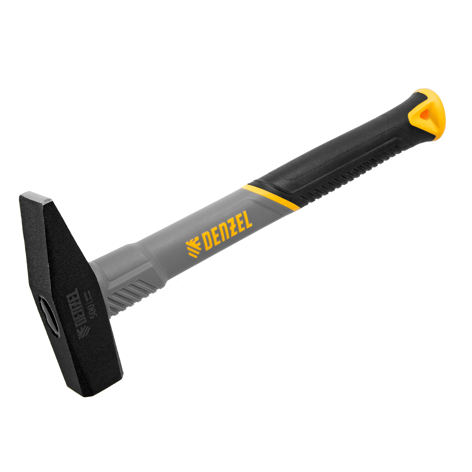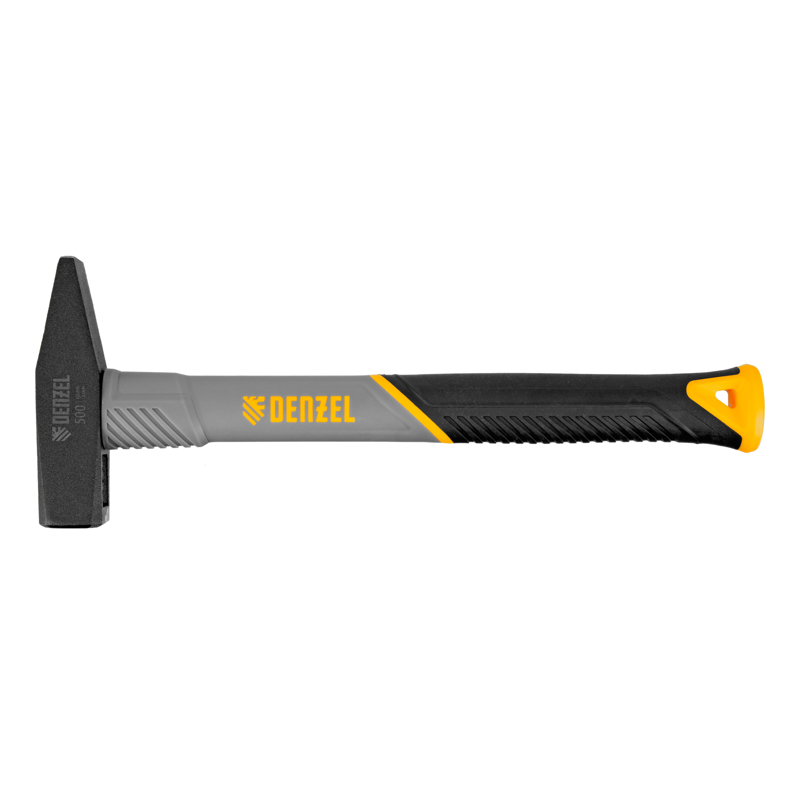 Молоток слесарный кованый Denzel 10485 с квадратным бойком весом 500 г и трехкомпонентной фибергласовой рукояткой с TPR-покрытием предназначен для работы с металлическими заготовками, забивания гвоздей, штырей, дюбелей и другого крепежа. Рукоятка выполнена в эксклюзивном дизайне. Молоток рекомендован для профессионального и домашнего применения.