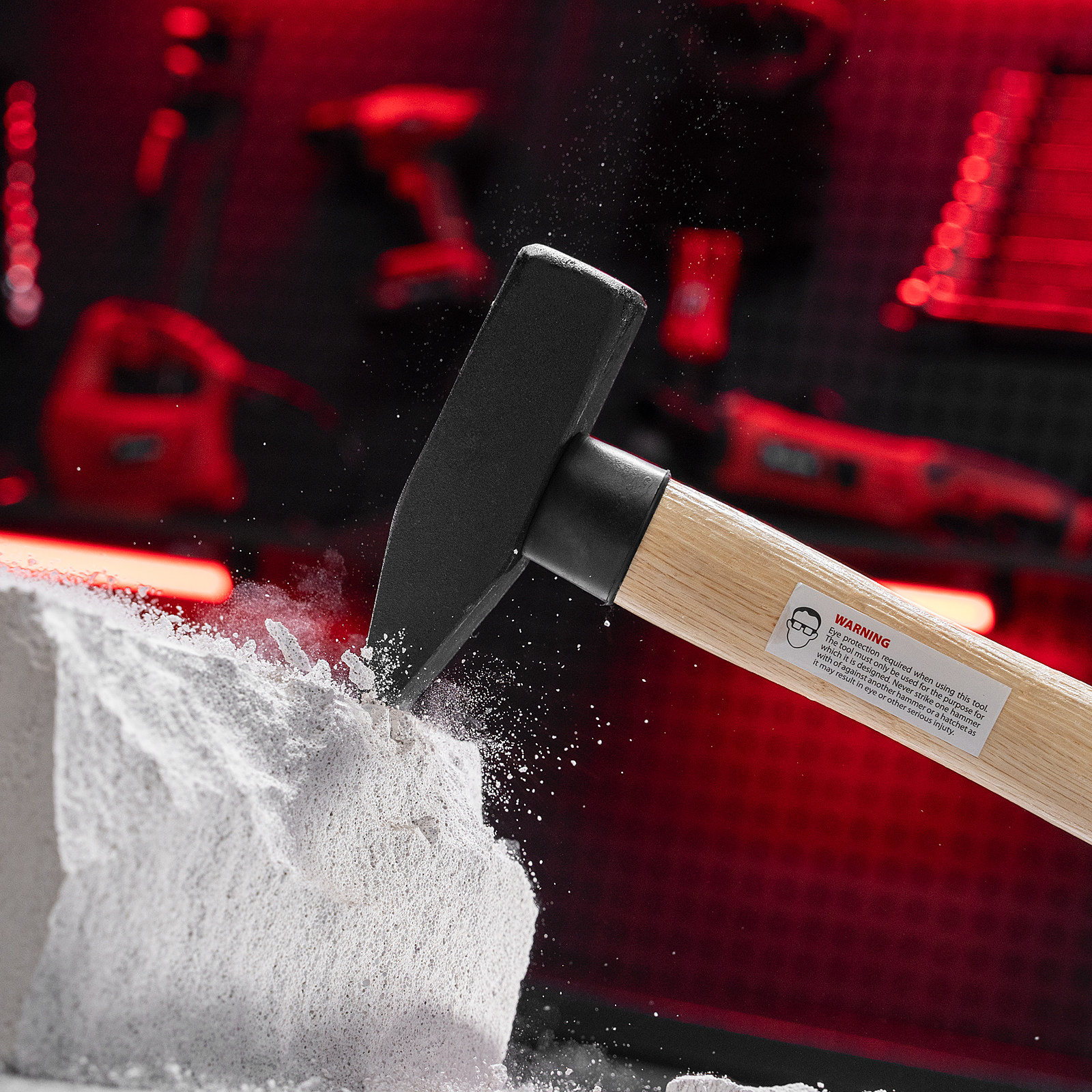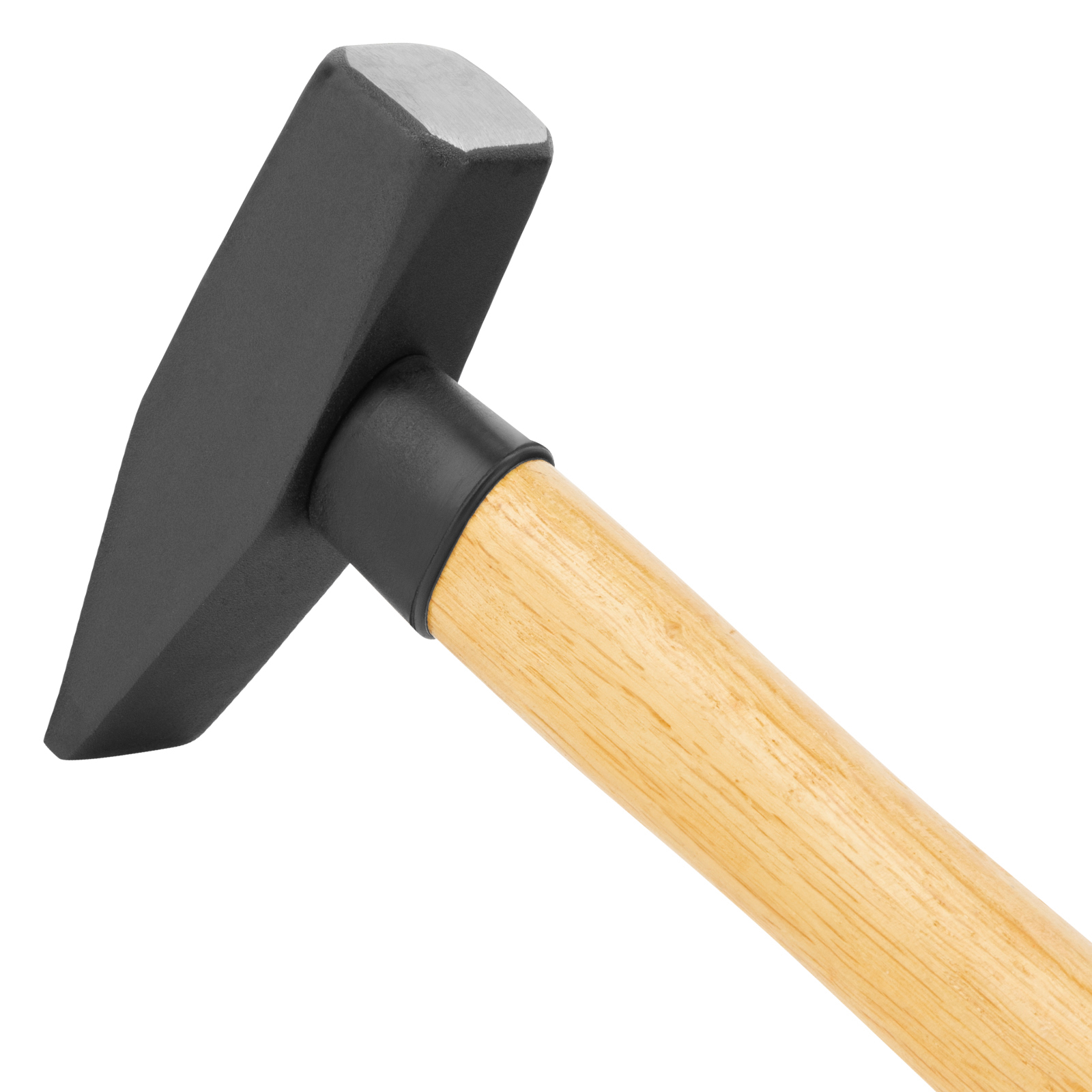 - Надежная конструкция — рукоятка расклинена, головка дополнительно зафиксирована эпоксидным клеем, увеличенная «юбка» в месте всада защищает рукоятку в случае промаха при ударе.