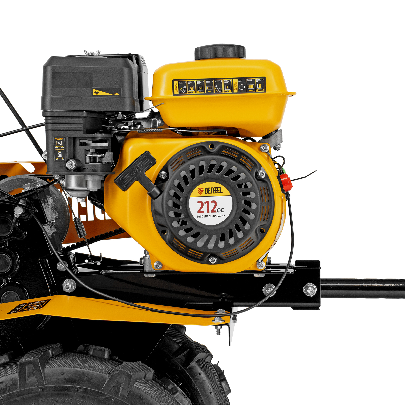 Надежность — мощный 4-тактный двигатель серии Long Life обеспечивает длительную стабильную работу мотоблока.