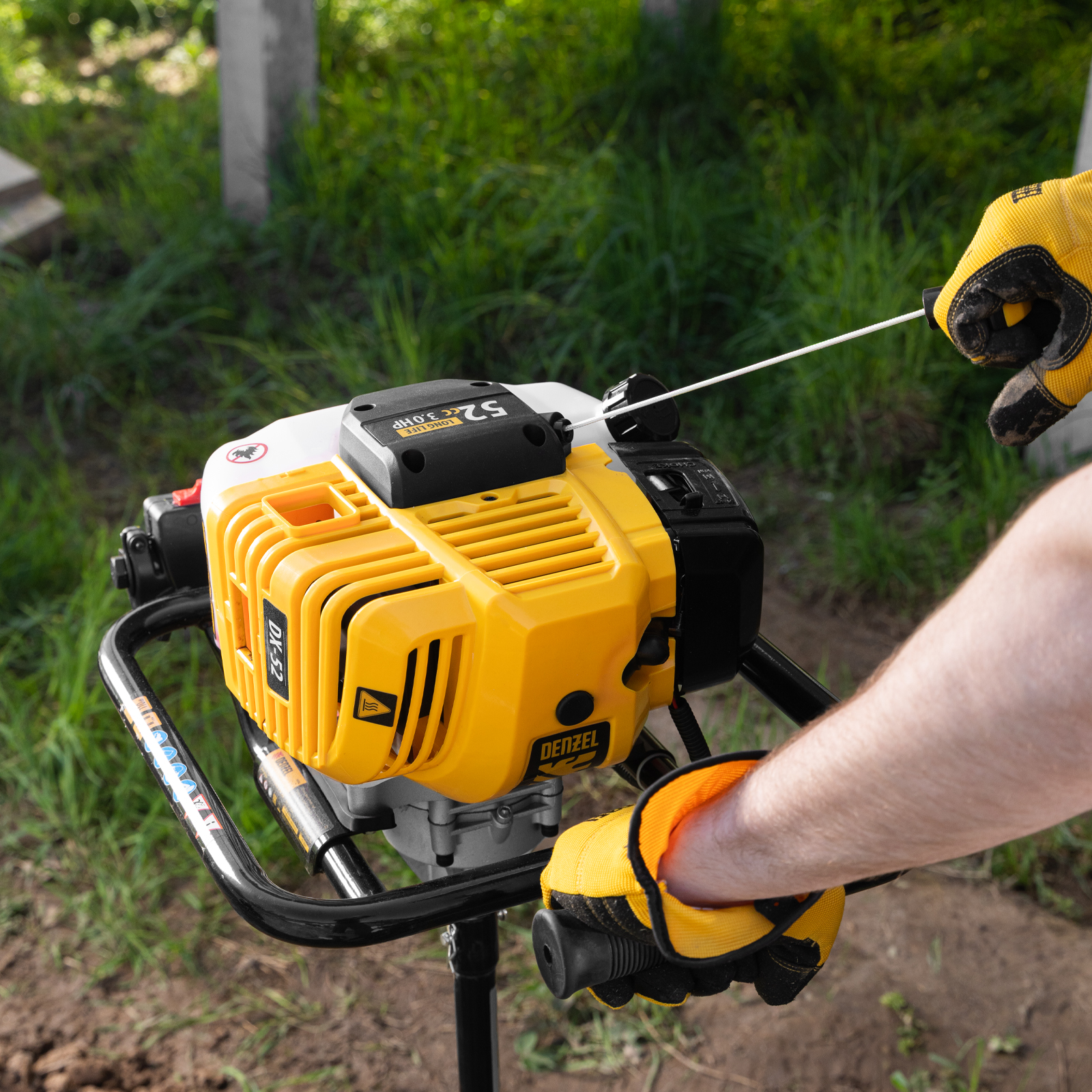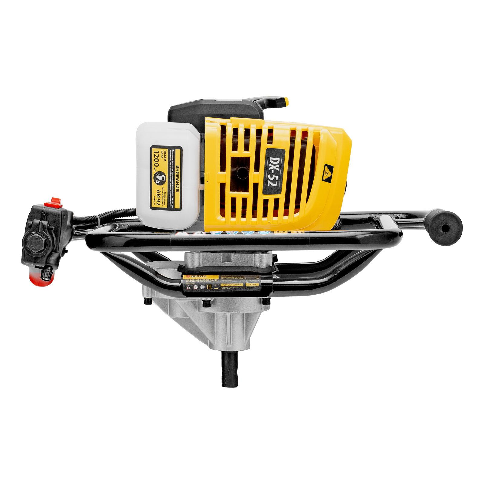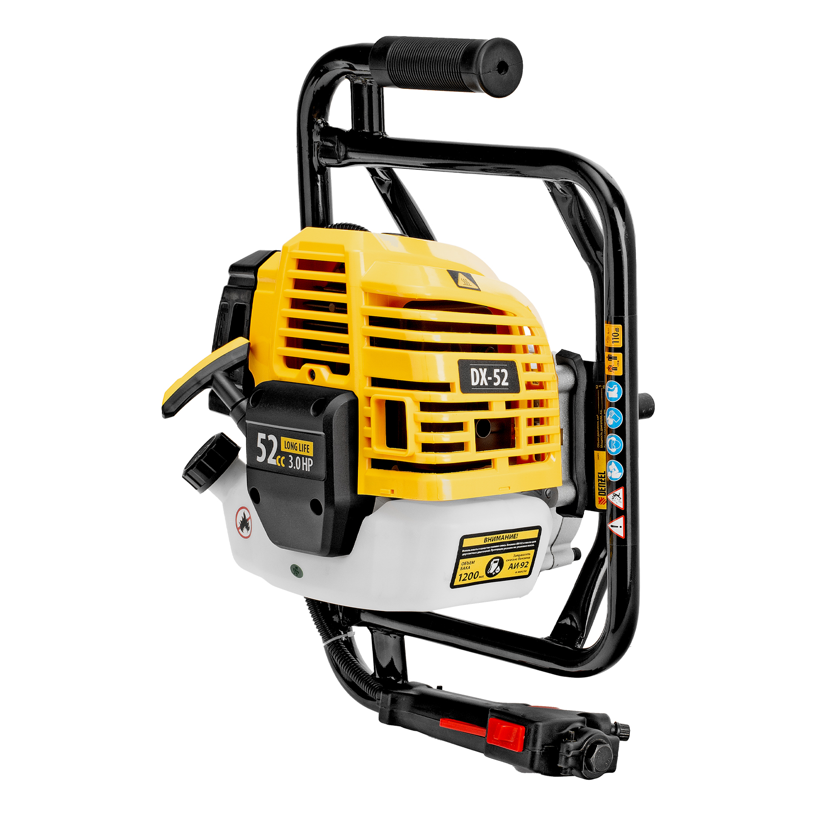Мотобур Denzel DX-52 56001 с объемом двигателя 52 см3 и диаметром соединения 20 мм предназначен для получения отверстий и углублений во льду или в грунте максимальным диаметром 300 мм. Мощный и экономичный двигатель мощностью 3 л. с. позволяет эффективно решать поставленные задачи. Для бурения отверстий диаметром более 150 мм и глубиной более 1 м предусмотрена возможность управления мотобуром двумя пользователями. Устройство будет полезно на строительной площадке, загородном участке, пригодится также во время зимней рыбалки.