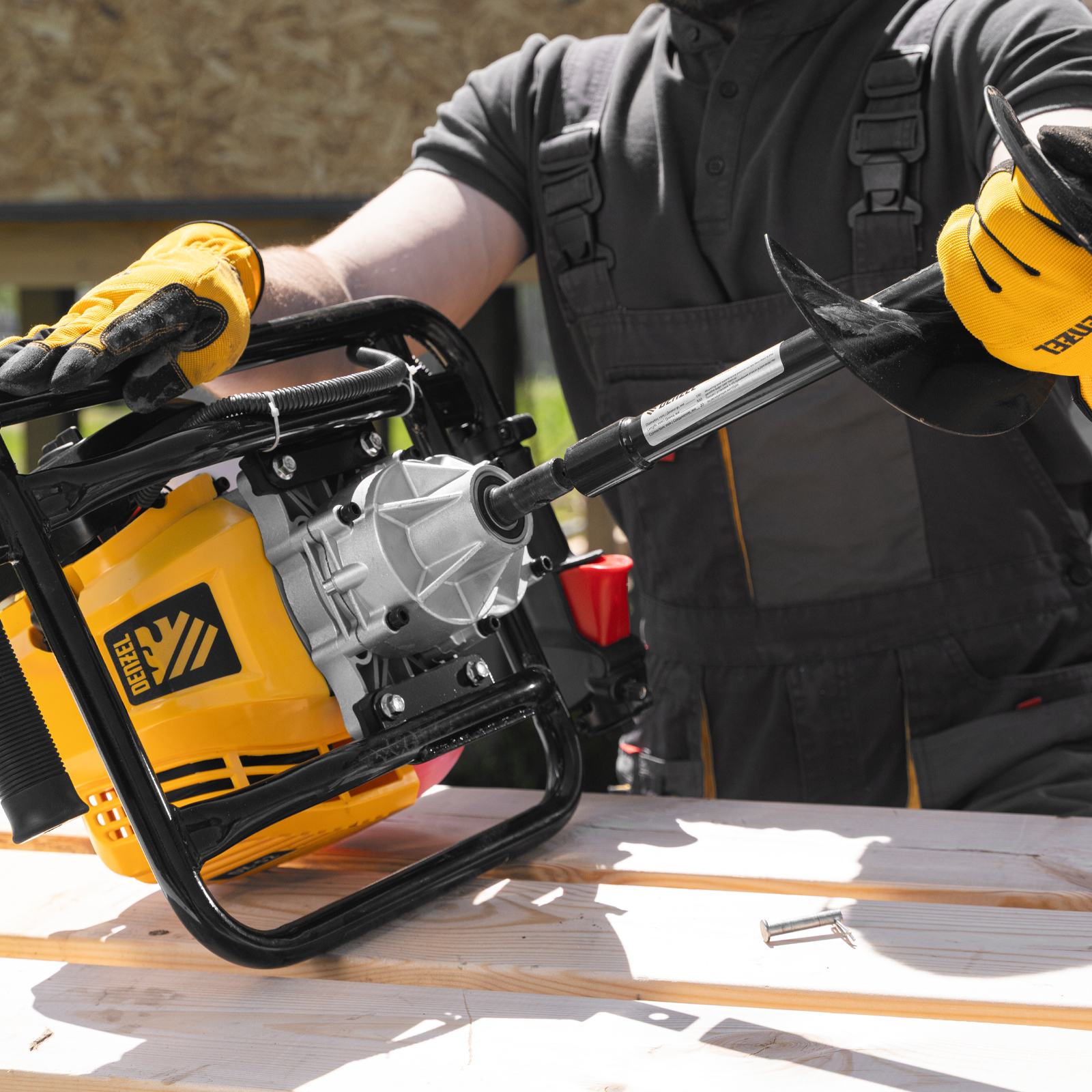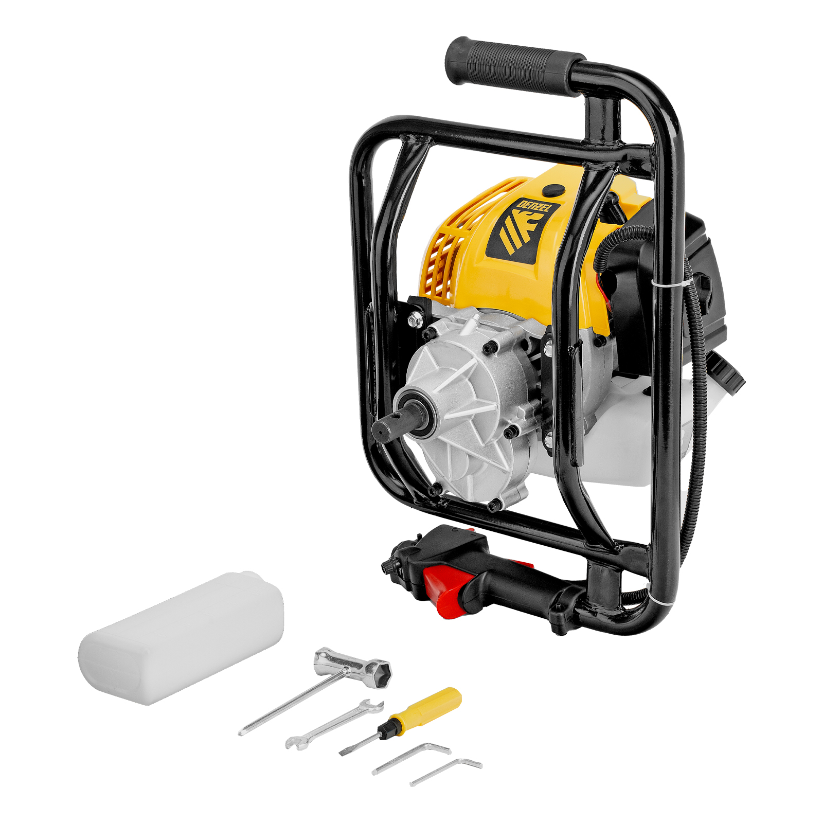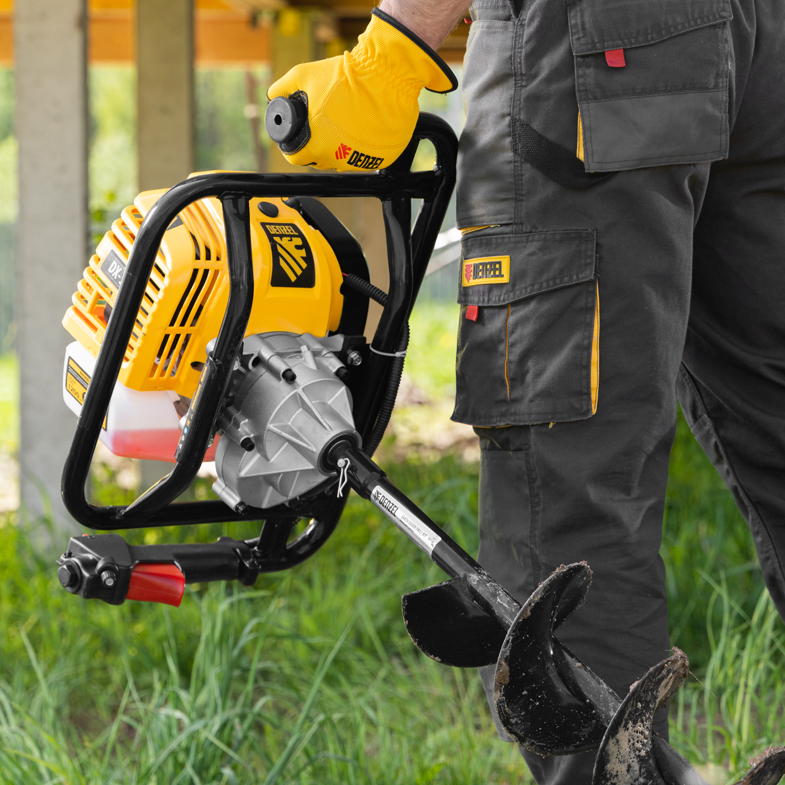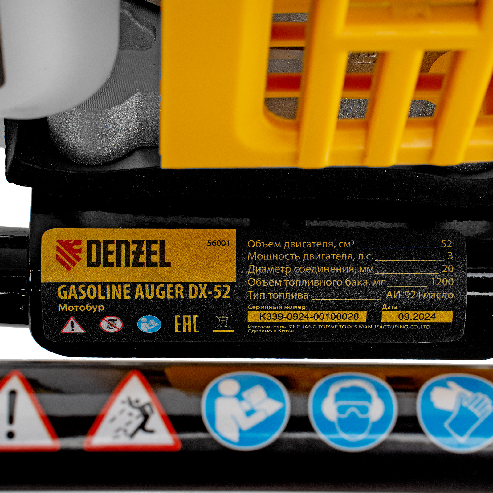 Мотобур Denzel DX-52 56001 с объемом двигателя 52 см3 и диаметром соединения 20 мм предназначен для получения отверстий и углублений во льду или в грунте максимальным диаметром 300 мм. Мощный и экономичный двигатель мощностью 3 л. с. позволяет эффективно решать поставленные задачи. Для бурения отверстий диаметром более 150 мм и глубиной более 1 м предусмотрена возможность управления мотобуром двумя пользователями. Устройство будет полезно на строительной площадке, загородном участке, пригодится также во время зимней рыбалки.