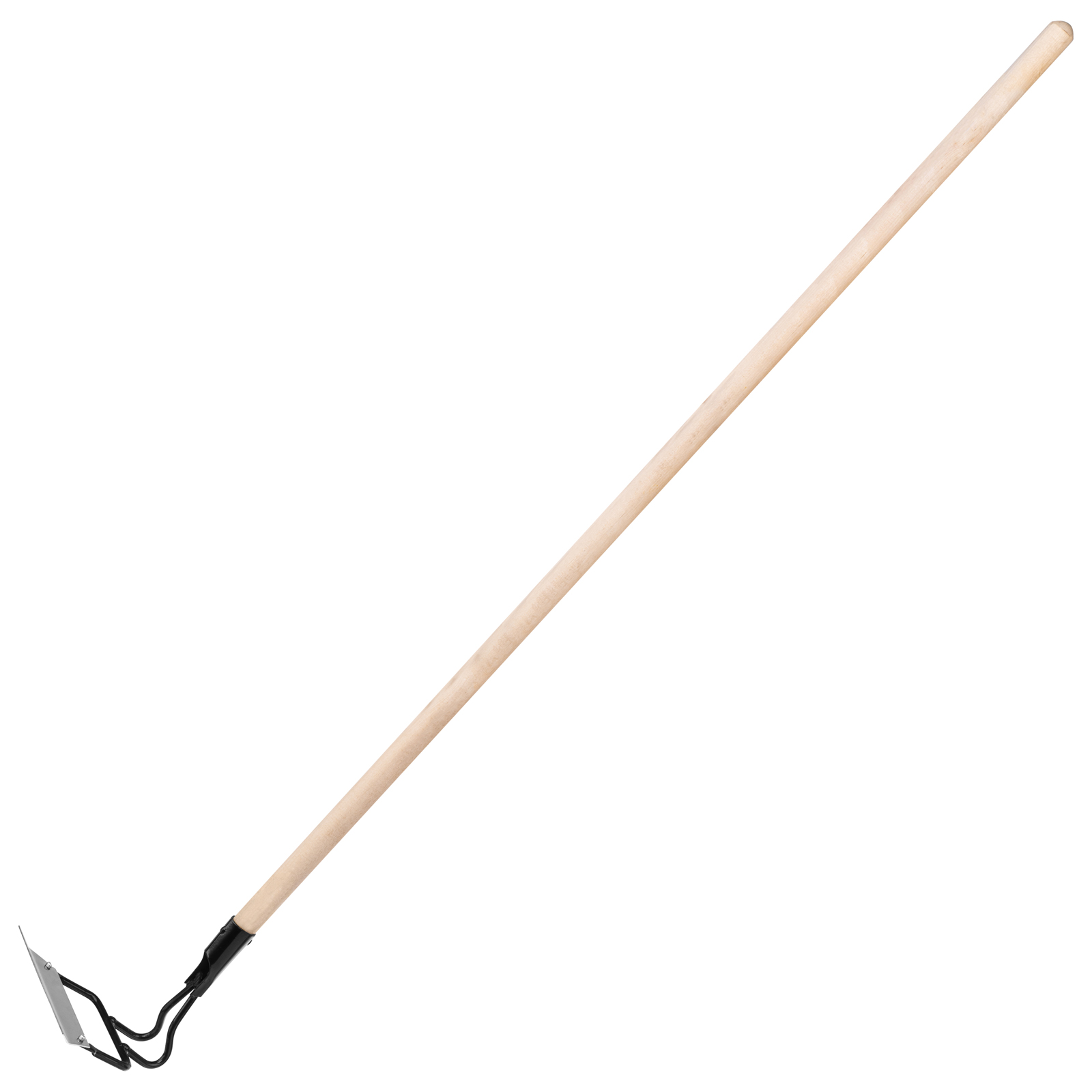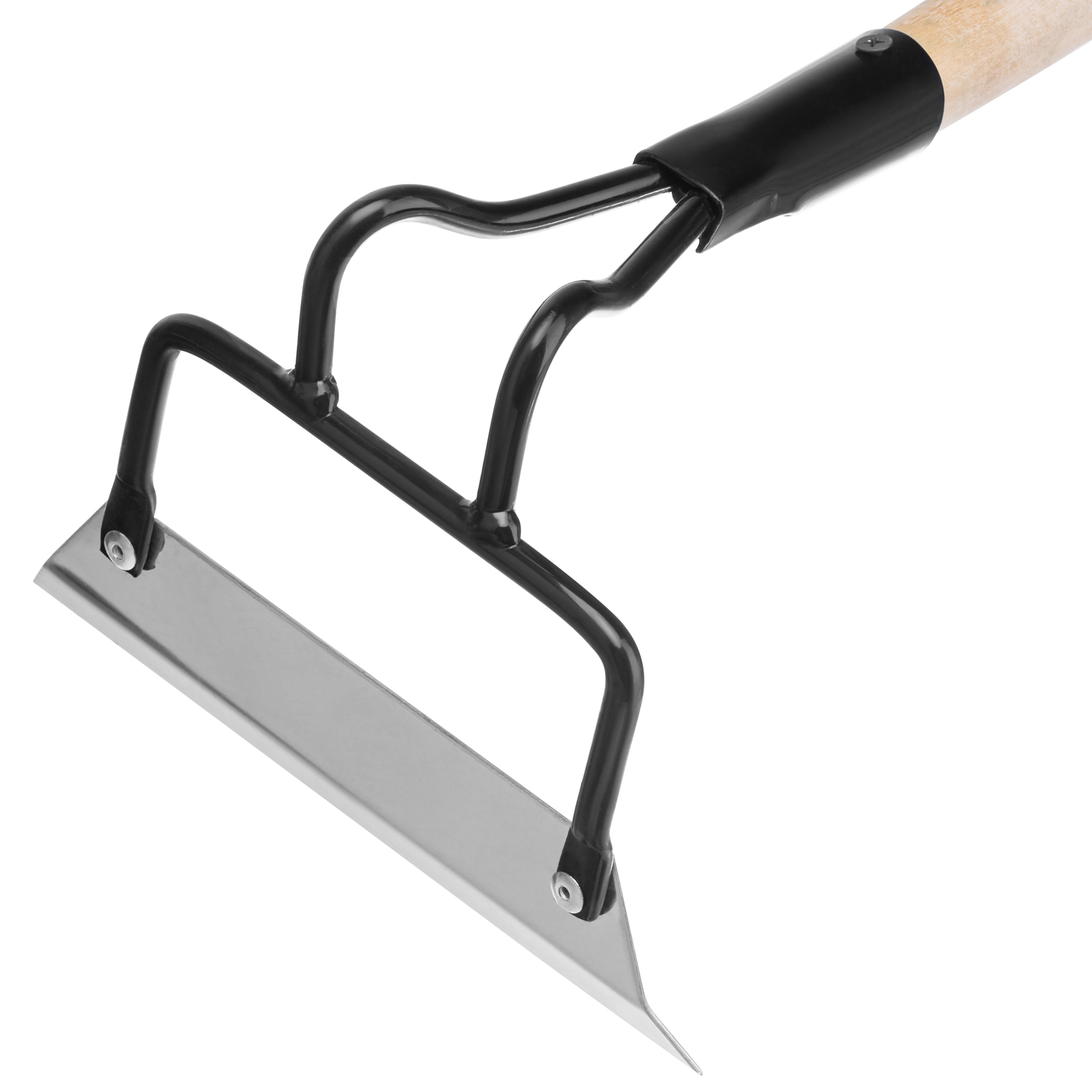- Эффективная работа — режущая кромка остро заточена, поэтому мотыга легко срезает сорняки и рыхлит даже плотную почву.