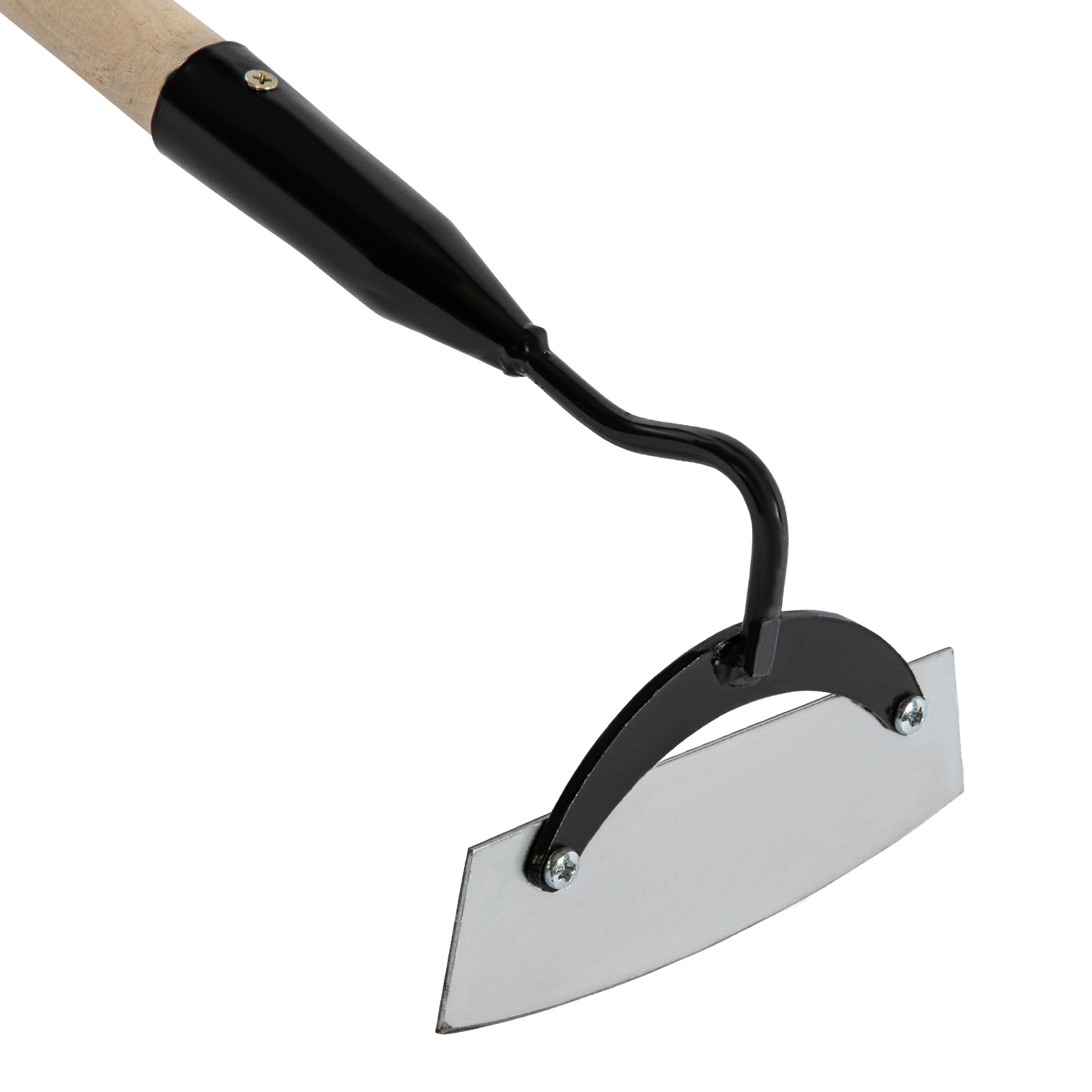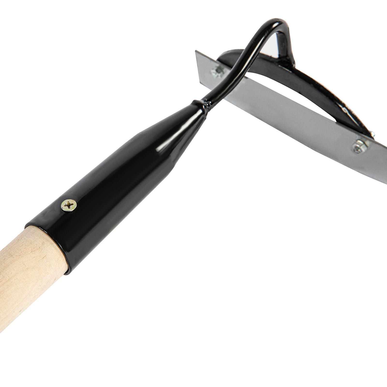 - Надежная фиксация — полотно соединено с тулейкой винтами, а черенок закреплен саморезом.