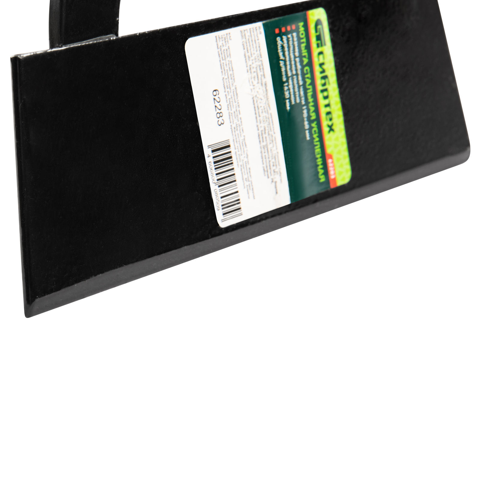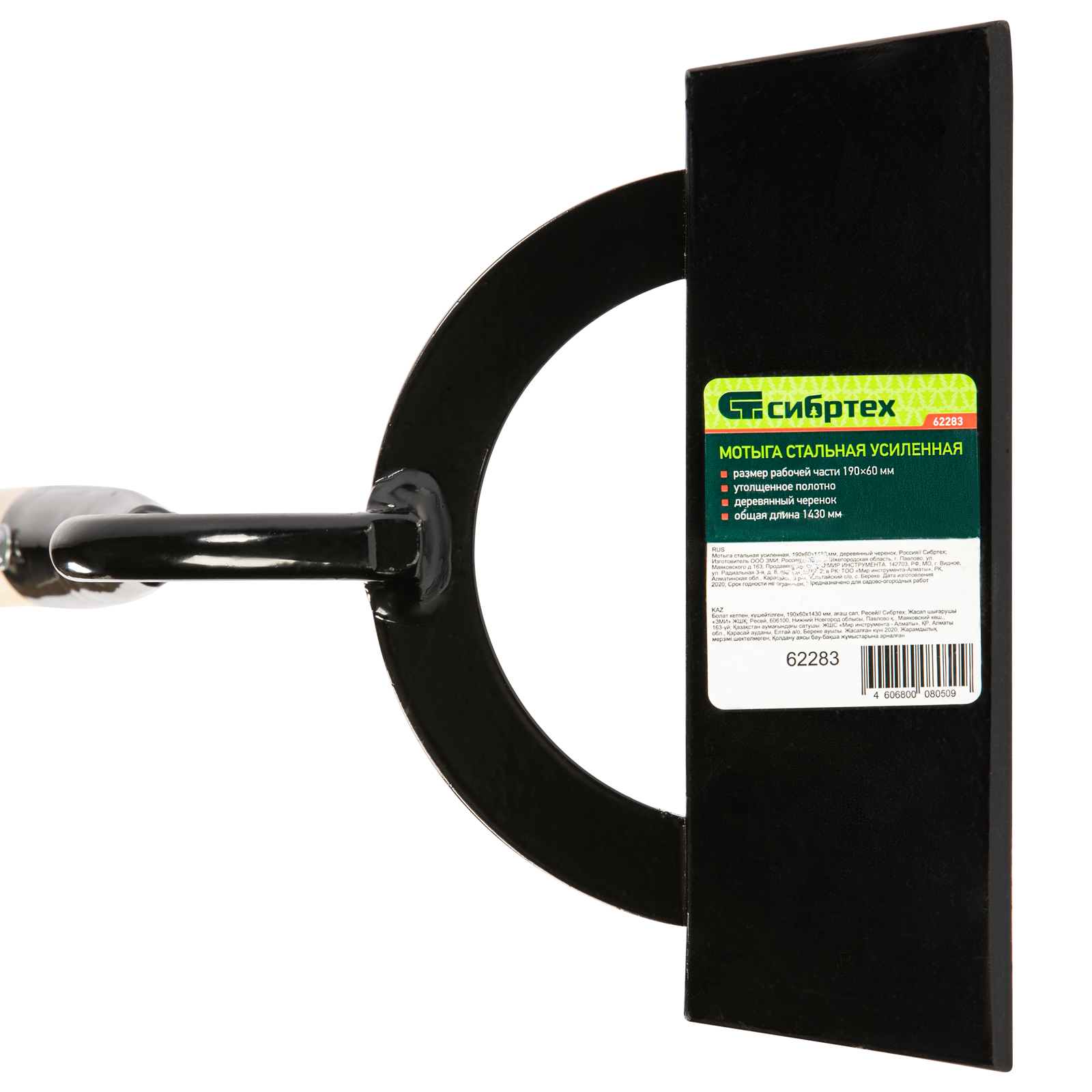 Стальная усиленная мотыга Сибртех 62283 размером 190 х 60 х 1430 мм, с деревянным черенком, — ручной инструмент для рыхления и прополки почвы, окучивания растений. Поставляется в сборе со шлифованным черенком из древесины твердых пород, обеспечивающим комфорт во время работы. Инструмент будет полезен владельцам дачных участков.