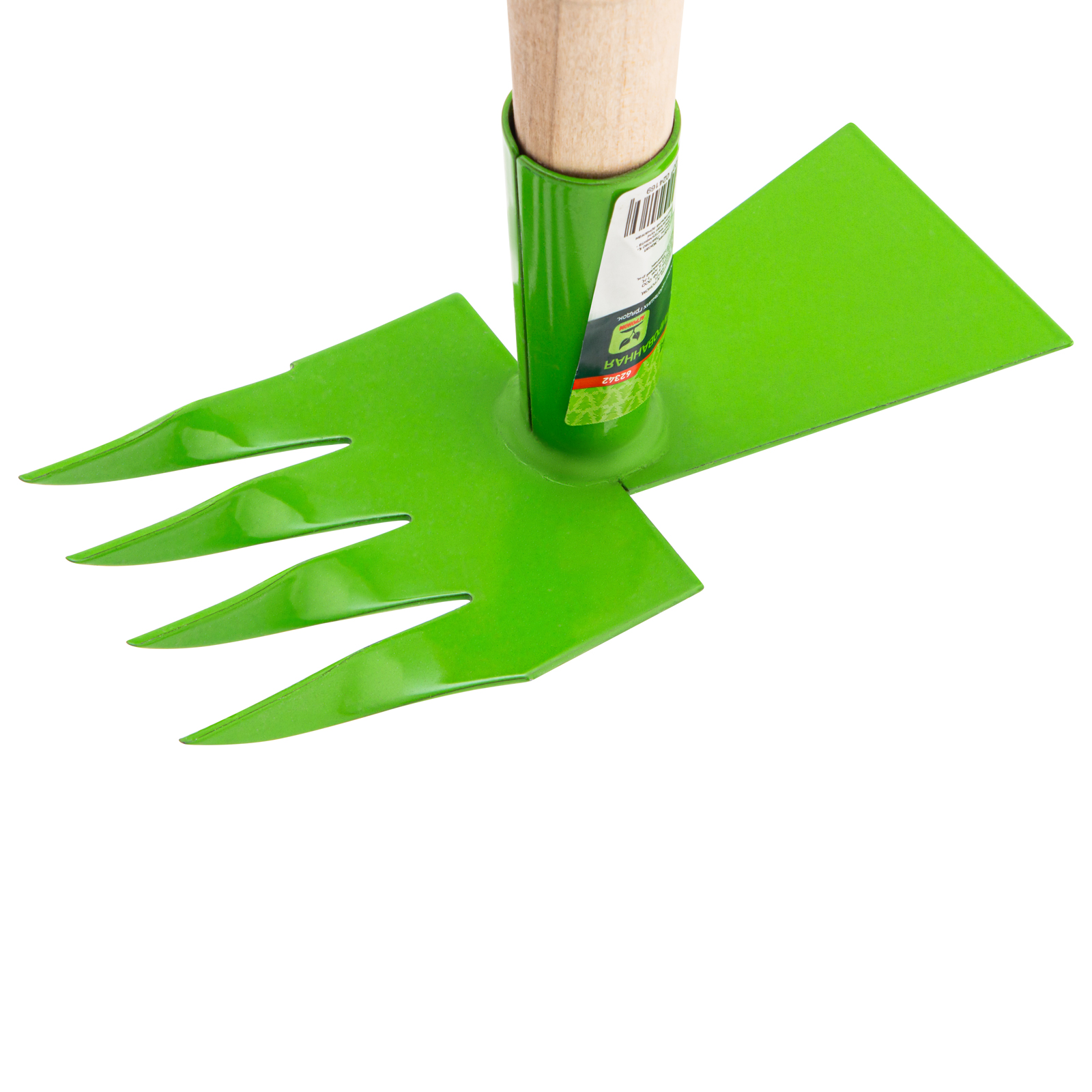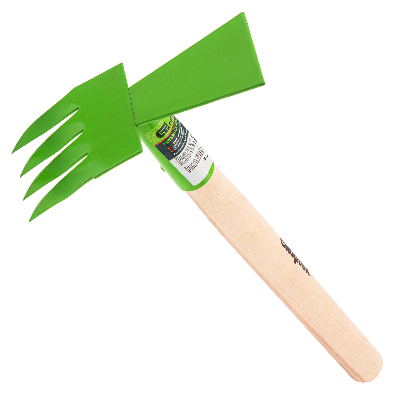 Комбинированная стальная мотыжка Сибртех АГРОНОМ 62342 длиной 380 мм, с деревянной рукояткой, имеет рабочую часть шириной 80 мм и используется для обработки почвы на небольших участках. Рабочая часть представляет собой сочетание трапеции и 4 зубьев. Трапециевидная часть пропалывает землю, срезая сорняки. Витые зубья разбивают земляные комочки, обеспечивая эффективную аэрацию почвы. Инструмент идеально подходит для ухода за клумбами и грядками.
