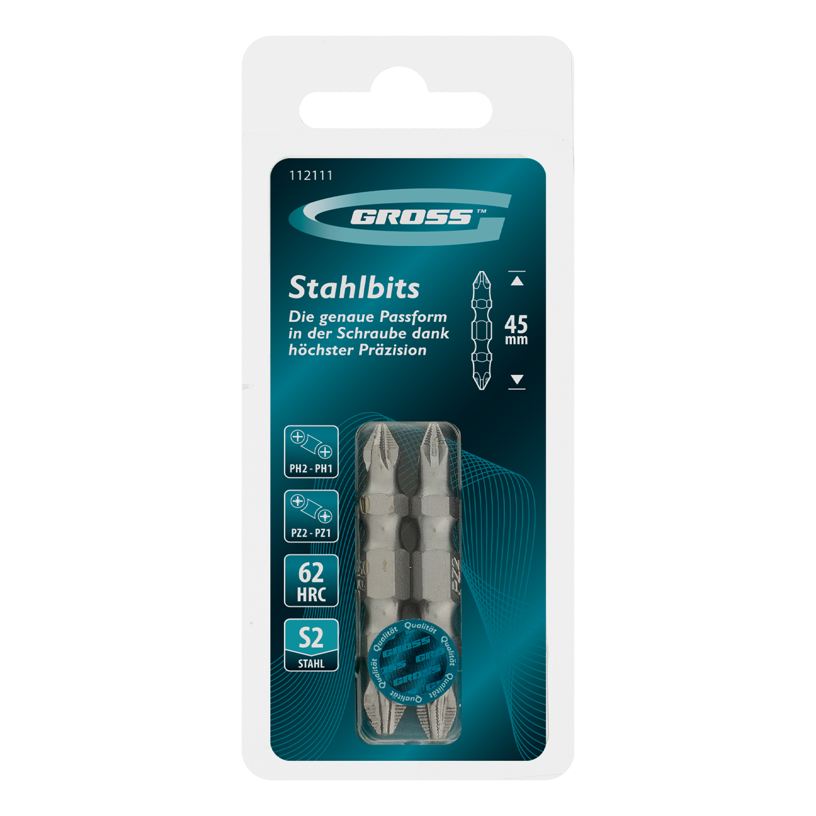 Набор двусторонних бит Gross 112111 состоит из насадок PH2-PH1 х 45 мм и PZ2-PZ1 х 45 мм, изготовленных из стали S2. Предназначен для закручивания/откручивания саморезов по дереву и другого резьбового крепежа с помощью шуруповерта. Насадки с рабочими профилями самого востребованного типа Phillips и Pozidriv подходят как для бытового, так и для профессионального использования. Дополнительные ребра в шлице PZ обеспечивают максимально плотное прилегание биты к шляпке метиза.