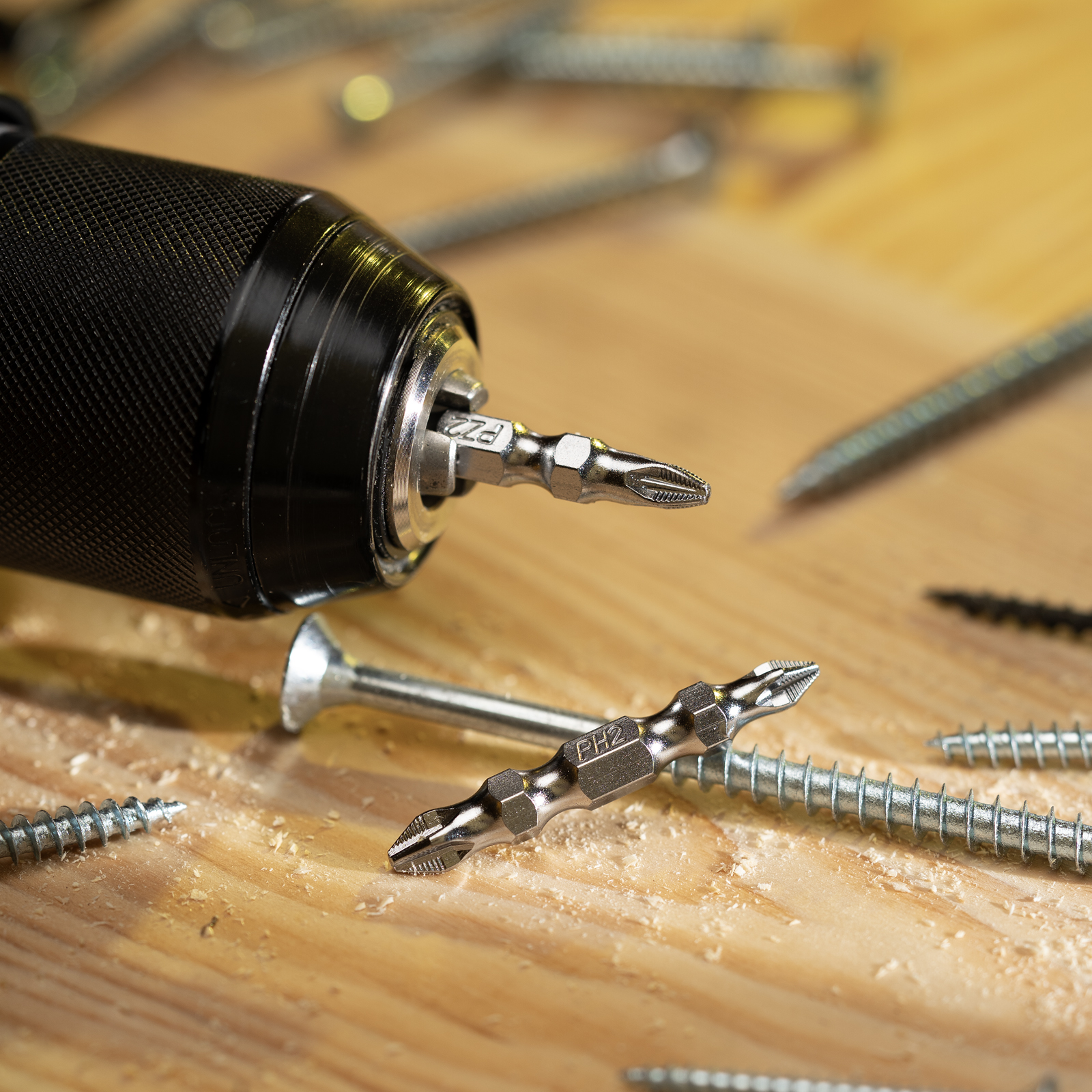 - Высокий показатель прочности — биты выполнены из японской легированной стали S2, рабочие части закалены до твердости 62 HRC.