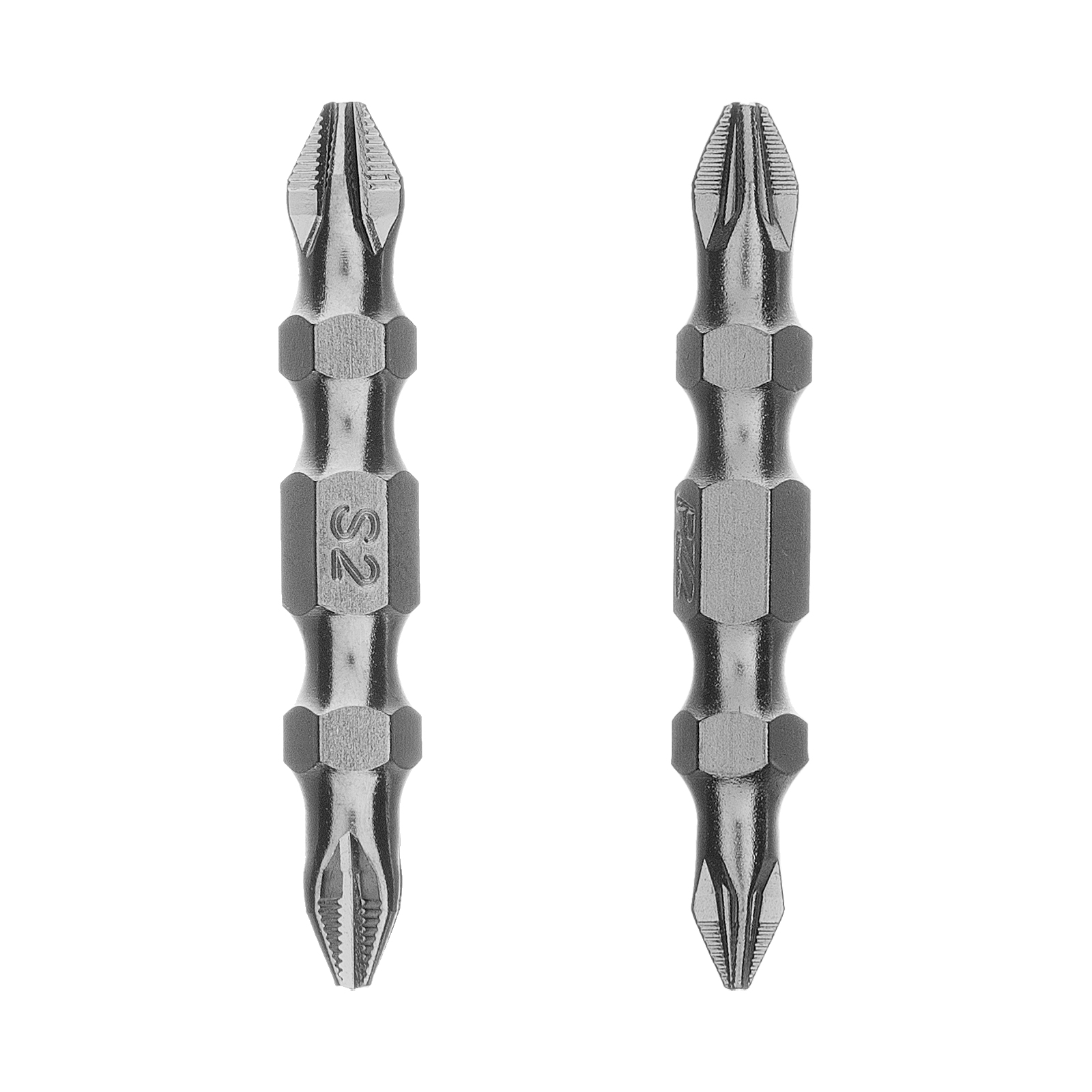 - Высокий показатель прочности — биты выполнены из японской легированной стали S2, рабочие части закалены до твердости 62 HRC.