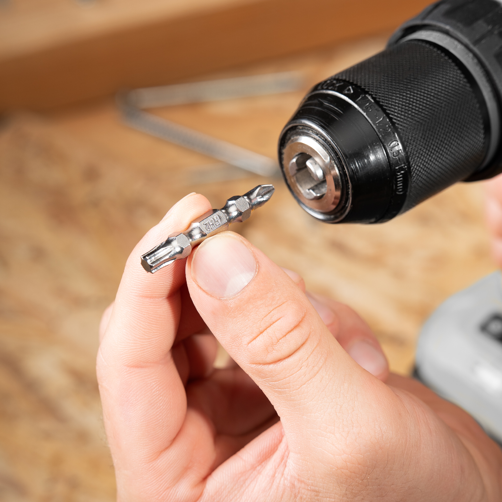 - Высокий показатель прочности — биты выполнены из японской легированной стали S2, рабочие части закалены до твердости 62 HRC.