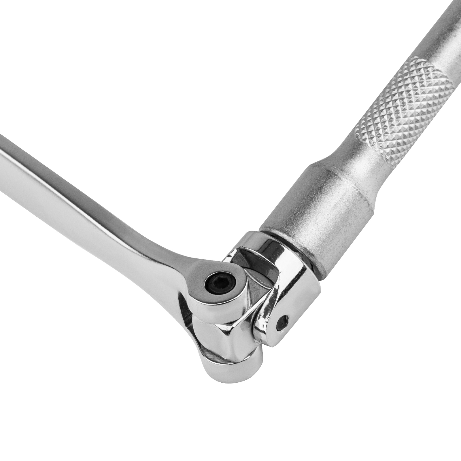 Надежная фиксация — переходник под торцевые головки оснащен металлическим шариком, а карданный ключ — быстрозажимным механизмом, что позволяет крепко удерживать оснастку.