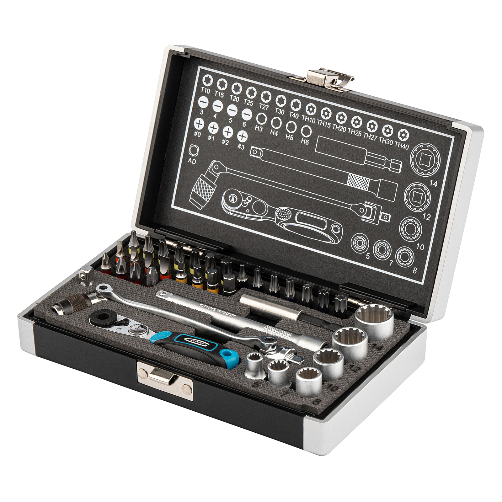 Удобное хранение и транспортировка — набор поставляется в ударопрочном кейсе с металлической застежкой.