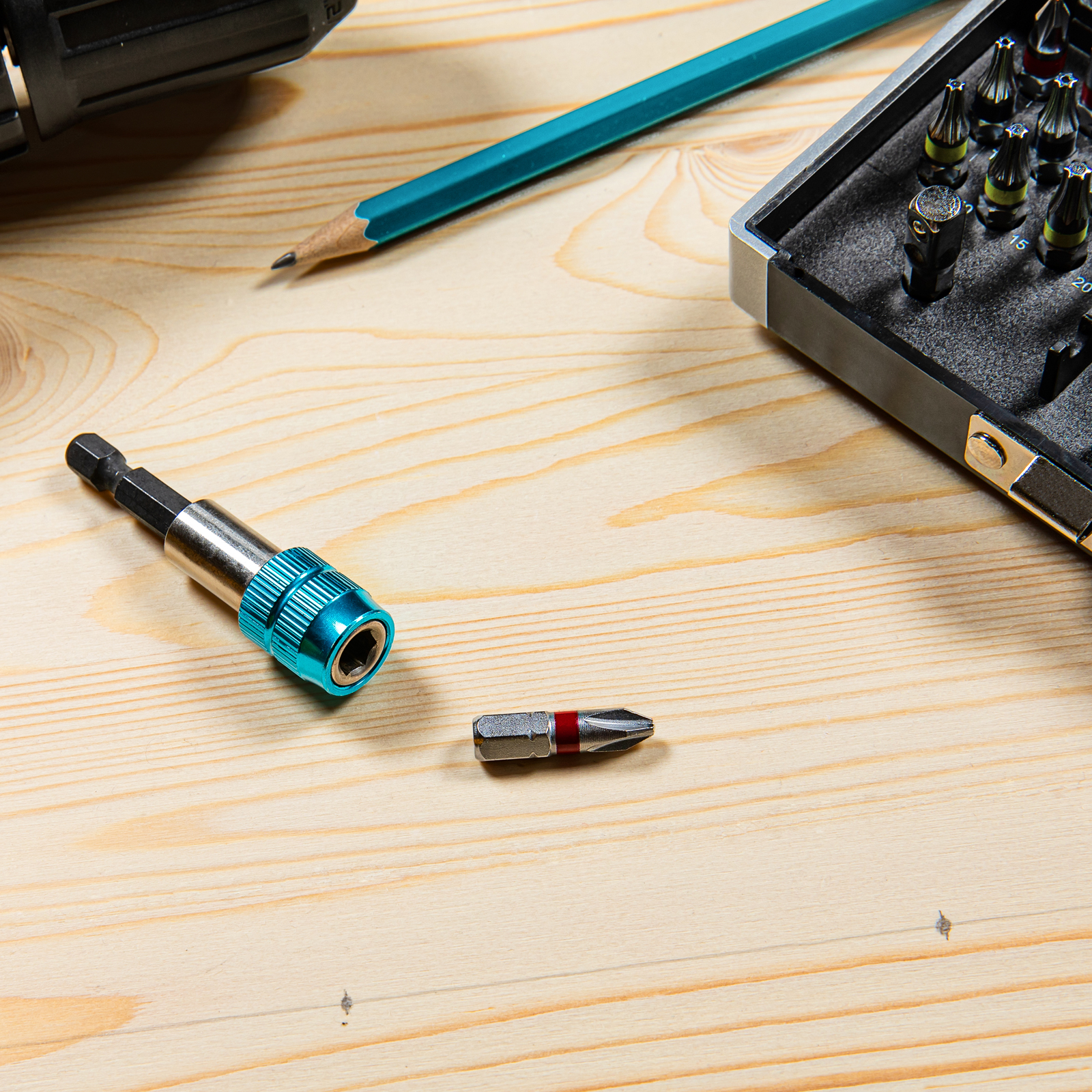 Удобная работа даже в труднодоступных местах — битодержатель с магнитом и быстрозажимным механизмом обеспечивает устойчивую фиксацию насадок.