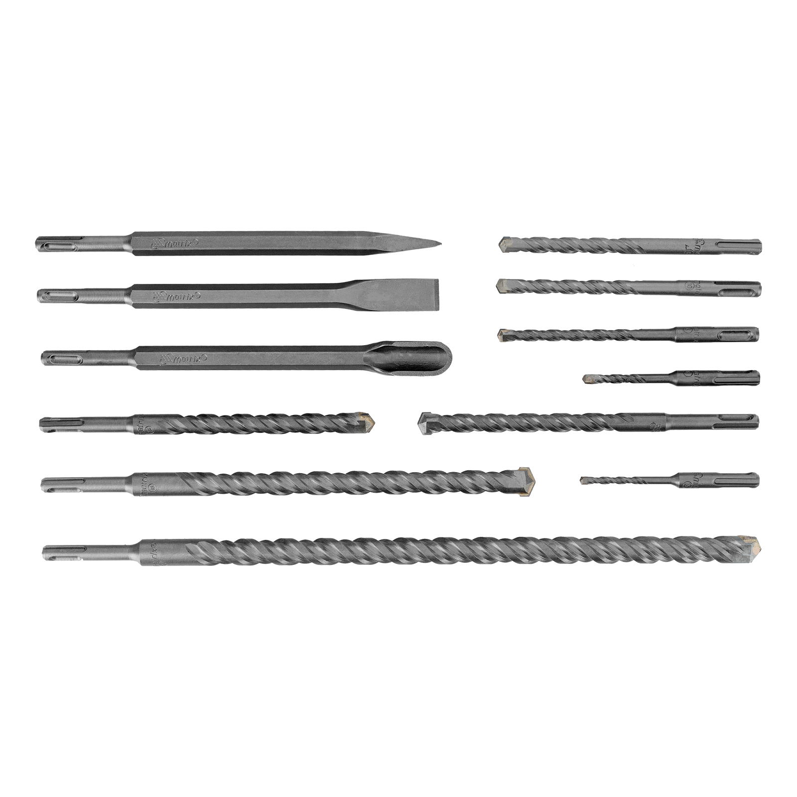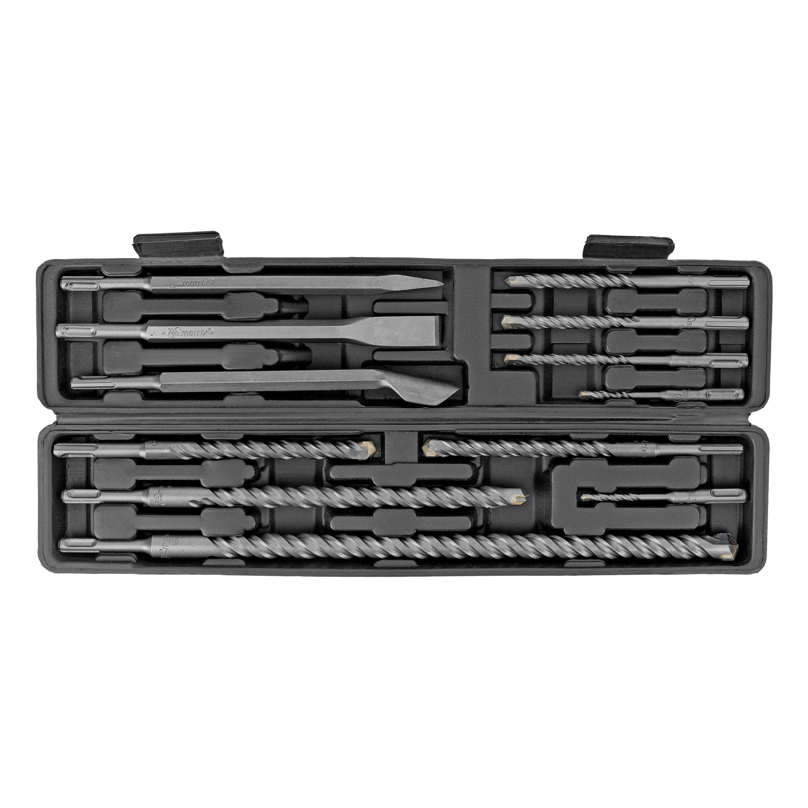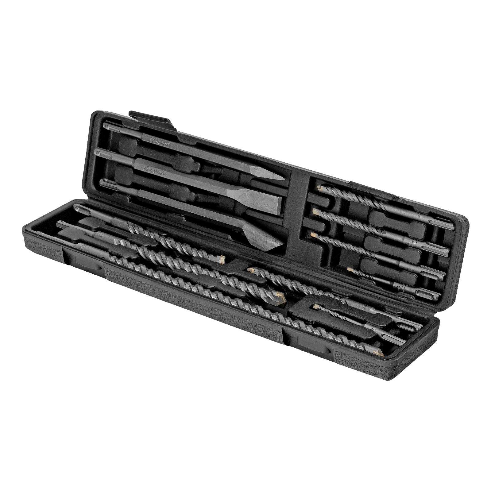 Набор Matrix 71097 включает 9 буров по бетону размером 5-6 х 110 мм, 8, 10, 12 х 160 мм, 14, 16 х 210 мм, 18 х 300 мм, 20 х 450 мм и 3 зубила, которые используются в качестве оснастки на перфораторах с патронами SDS-plus. Набор предназначен для сверления отверстий в бетоне, кирпиче и камне, а также для удаления старого слоя штукатурки, снятия облицовочной плитки, штробления и демонтажа армированного бетона. Подходит для работы на строительной площадке, пригодится ремонтным бригадам и профессиональным мастерам, также будет полезен в быту.