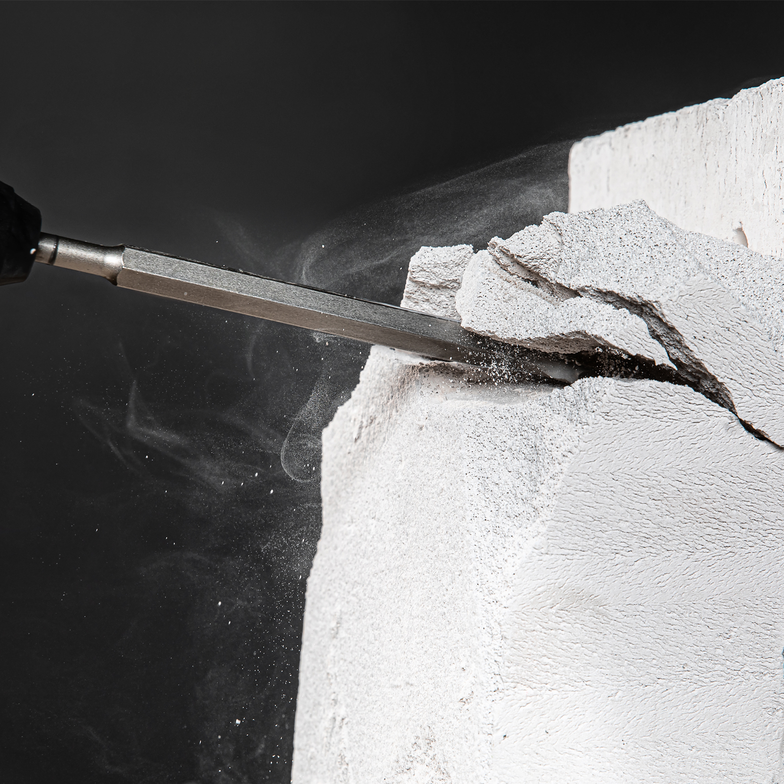 Прочность — рабочие части буров и зубил выдерживают интенсивные ударные нагрузки, т.к. изготовлены из закаленной легированной стали 40Х с добавлением хрома.