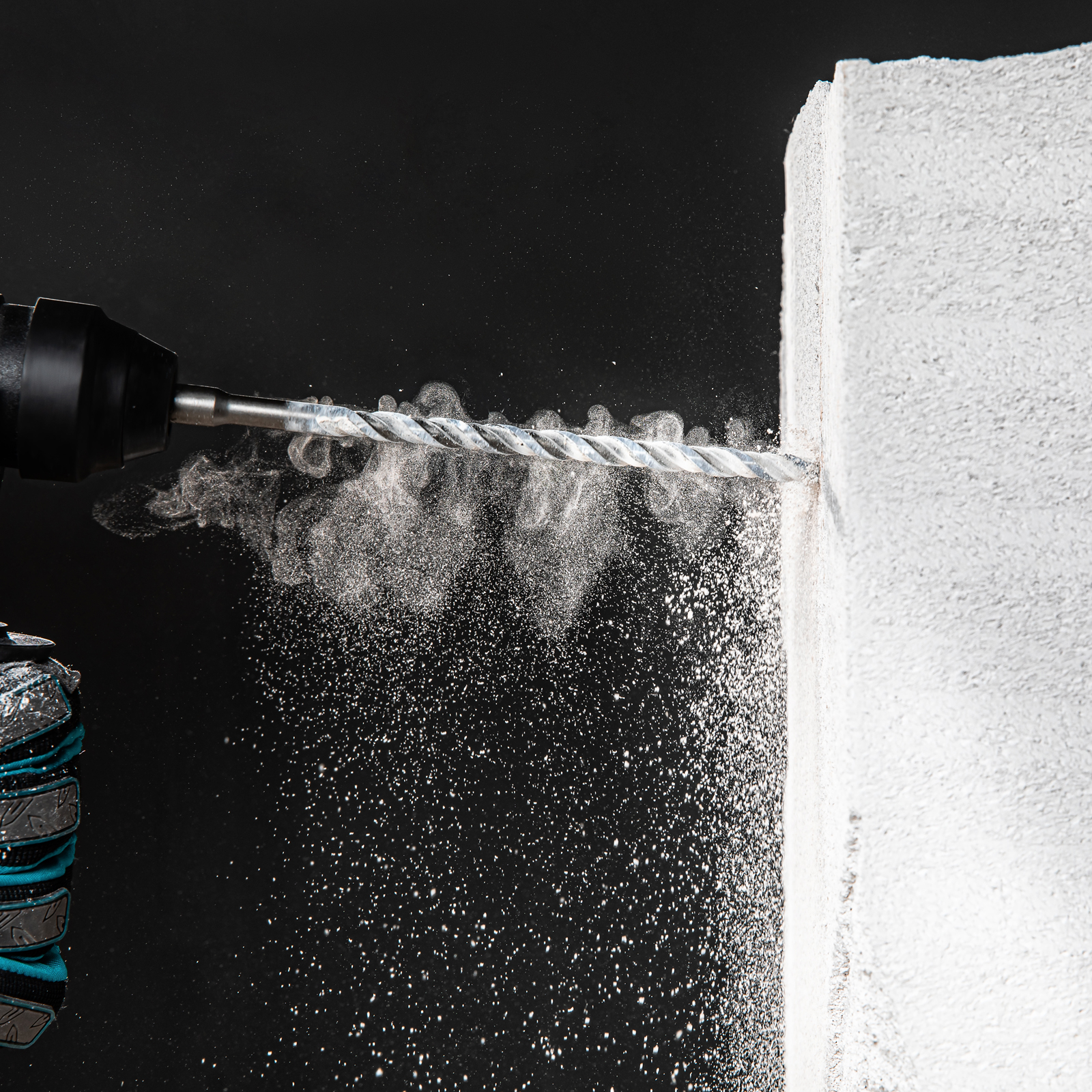 Эффективный отвод шлама — двойная усиленная спираль буров ускоряет удаление пыли в процессе сверления, что позволяет уменьшить нагрузку на перфоратор.