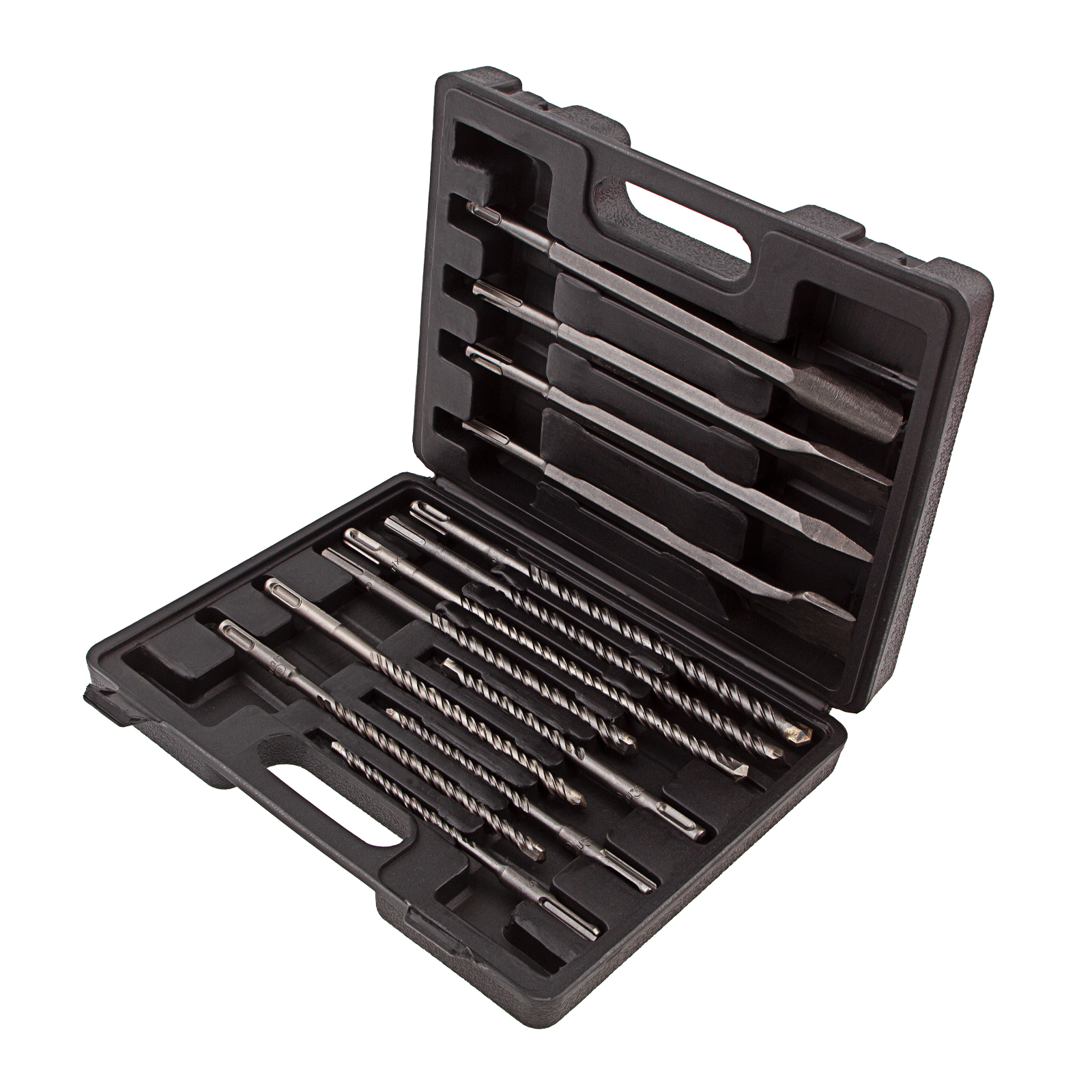 Набор Matrix 71098, упакованный в бокс, включает 9 буров по бетону размером 6-8-10 х 160 мм, 8-10-12 х 210 мм, 10-12-14 х 260 мм и 4 зубила, которые используются в качестве оснастки на перфораторах с патронами SDS PLUS. Набор предназначен для сверления отверстий в бетоне, кирпиче и камне, а также для удаления старого слоя штукатурки, снятия облицовочной плитки, штробления и демонтажа армированного бетона. Подходит для работы на строительной площадке, пригодится ремонтным бригадам и профессиональным мастерам, также будет полезен в быту.
