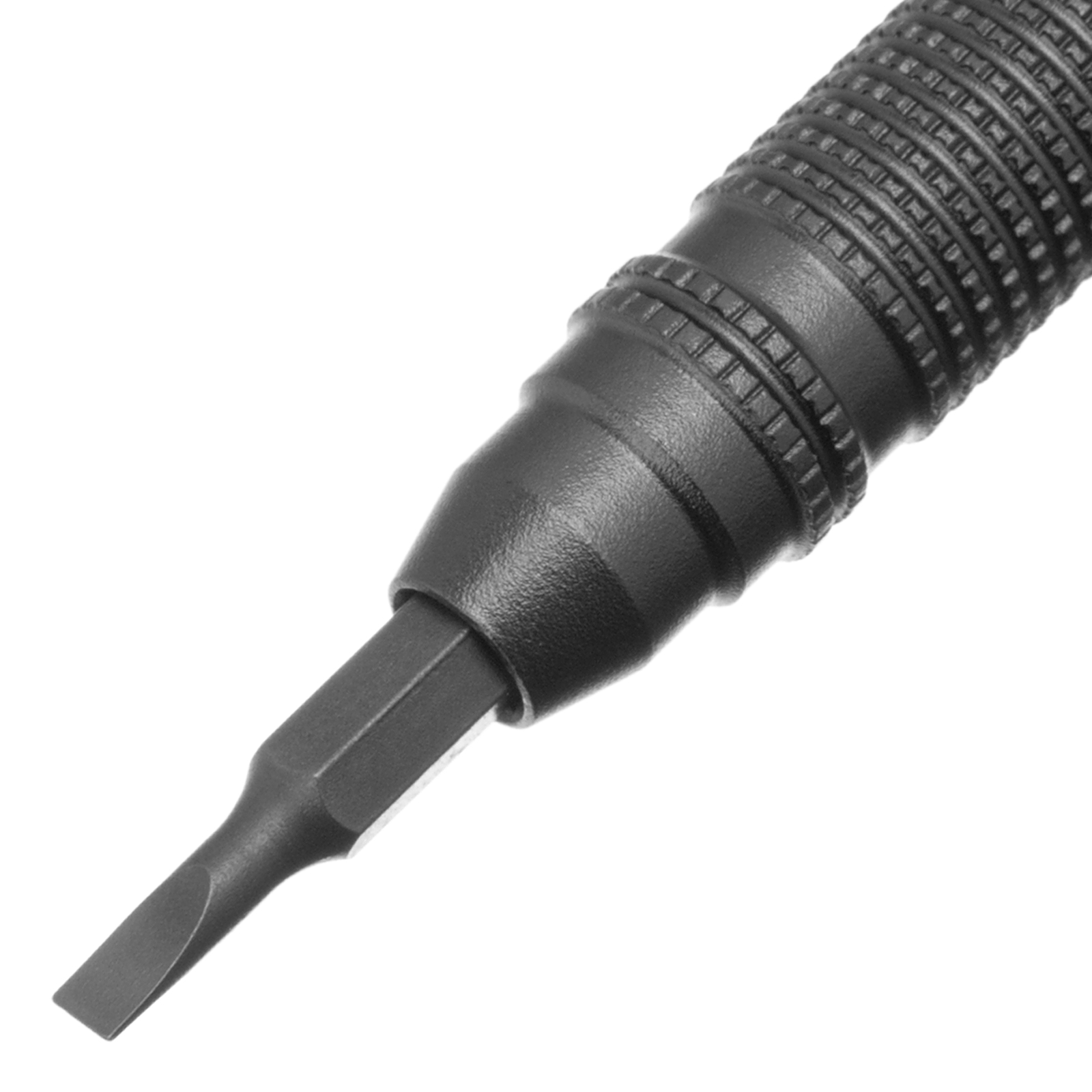 Удобная эксплуатация — вращающийся затыльник позволяет поворачивать отвертку перебором пальцев.
