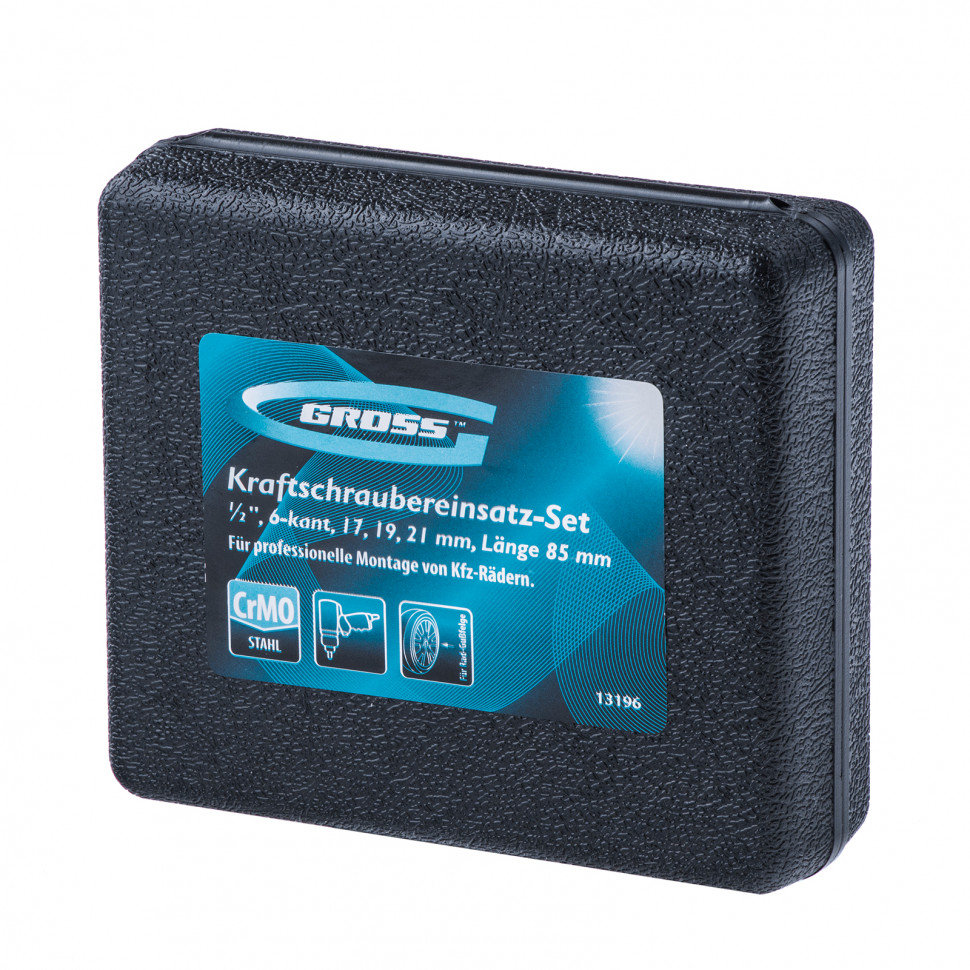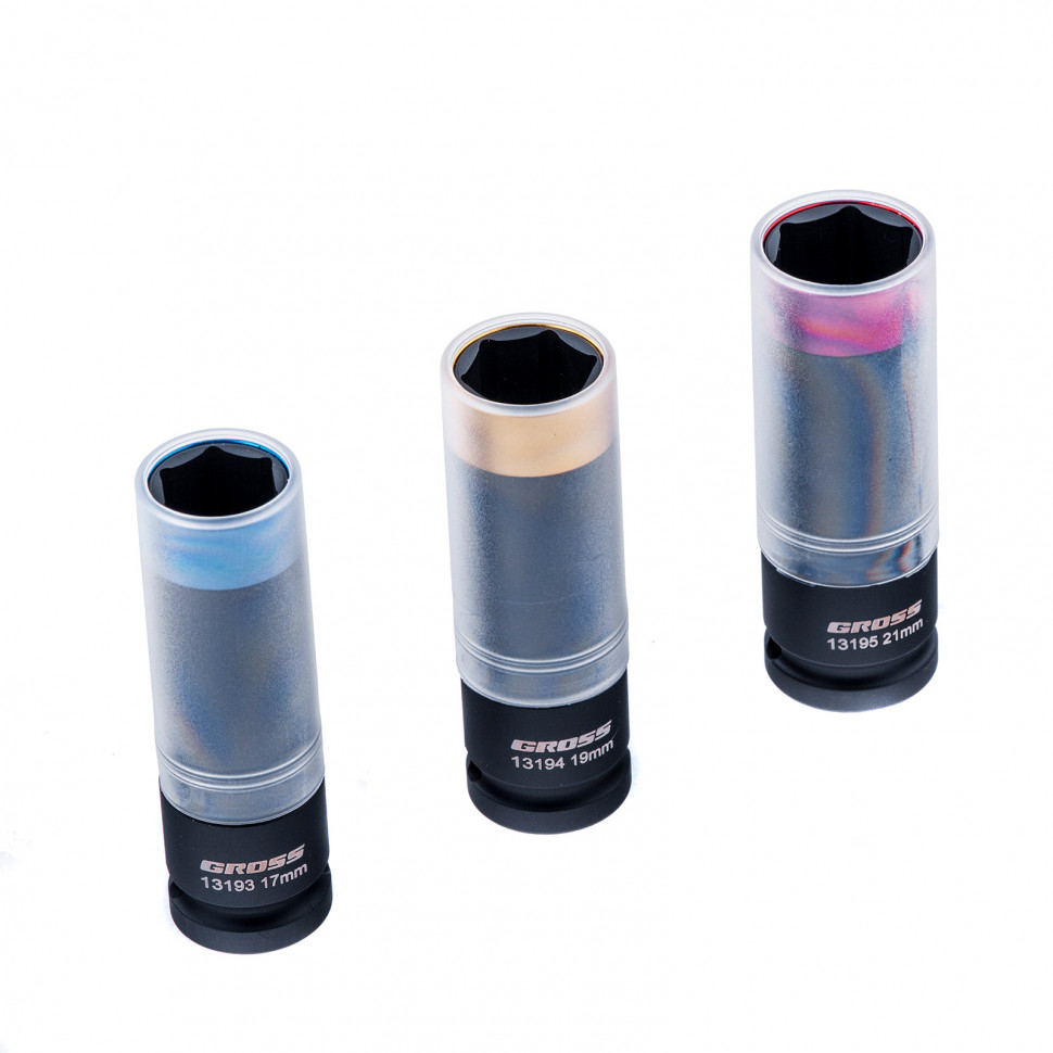 Набор головок ударных шестигранных для колесных дисков 17, 19, 21 мм, 1/2", 3 предмета Gross