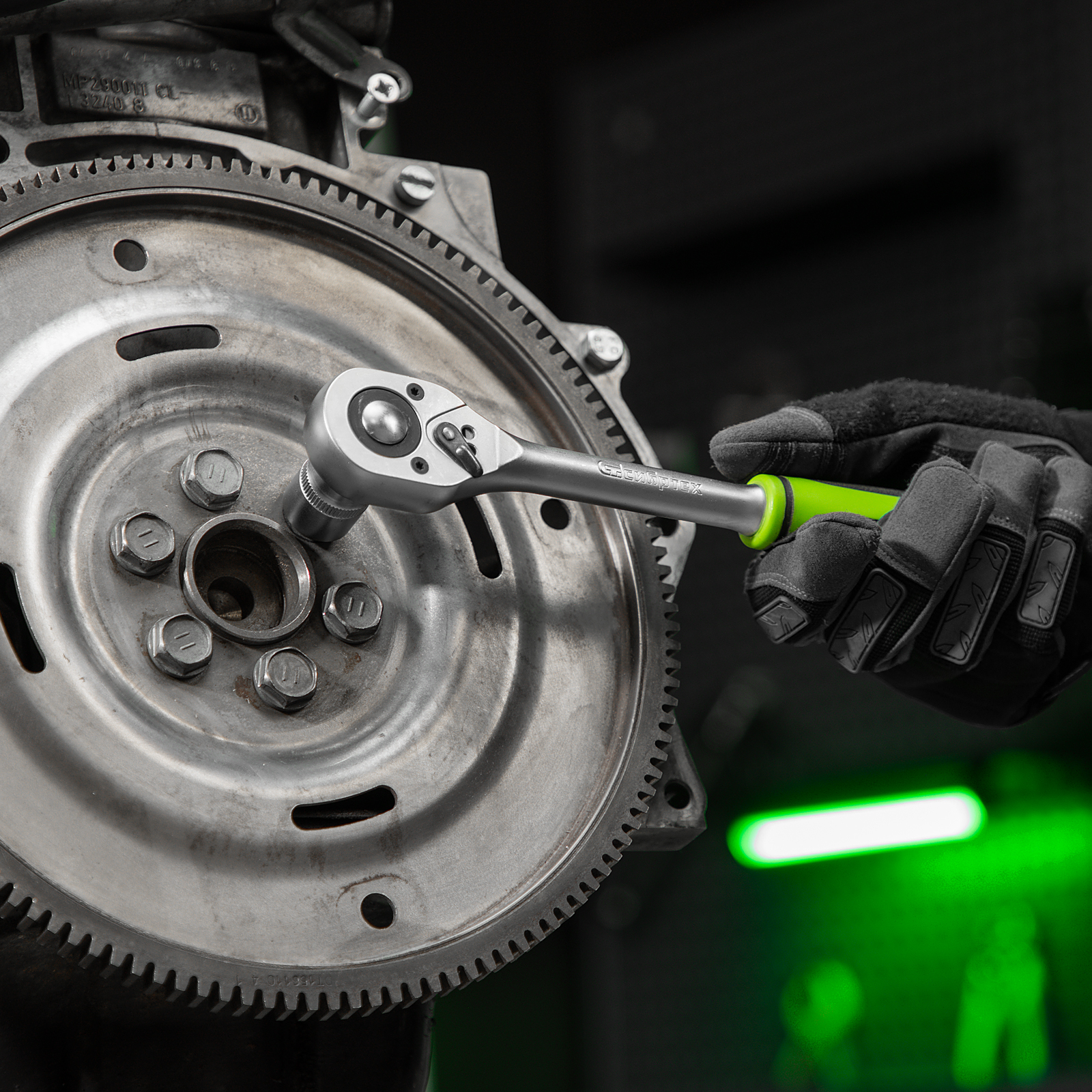 - Быстрый переход от монтажа к демонтажу — флажковые переключатели на трещоточных ключах позволяют мгновенно менять направление вращения.