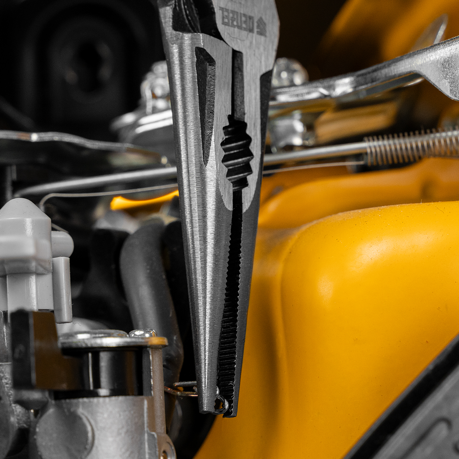 - Эффективная работа плоскогубцами — шарнир смещен к режущим кромкам, что увеличивает усилие сжатия на 20%.