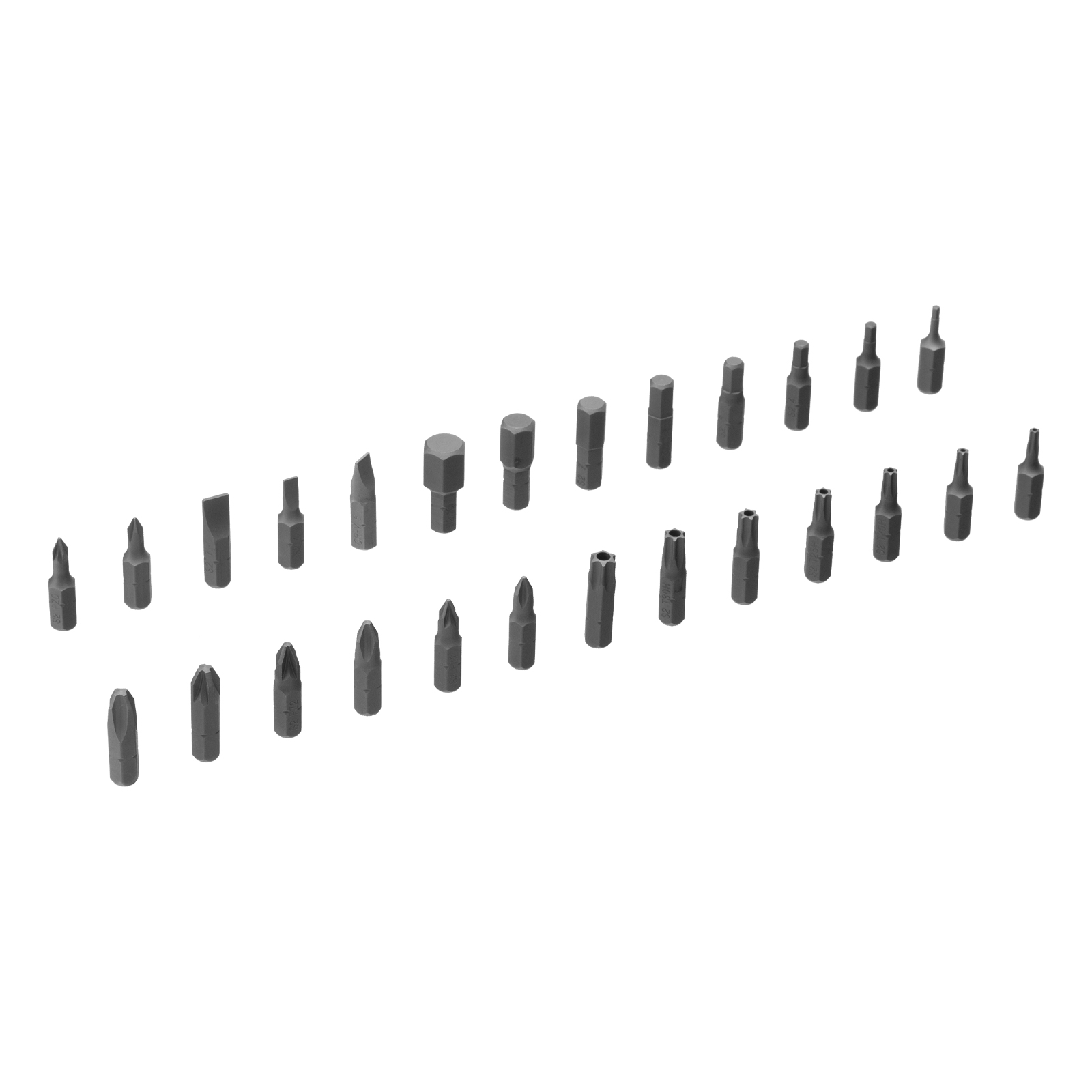 - Устойчивость к высоким нагрузкам — инструменты изготовлены из высокопрочной закаленной стали CrV, биты и отвертки выполнены из японской стали S2.
