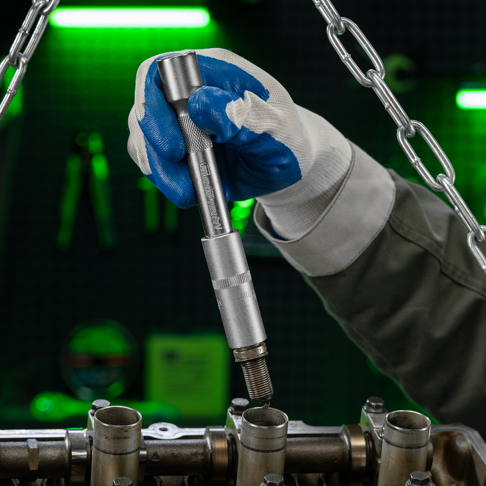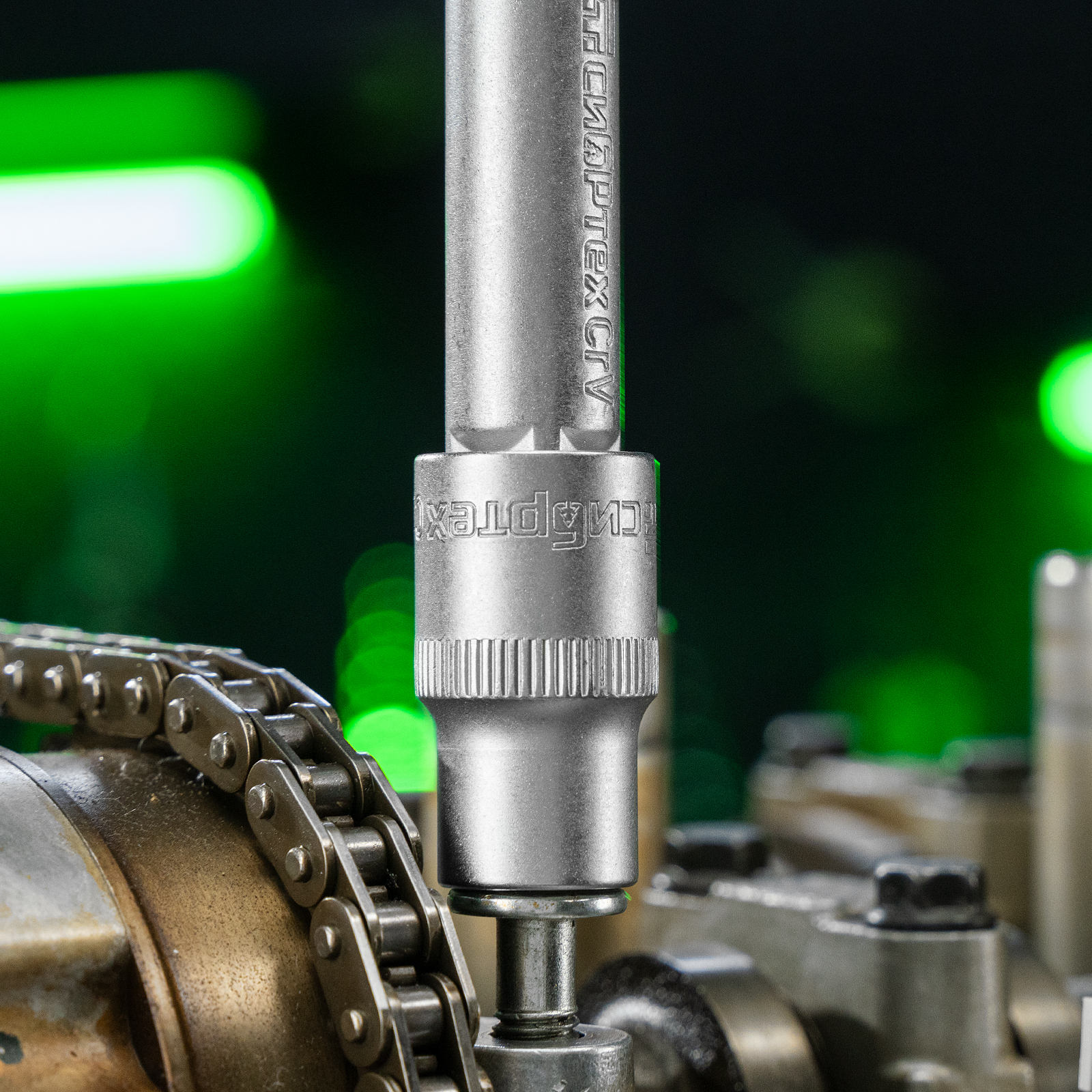 - Прочная фиксация — шариковый замок на трещотках, воротках, шарнирах и удлинителях надежно удерживает головки.