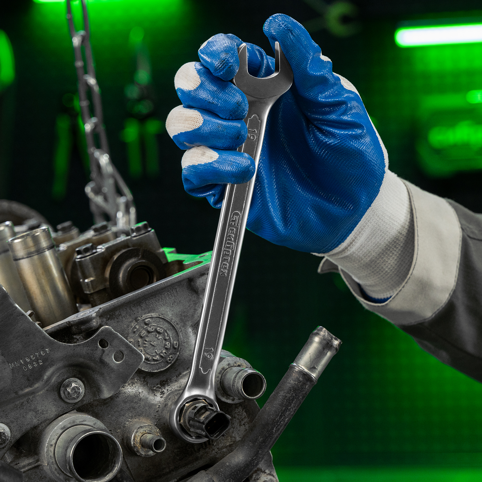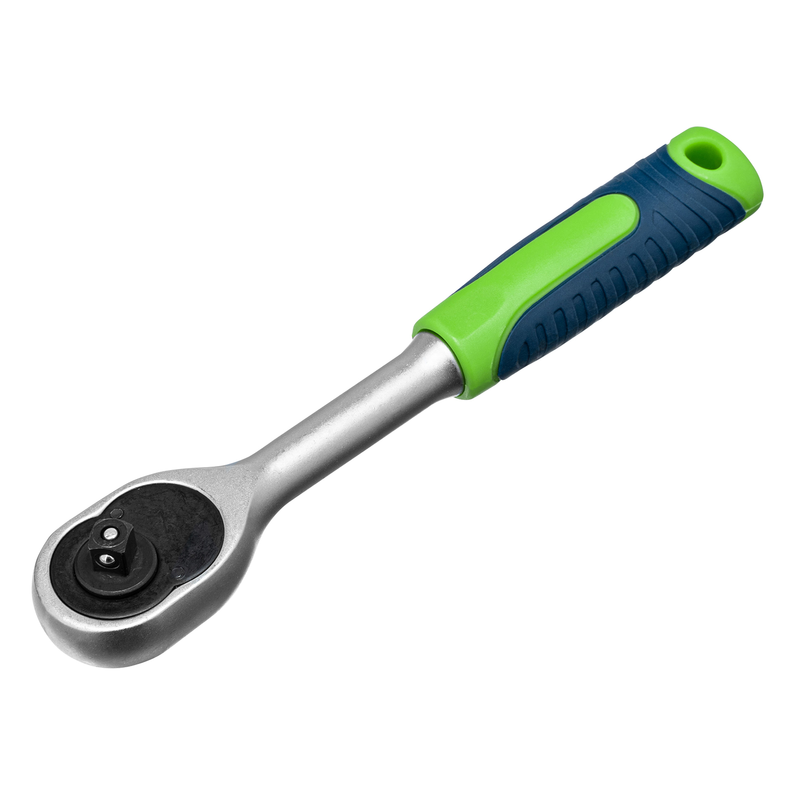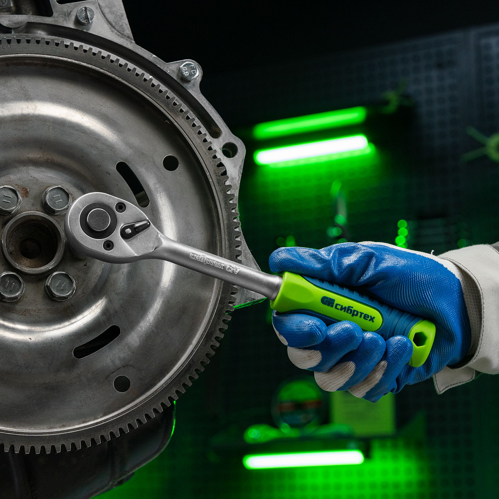 - Комфортная и эффективная работа — ключи-трещотки с 45 зубьями оснащены механизмом быстрого сброса, переключателем реверса с металлическим флажком и двухкомпонентной рукояткой.