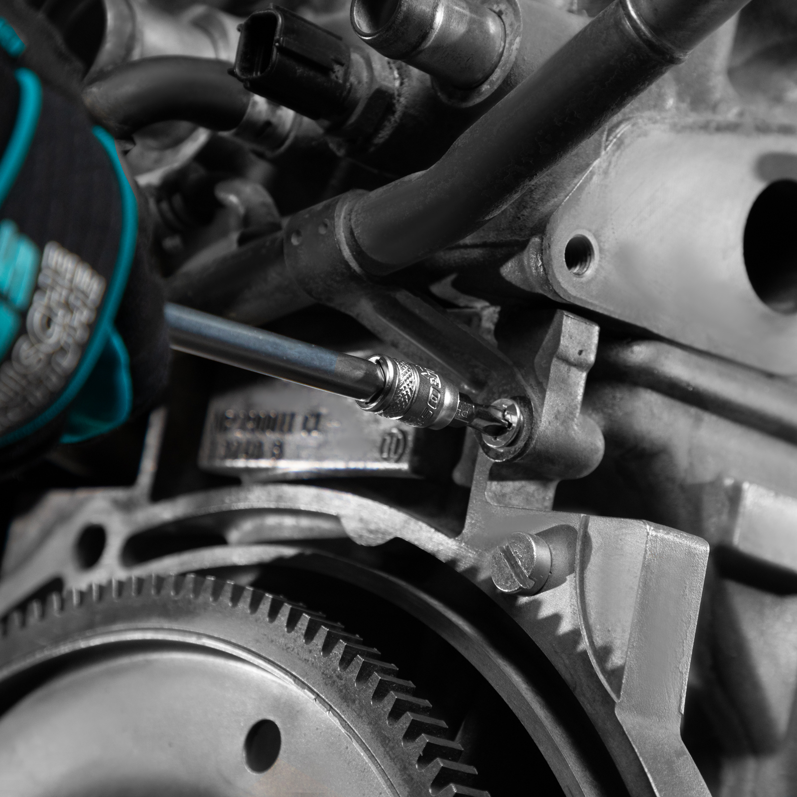 - Комфортный захват — благодаря антискользящим насечкам даже влажные или замасленные удлинители и насадки не выскальзывают из рук.