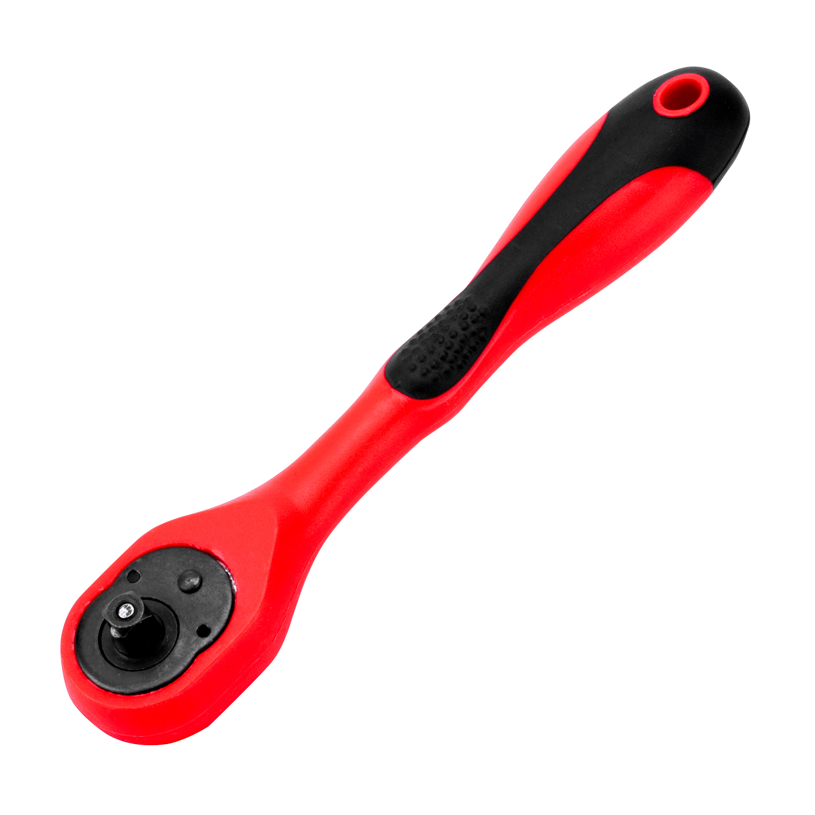 - Комфортная работа — направление вращения трещотки легко меняется при помощи переключателя с насечкой, прорезиненная рукоятка трещотки не проскальзывает в руке, на торцевых головках есть антискользящие насечки.
