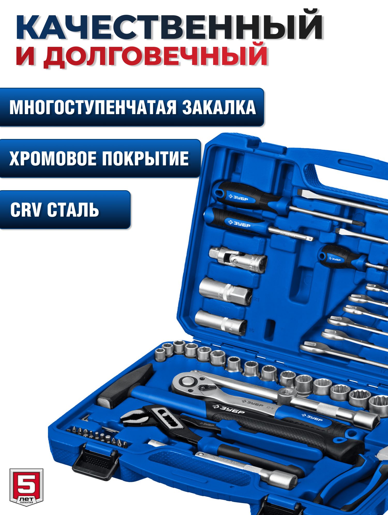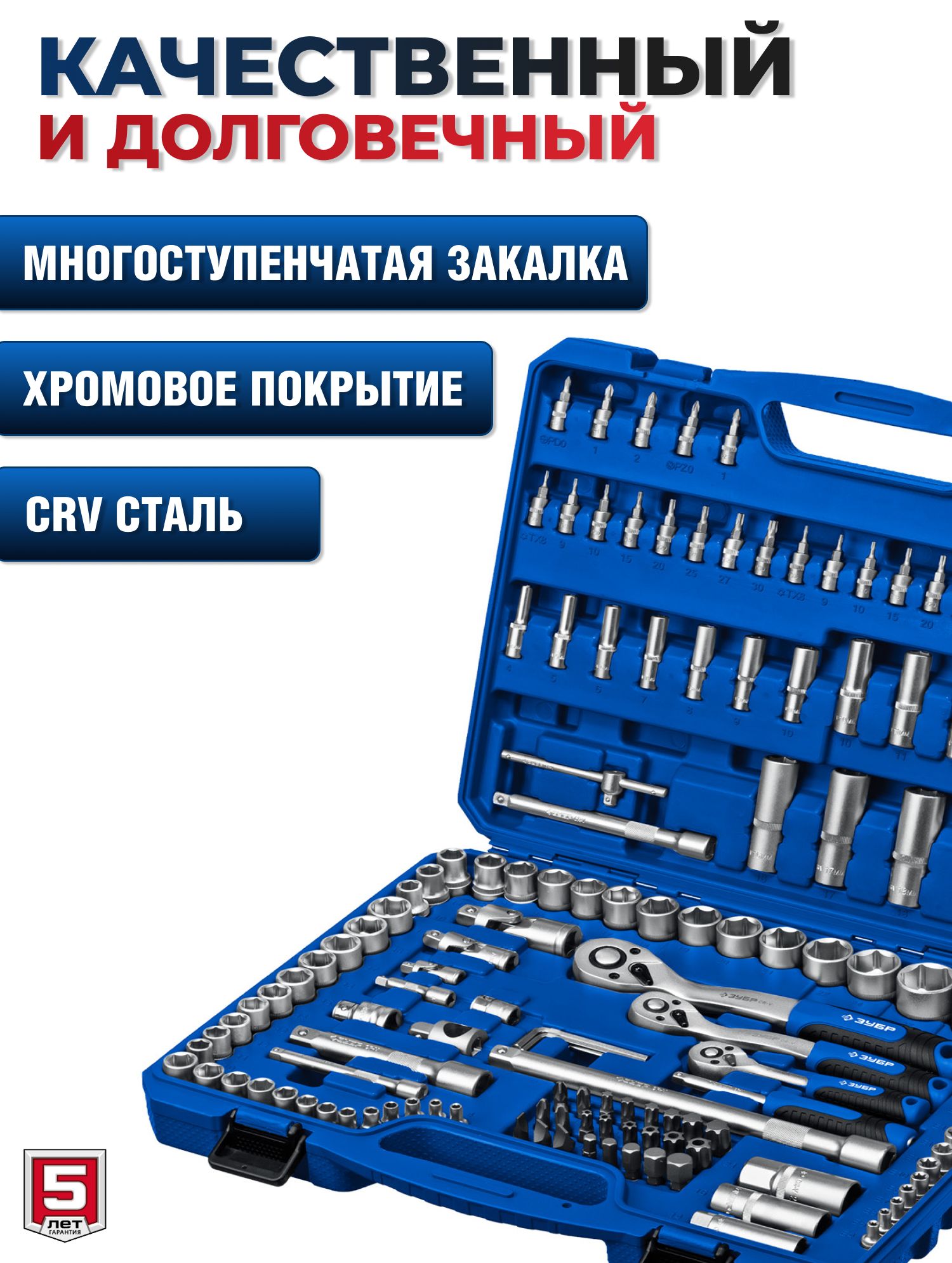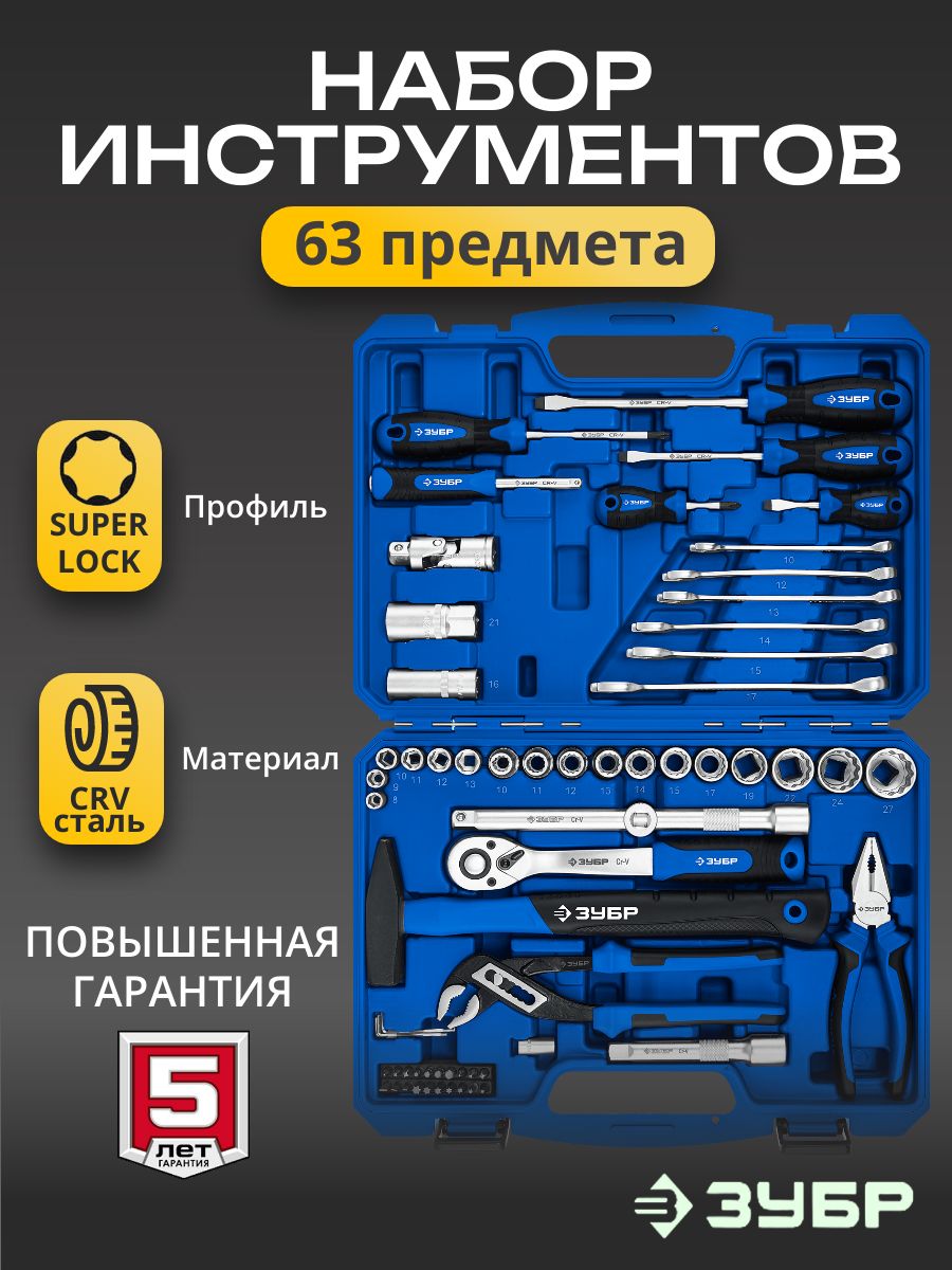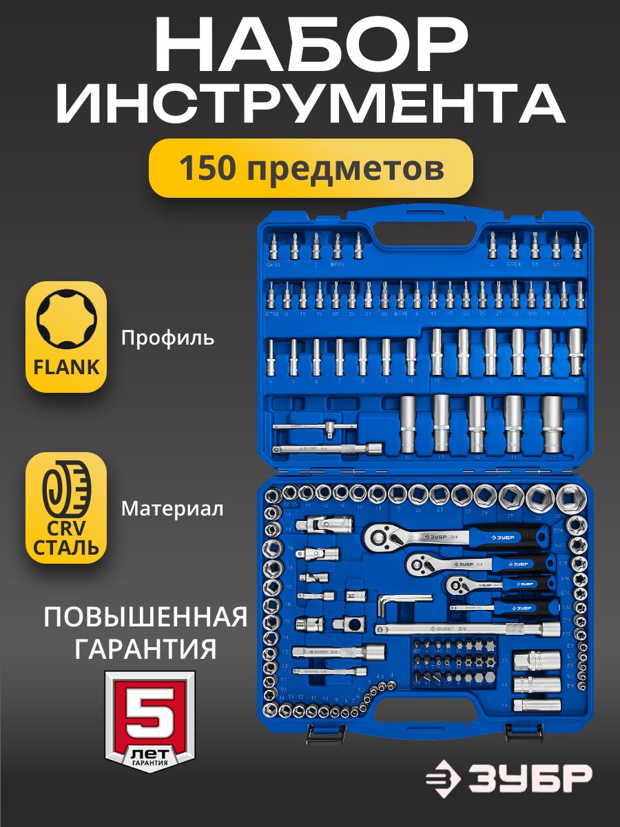 Набор инструментов для работы с различным крепежом, обслуживания техники и оборудования, в том числе и крупногабаритной.Этот универсальный набор инструментов отлично подойдет как набор инструментов для автомобиля. Этот инструмент для ремонта и строительства выполнен из высококачественной хромованадиевой стали CrV. Хромированное покрытие защищает инструменты от коррозии. Многоступенчатая закалка создает баланс прочности и твердости. Инструмент имеет FLANK профиль для быстрого и точного захвата крепежа. В набор входит все необходимое для эффективной работы: торцевые головки, трещетки со сбросом для быстрого отворачивания крепежа, удлинители головок, биты, гаечные ключи и накидные ключи и отвертки.